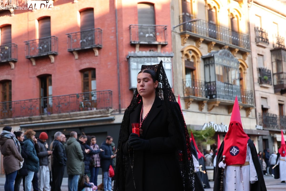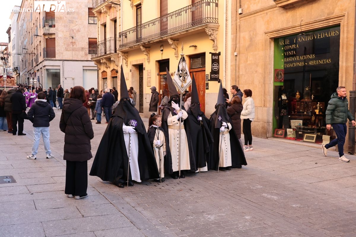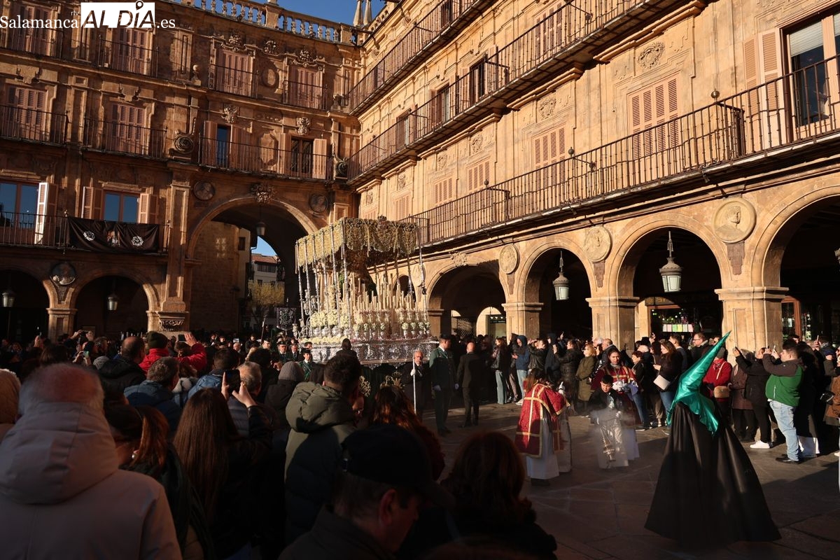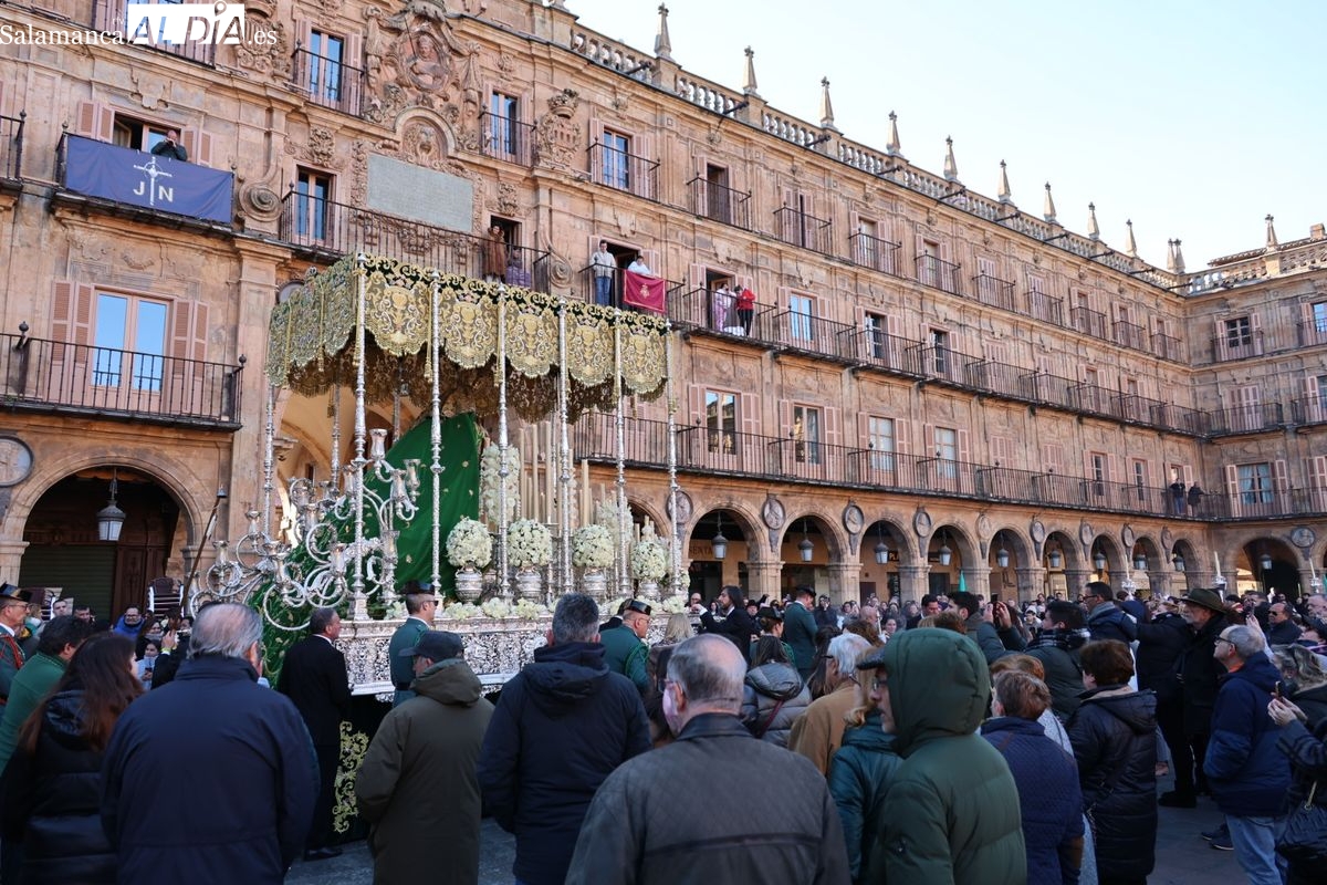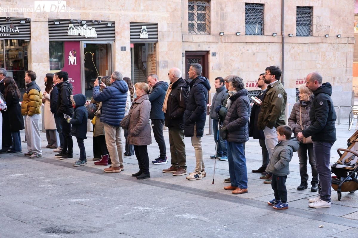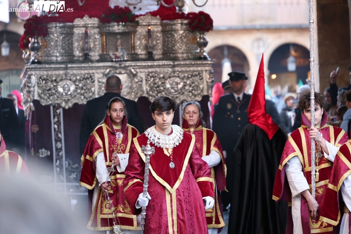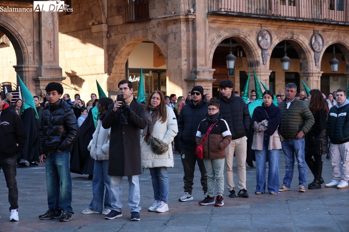 A las 5:00 horas de la mañana, las puertas del Convento de San Esteban se han abierto para dar inicio a una de las procesiones más esperadas de la Semana Santa salmantina. Cientos de fieles se han congregado en los alrededores del templo para acompañar a la Hermandad Dominicana en su recorrido por las calles del centro de la ciudad.