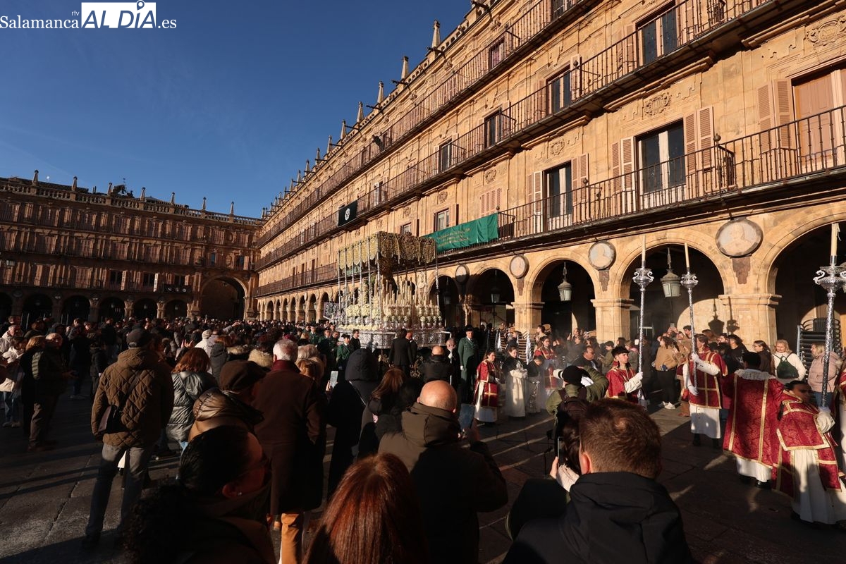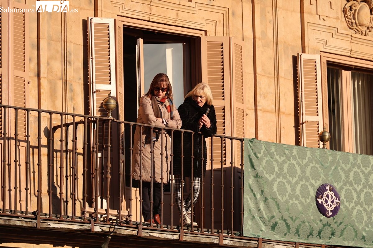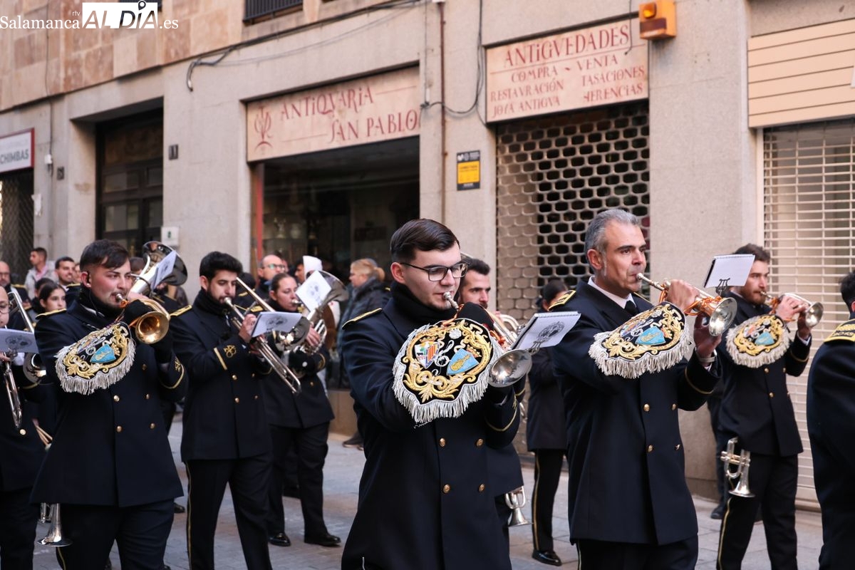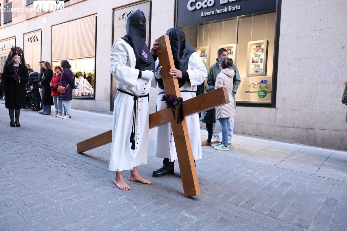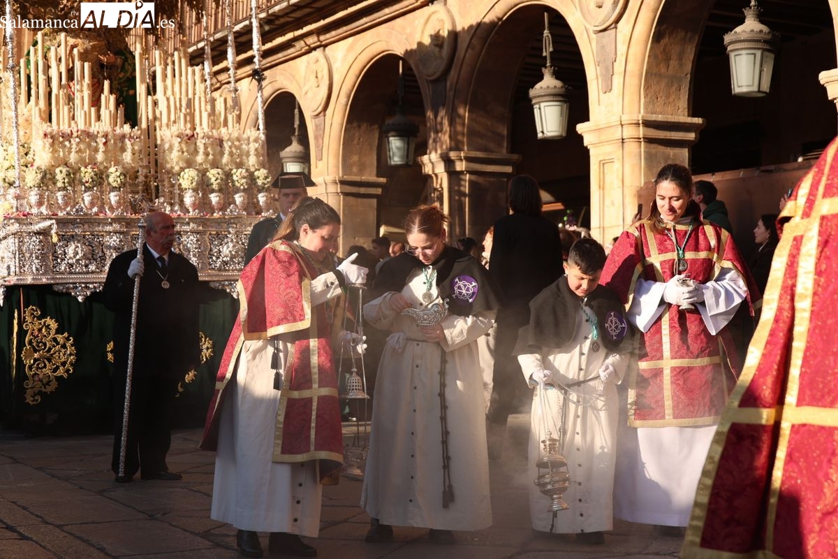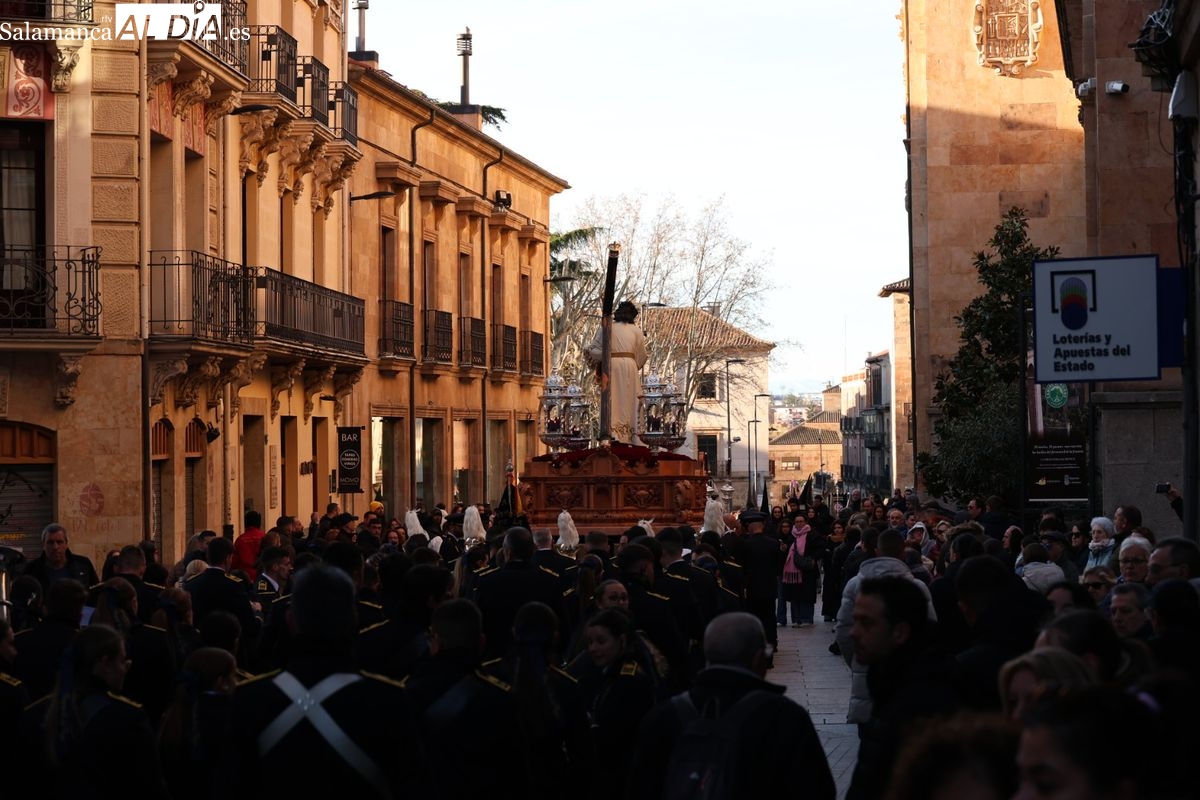 A las 5:00 horas de la mañana, las puertas del Convento de San Esteban se han abierto para dar inicio a una de las procesiones más esperadas de la Semana Santa salmantina. Cientos de fieles se han congregado en los alrededores del templo para acompañar a la Hermandad Dominicana en su recorrido por las calles del centro de la ciudad.