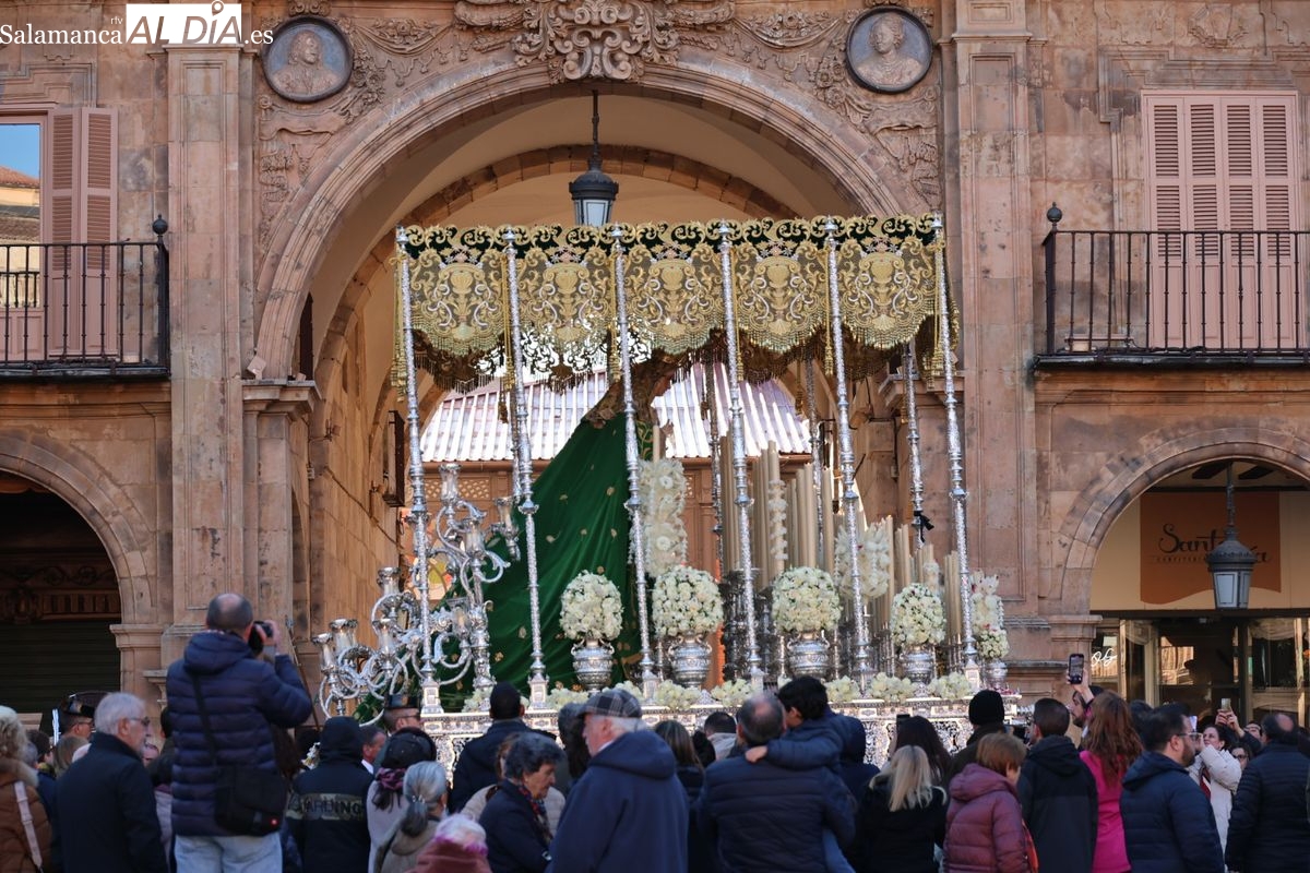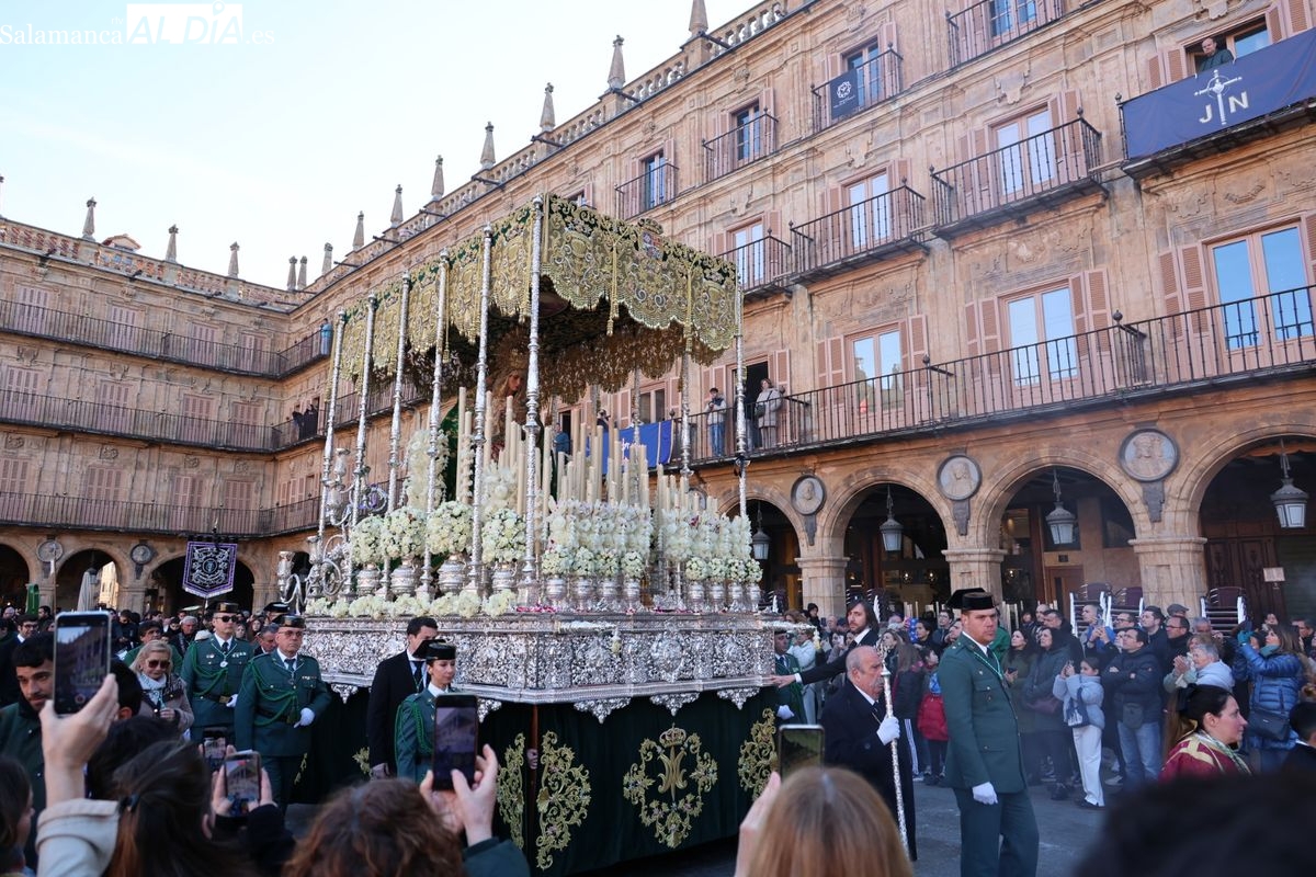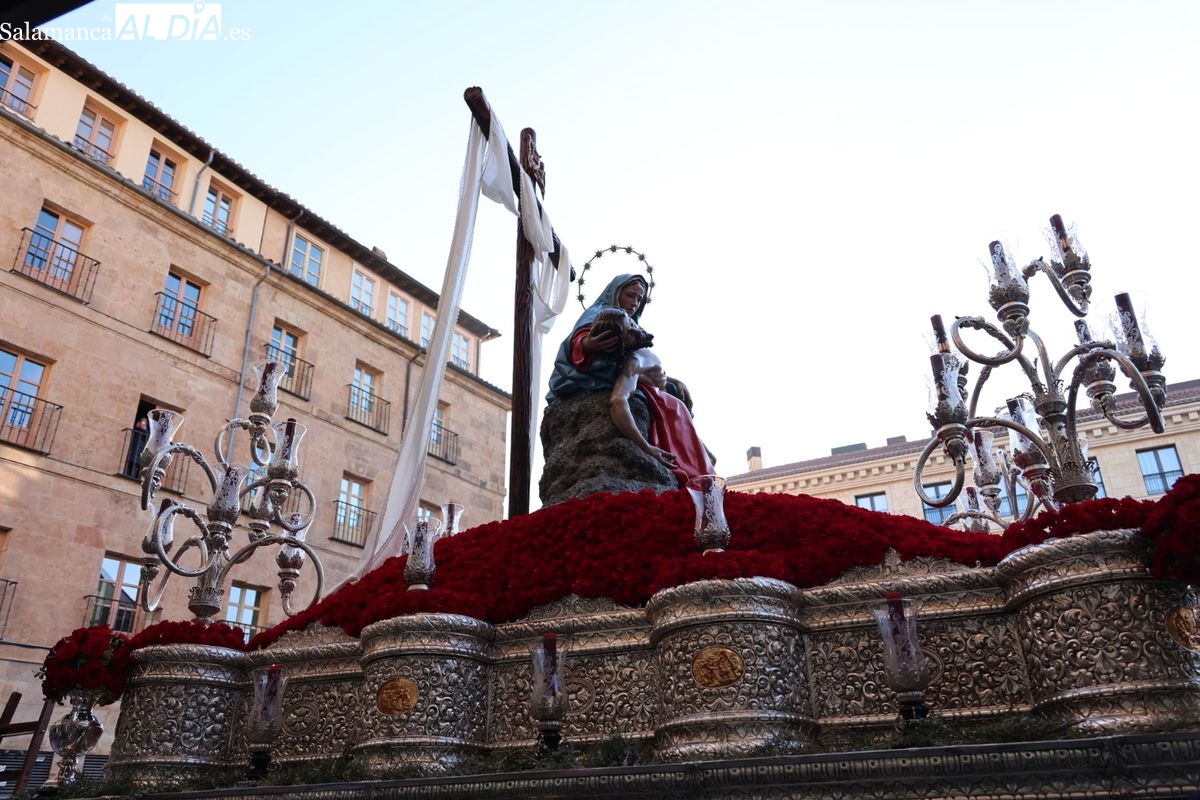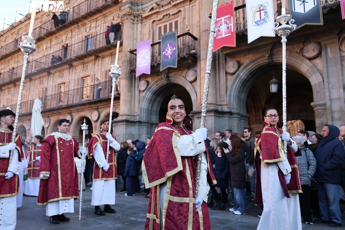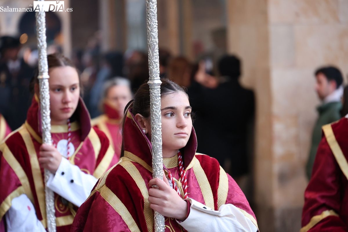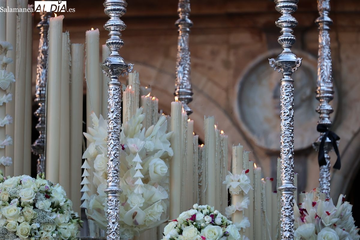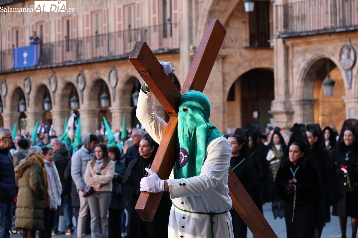 A las 5:00 horas de la mañana, las puertas del Convento de San Esteban se han abierto para dar inicio a una de las procesiones más esperadas de la Semana Santa salmantina. Cientos de fieles se han congregado en los alrededores del templo para acompañar a la Hermandad Dominicana en su recorrido por las calles del centro de la ciudad.