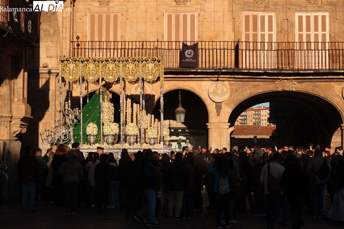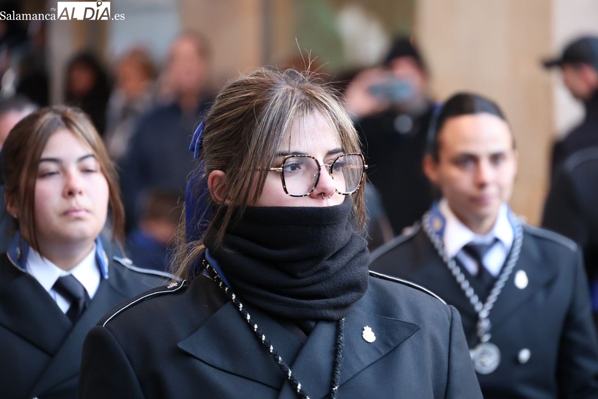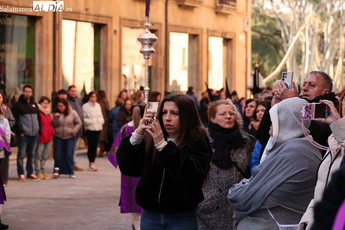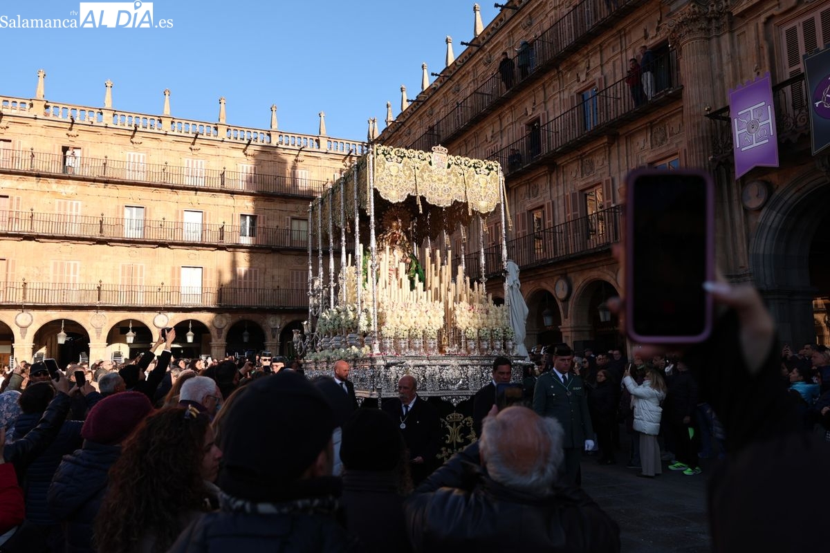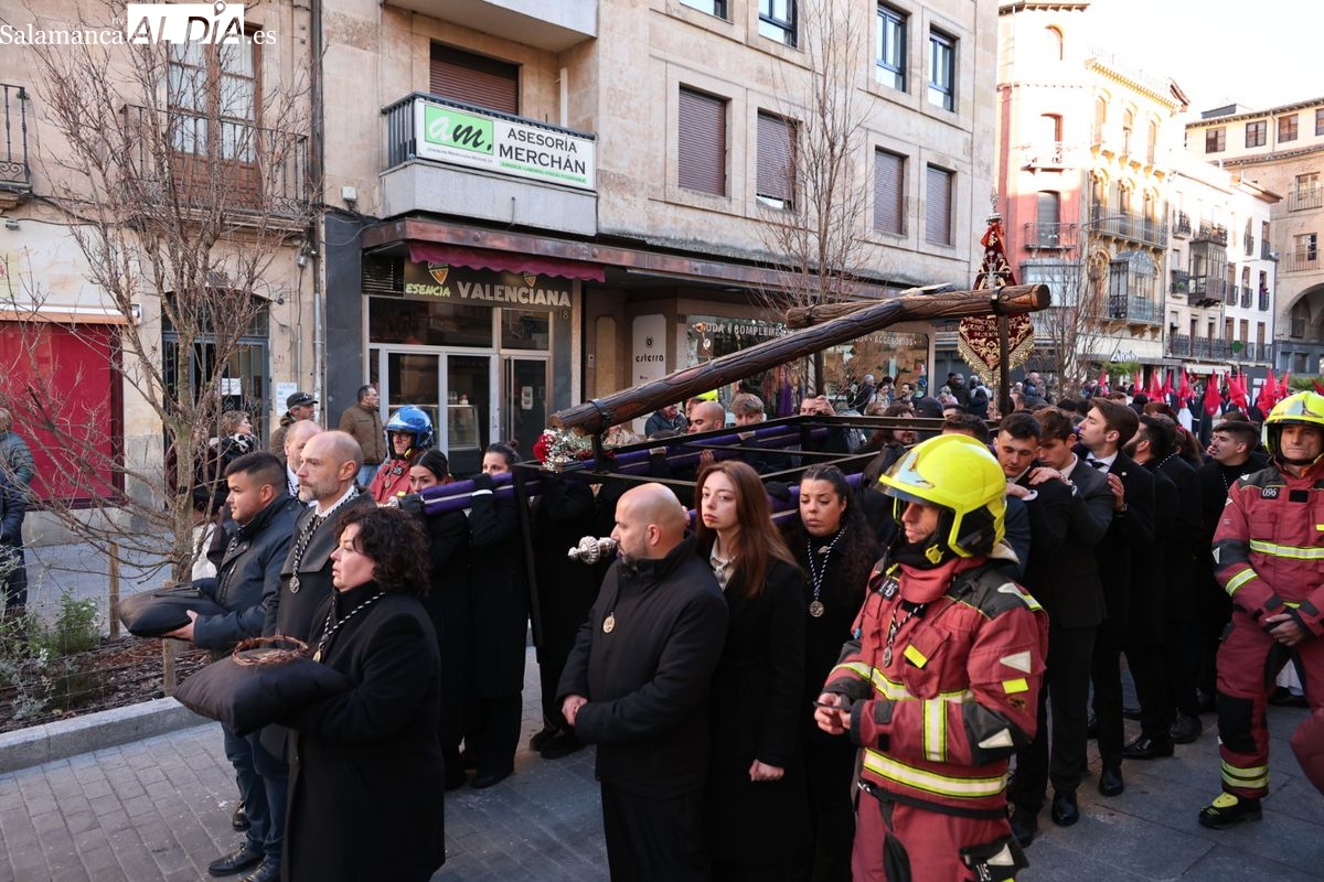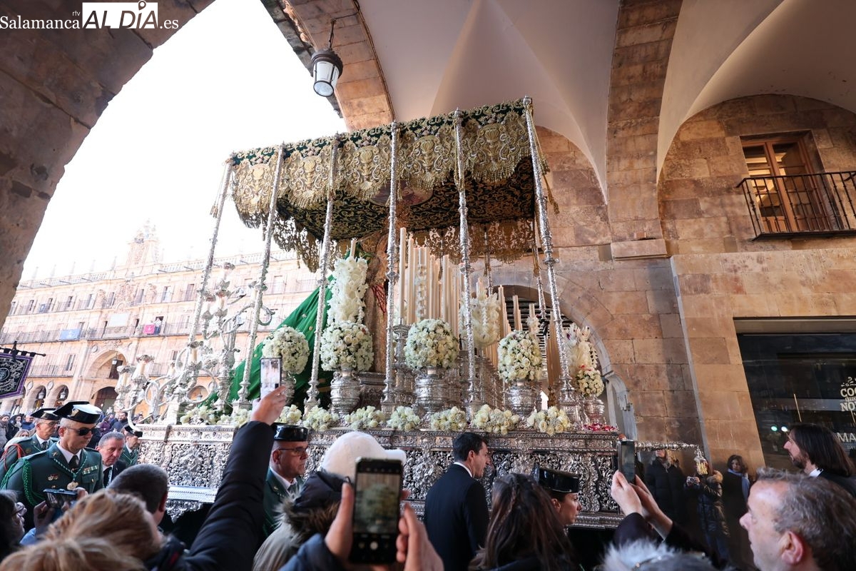 A las 5:00 horas de la mañana, las puertas del Convento de San Esteban se han abierto para dar inicio a una de las procesiones más esperadas de la Semana Santa salmantina. Cientos de fieles se han congregado en los alrededores del templo para acompañar a la Hermandad Dominicana en su recorrido por las calles del centro de la ciudad.