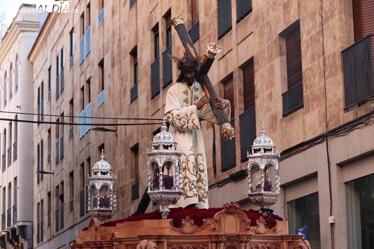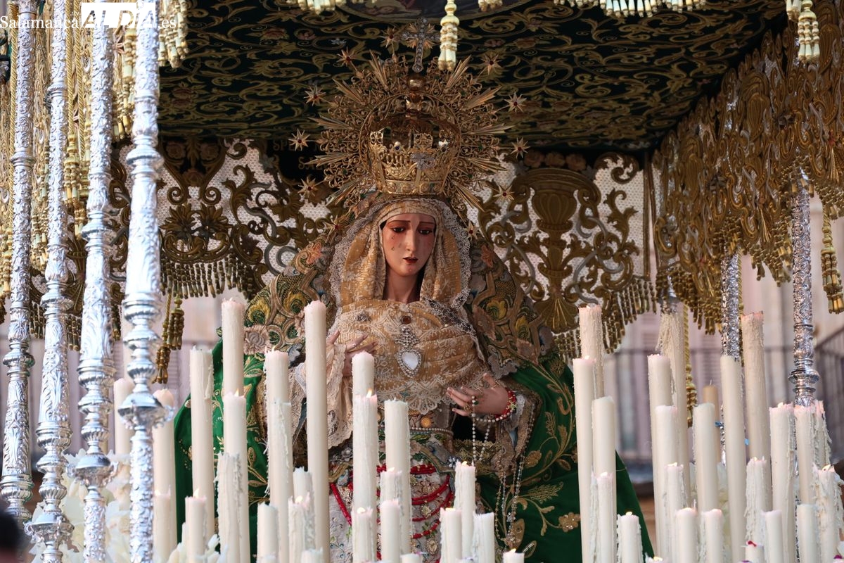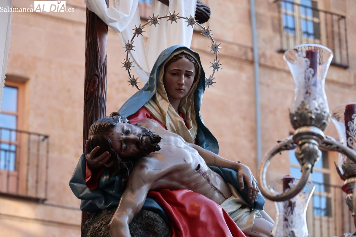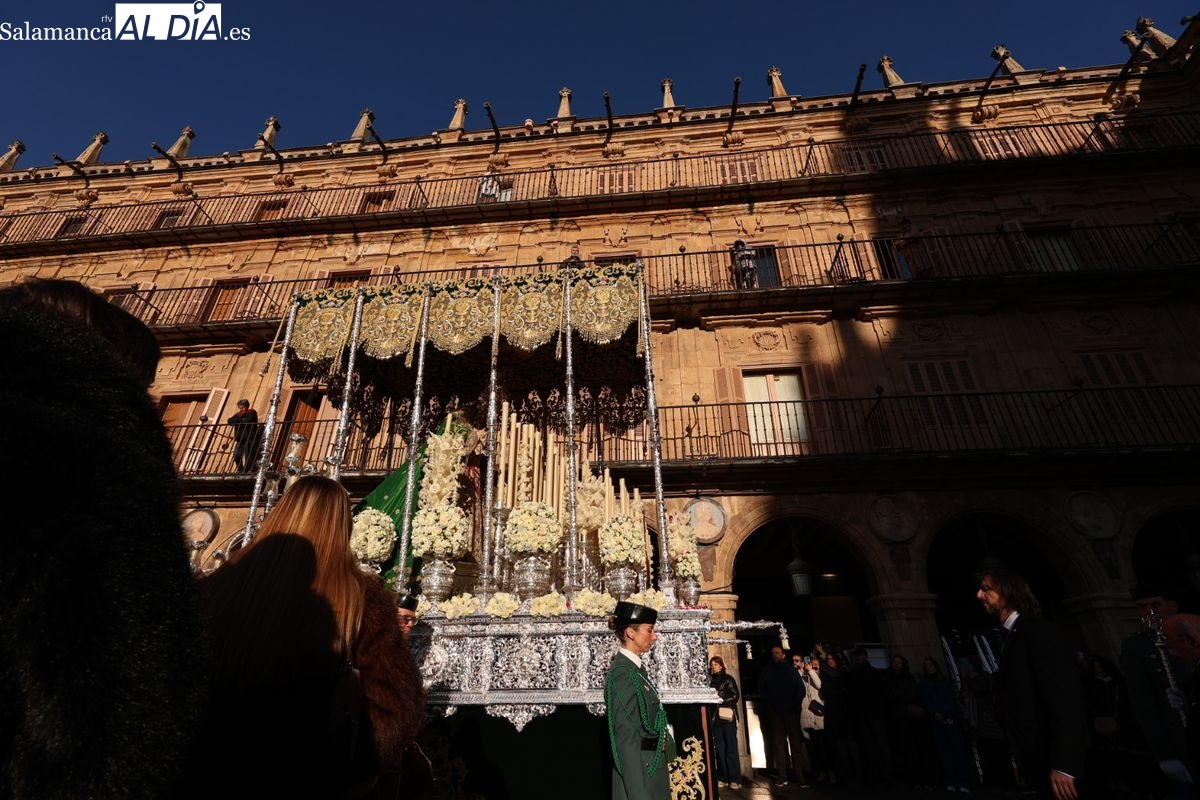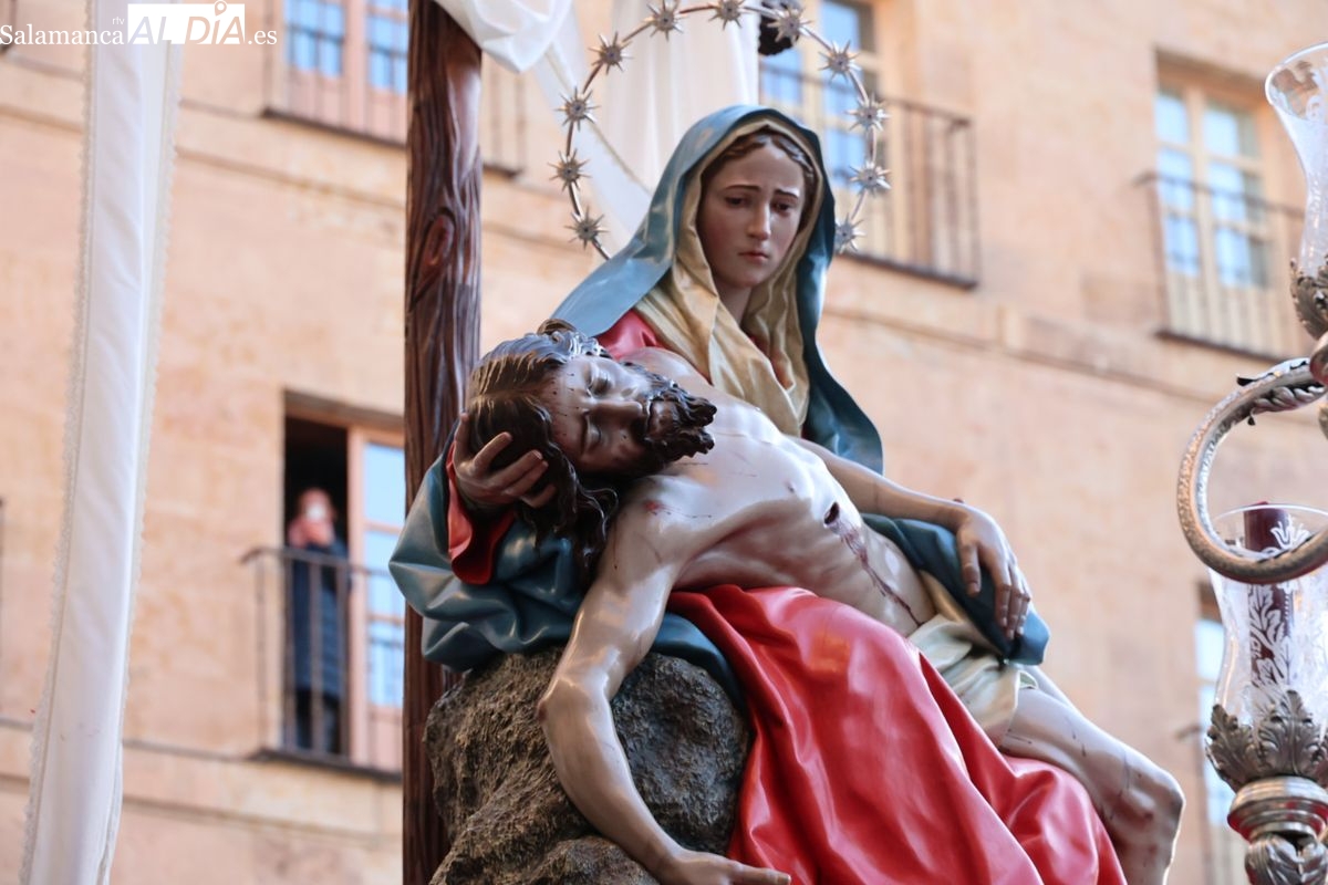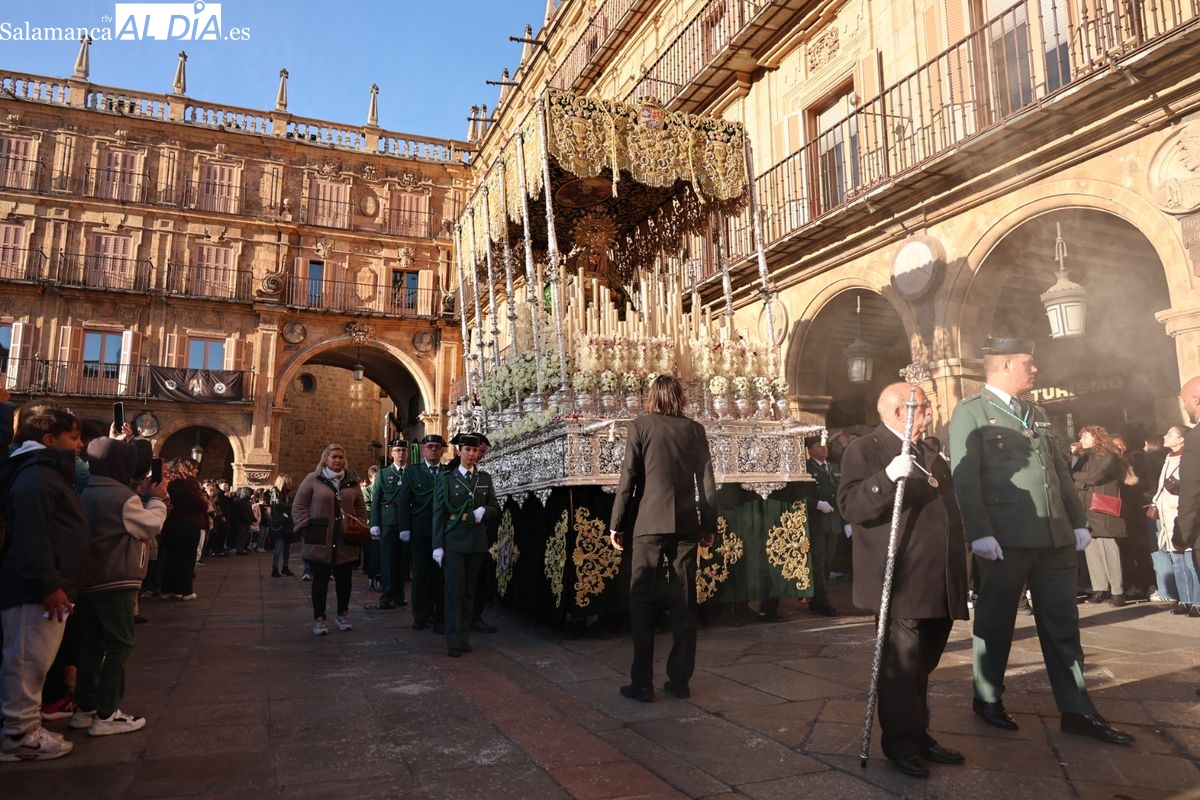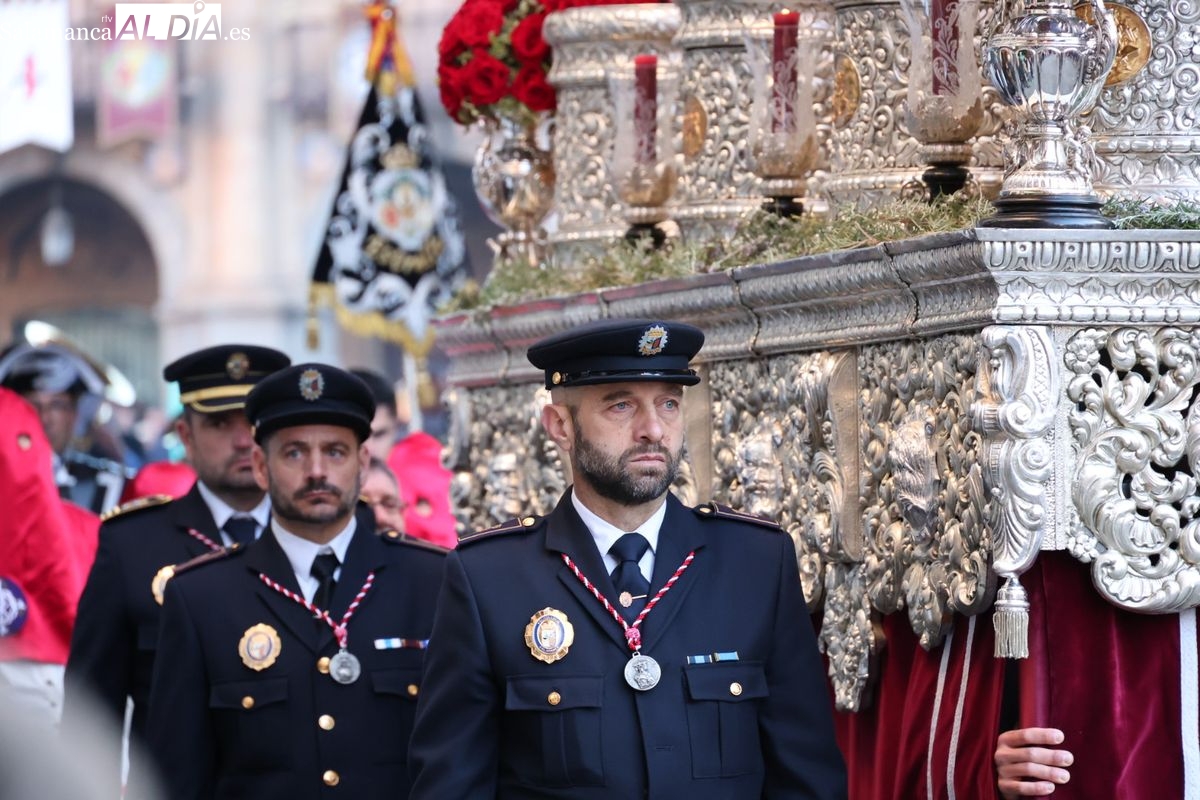 A las 5:00 horas de la mañana, las puertas del Convento de San Esteban se han abierto para dar inicio a una de las procesiones más esperadas de la Semana Santa salmantina. Cientos de fieles se han congregado en los alrededores del templo para acompañar a la Hermandad Dominicana en su recorrido por las calles del centro de la ciudad.
