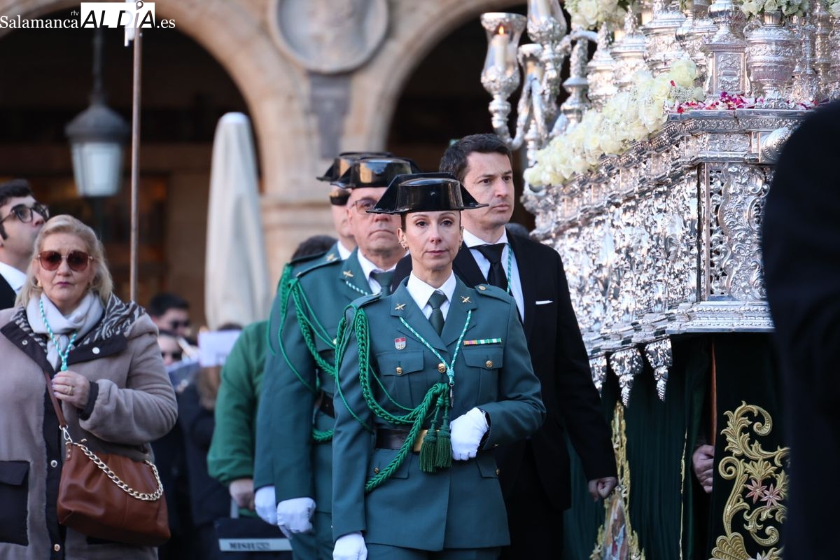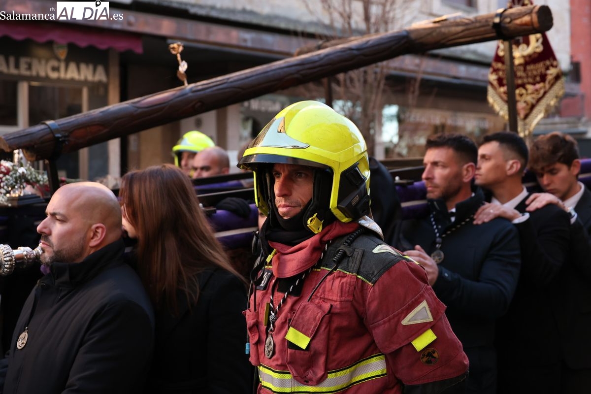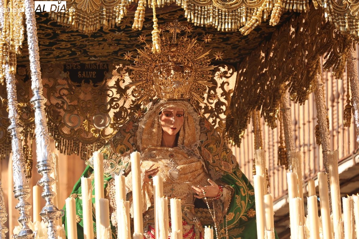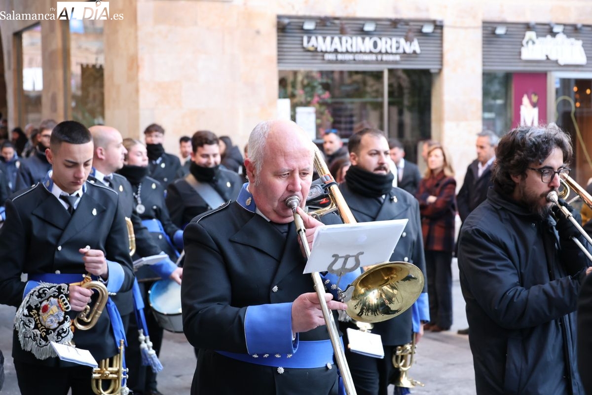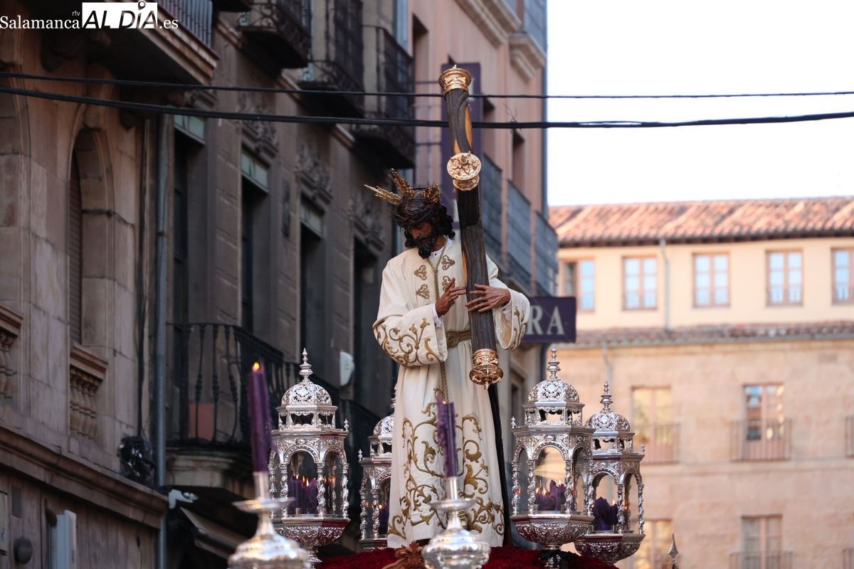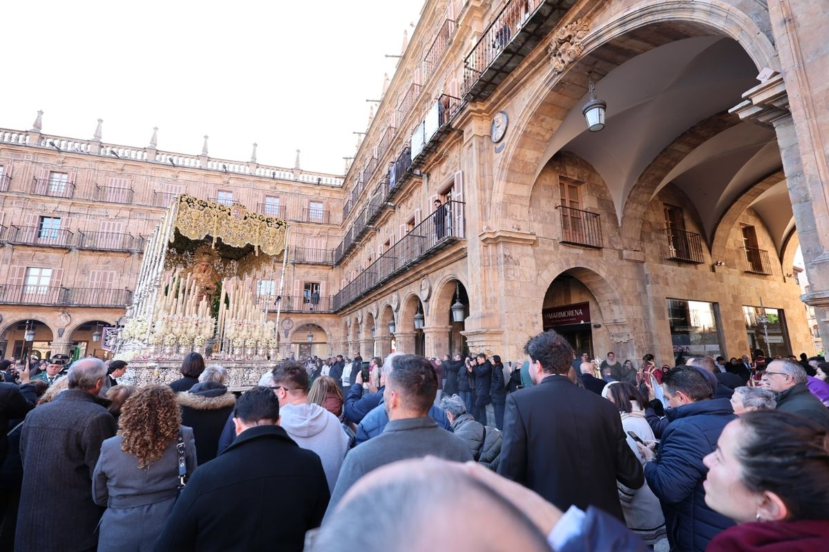 A las 5:00 horas de la mañana, las puertas del Convento de San Esteban se han abierto para dar inicio a una de las procesiones más esperadas de la Semana Santa salmantina. Cientos de fieles se han congregado en los alrededores del templo para acompañar a la Hermandad Dominicana en su recorrido por las calles del centro de la ciudad.