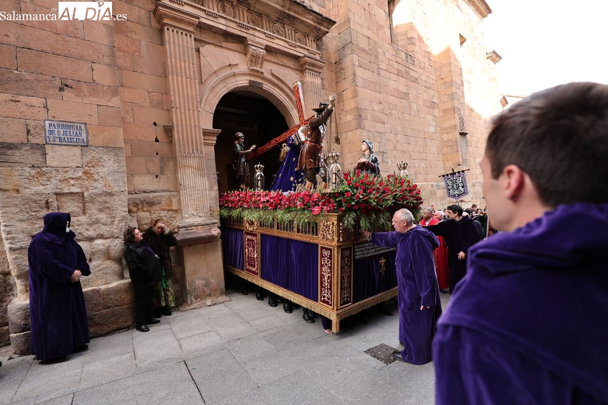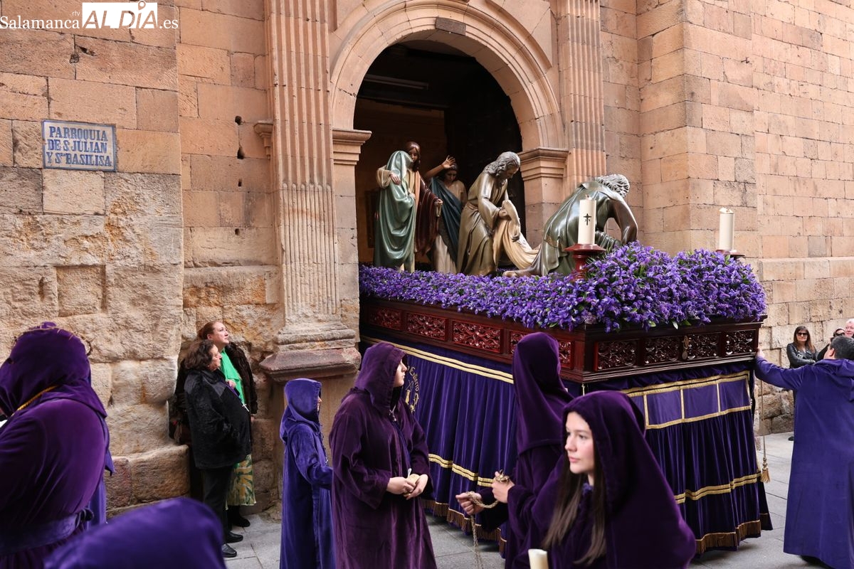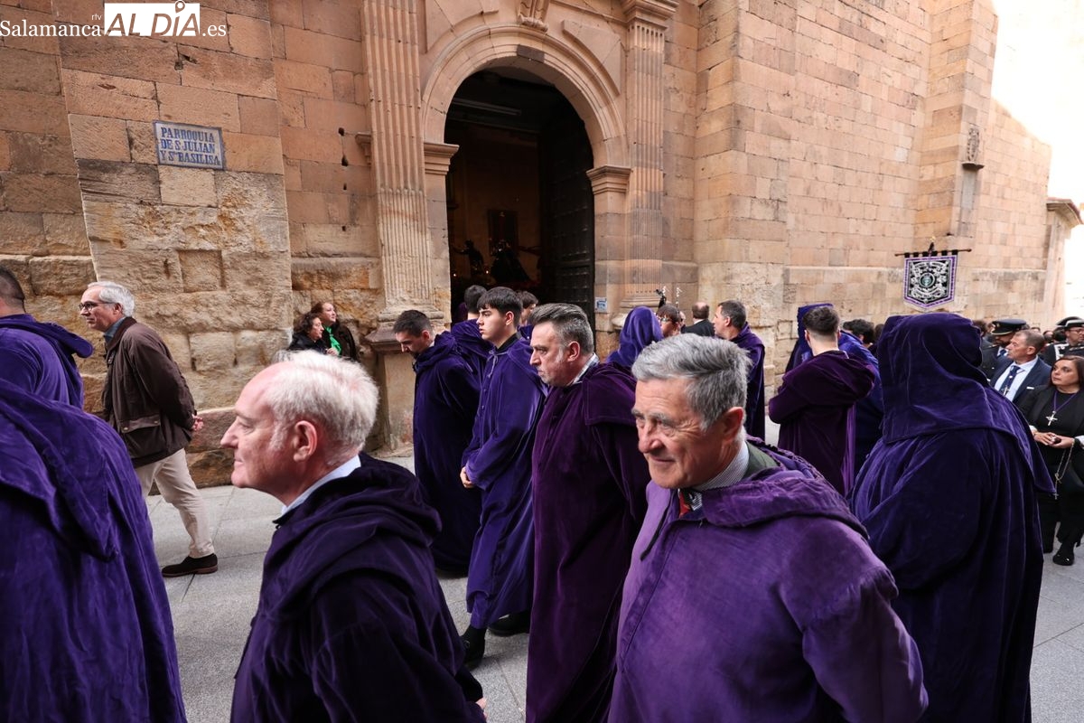 Tras el éxito del tradicional besapié celebrado hace unas semanas, que logró reunir a más de 3.000 fieles en la céntrica iglesia de San Julián y Santa Basilisa, la congregación ha vuelto a contar con el masivo respaldo del público en su desfile penitencial, con Jesús de la Amarhura y Santo Entierro.