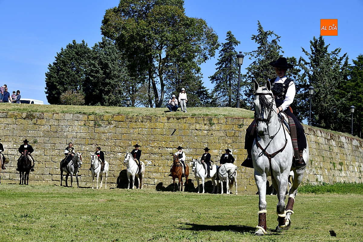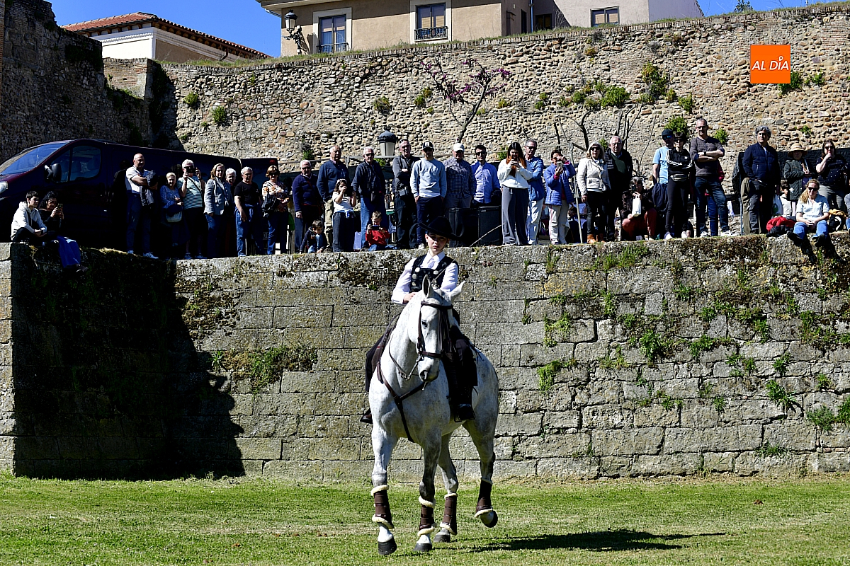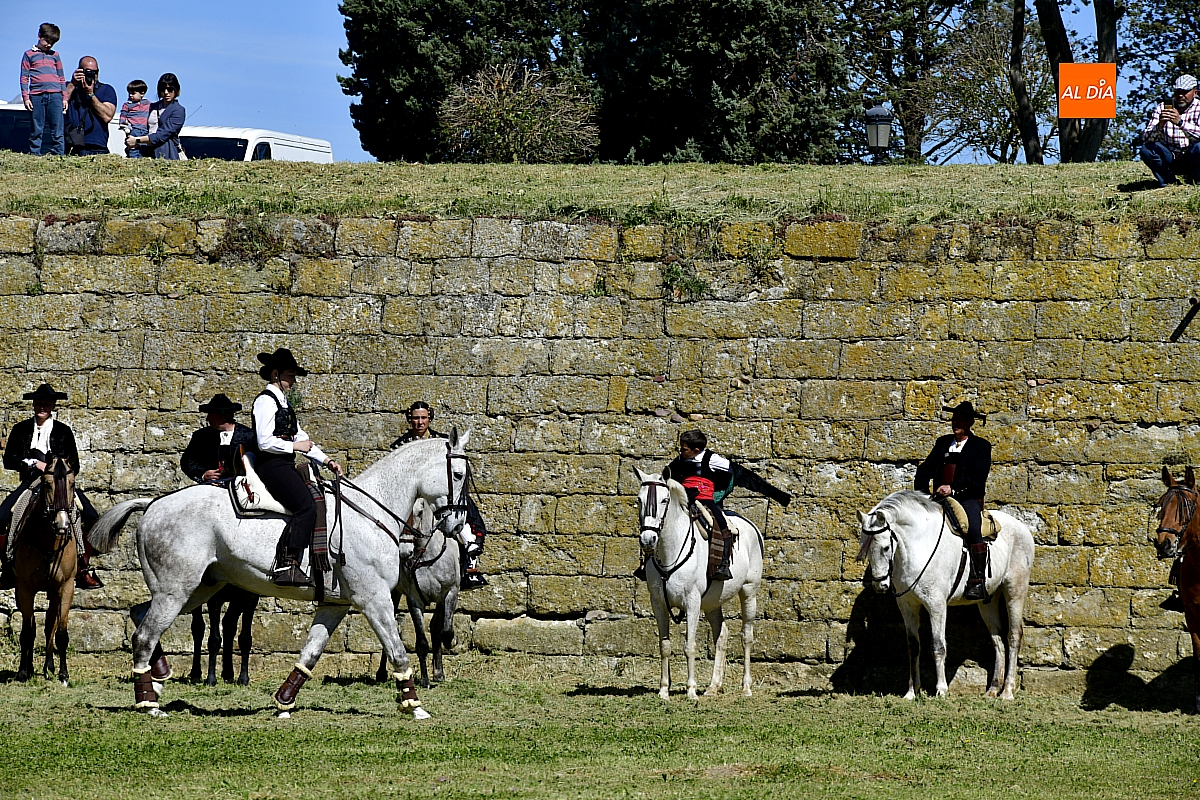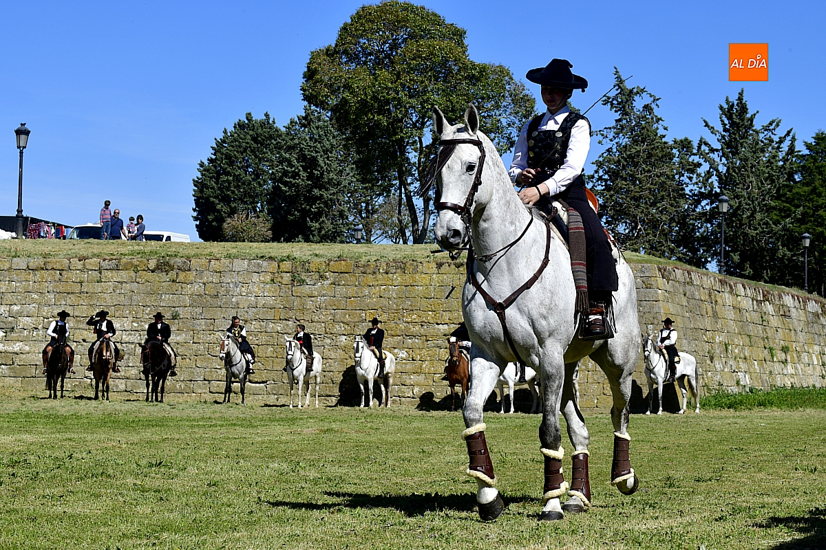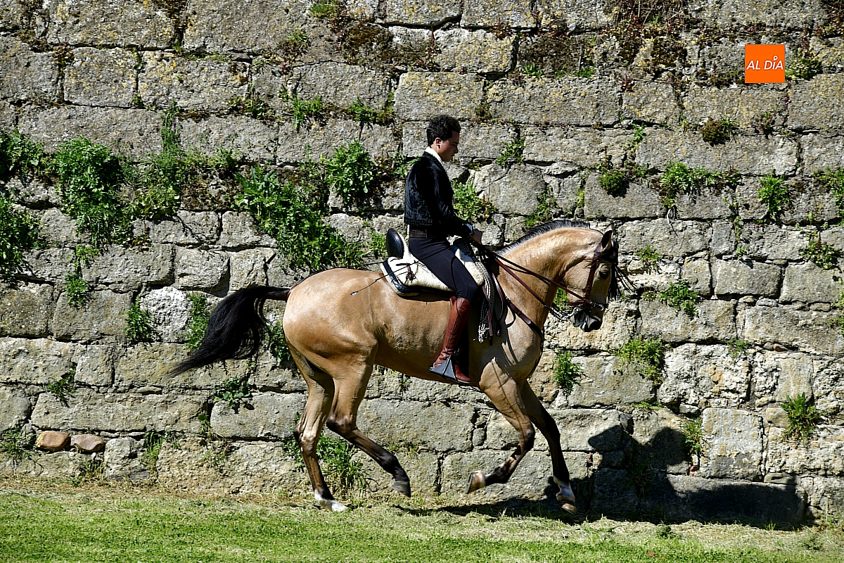 El foso de la Puerta del Sol acogió, a mediodía, uno de los momentos más esperados: la exhibición de doma vaquera charra salmantina. Lejos de ser un mero espectáculo, la demostración se reveló como una expresión depurada de un saber ancestral, en el que caballo y jinete dialogan con precisión y elegancia. El folclorista y experto ecuestre José Ramón Cid fue desgranando para el público las claves de esta disciplina, aportando contexto y profundidad a cada movimiento, a cada giro medido.