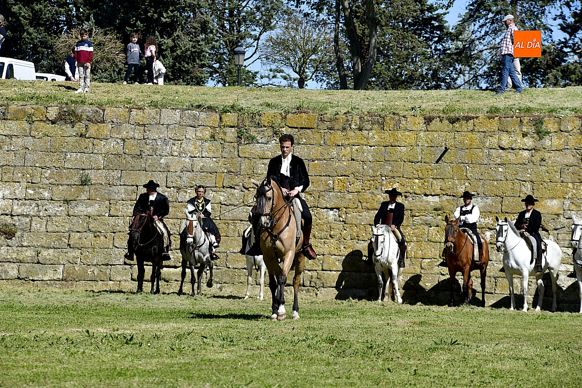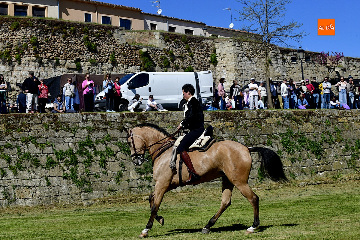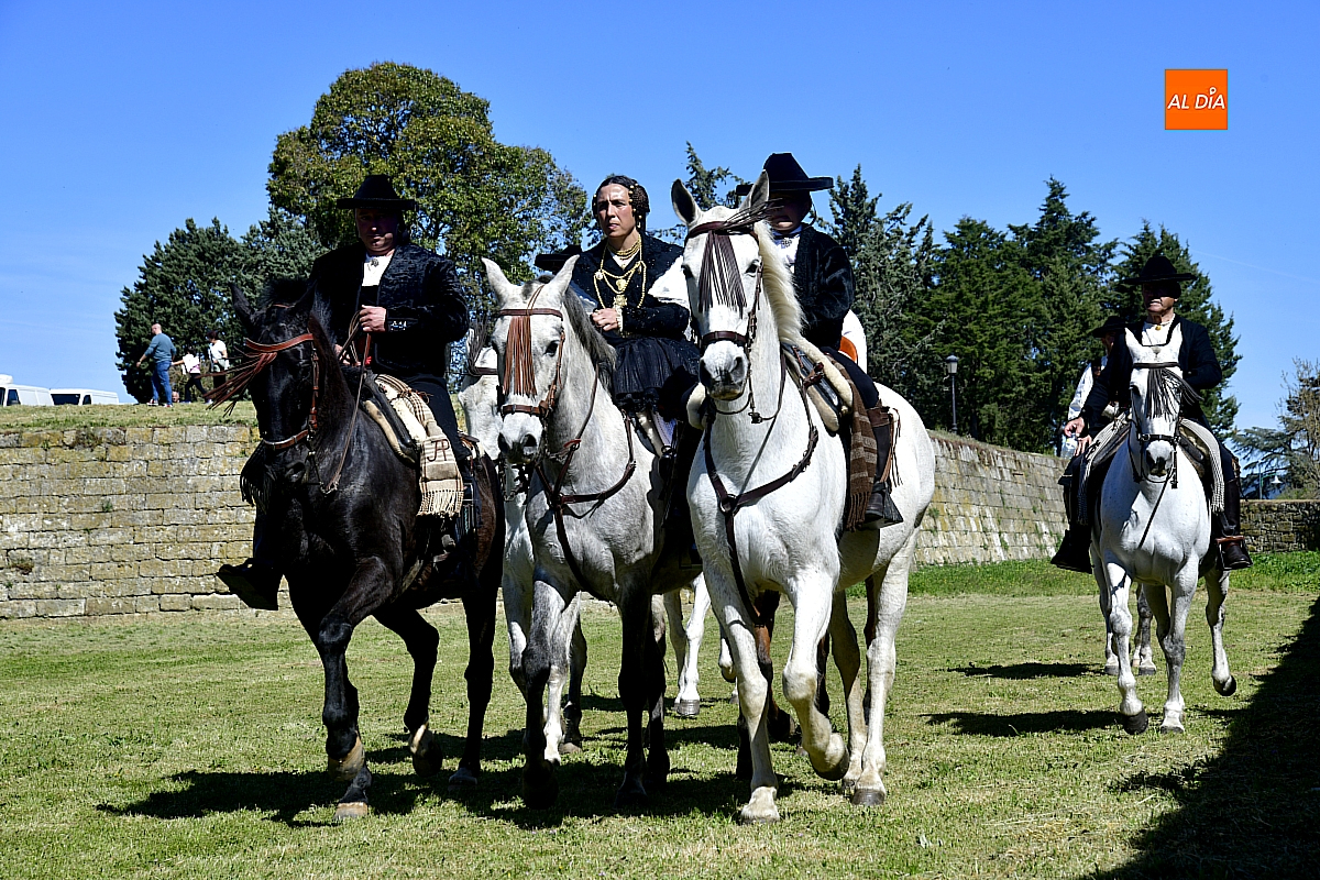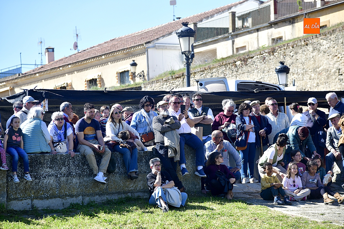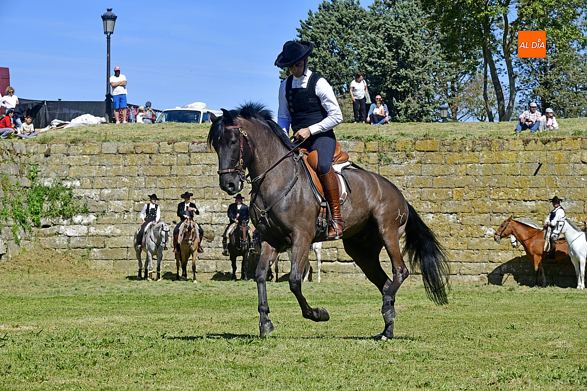 El foso de la Puerta del Sol acogió, a mediodía, uno de los momentos más esperados: la exhibición de doma vaquera charra salmantina. Lejos de ser un mero espectáculo, la demostración se reveló como una expresión depurada de un saber ancestral, en el que caballo y jinete dialogan con precisión y elegancia. El folclorista y experto ecuestre José Ramón Cid fue desgranando para el público las claves de esta disciplina, aportando contexto y profundidad a cada movimiento, a cada giro medido.