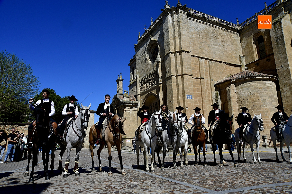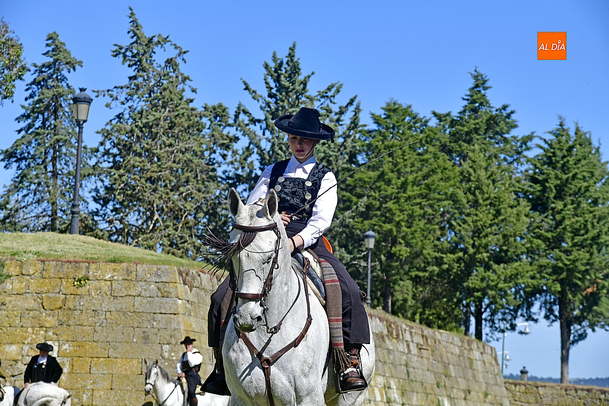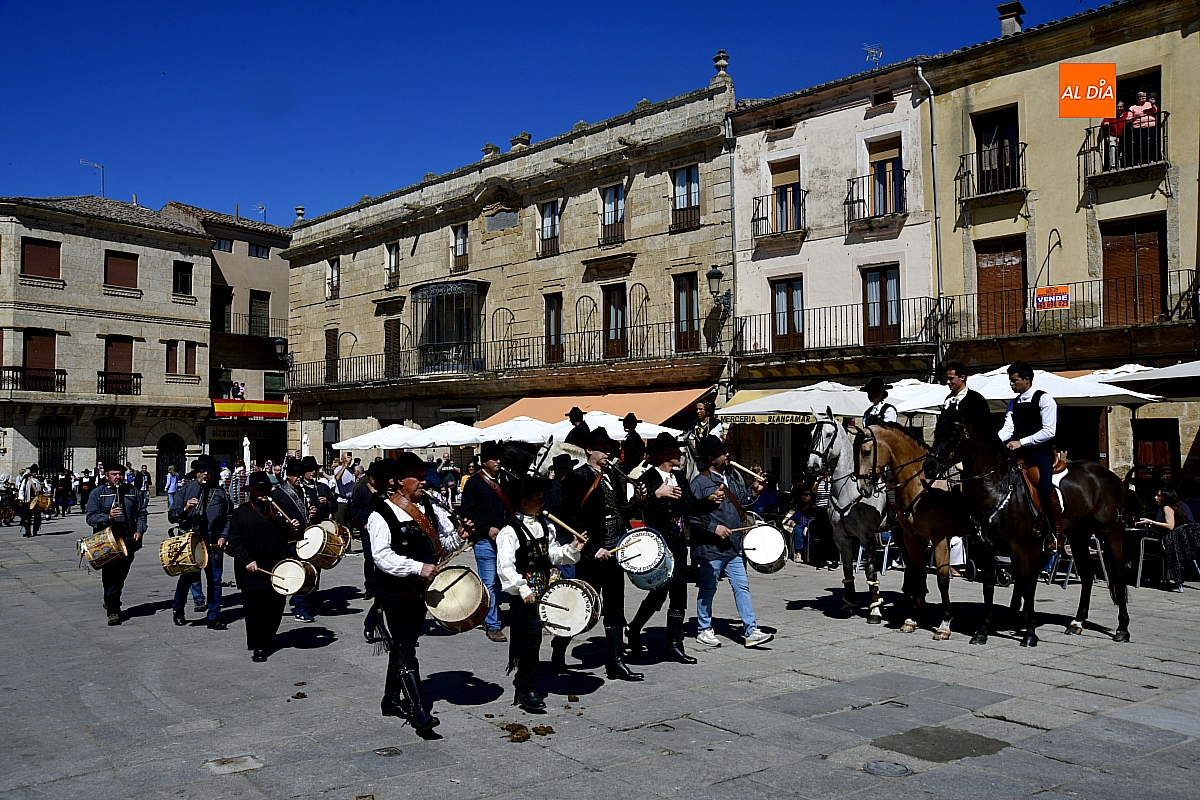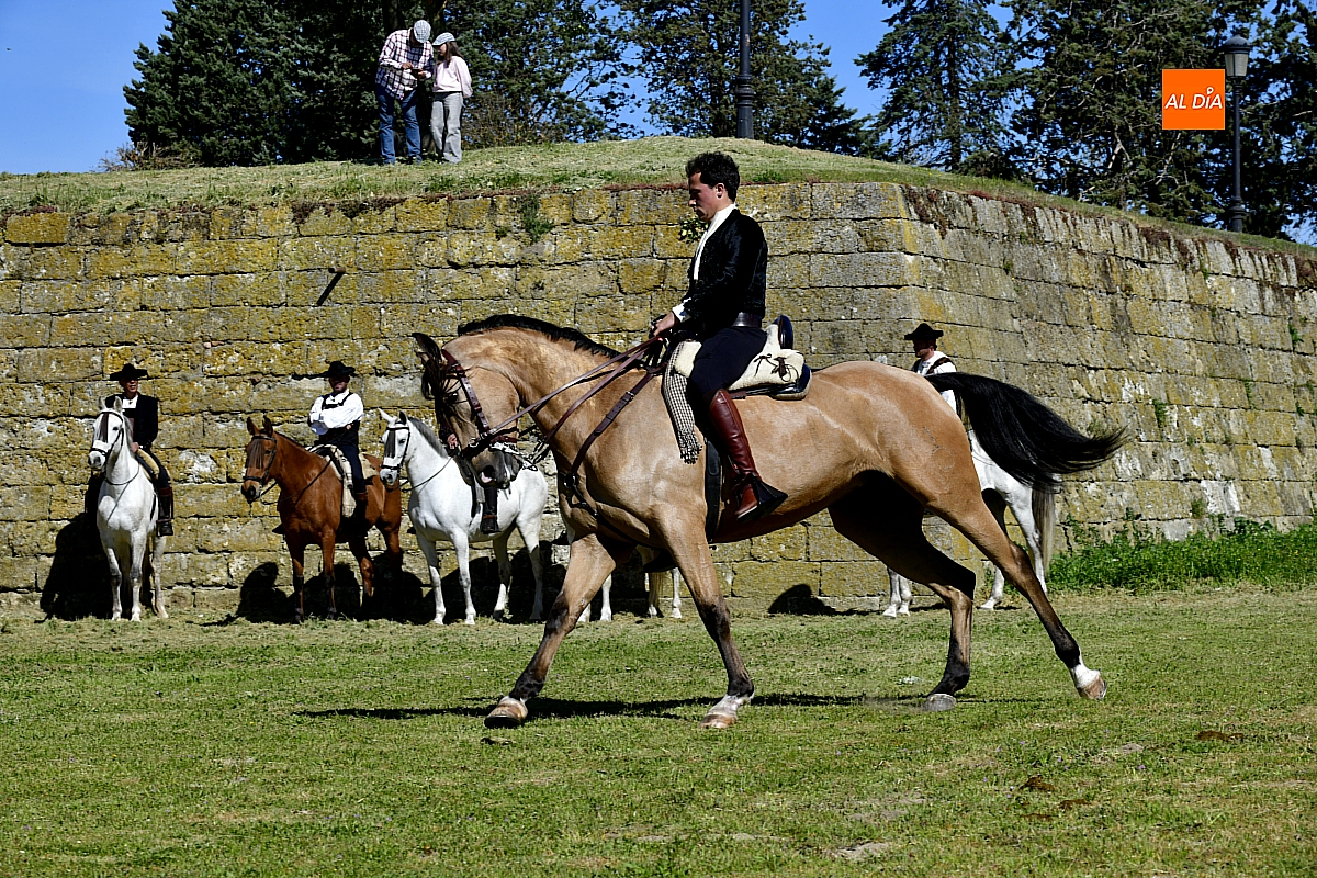 Las calles de Ciudad Rodrigo vivieron este Sábado de Gloria una transformación tan sonora como simbólica: al recogimiento propio de las procesiones sucedió con naturalidad, el eco festivo de gaitas y tamboriles, el ritmo firme de las herraduras de caballos y el bullicio de un público entregado. La XLV edición de la Fiesta de La Charrada, declarada de Interés Turístico Regional, abrió así su programación en una mañana calurosa que conjugó con acierto la tradición ecuestre y el folclore charro.