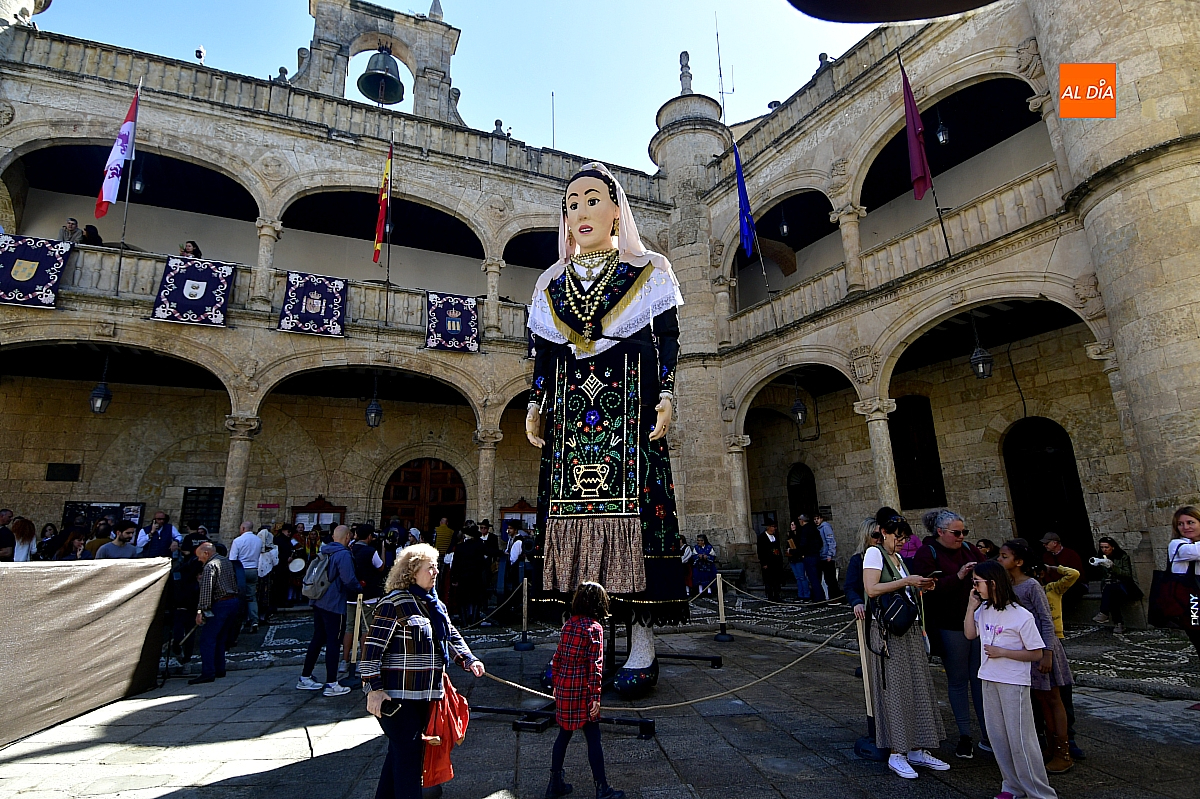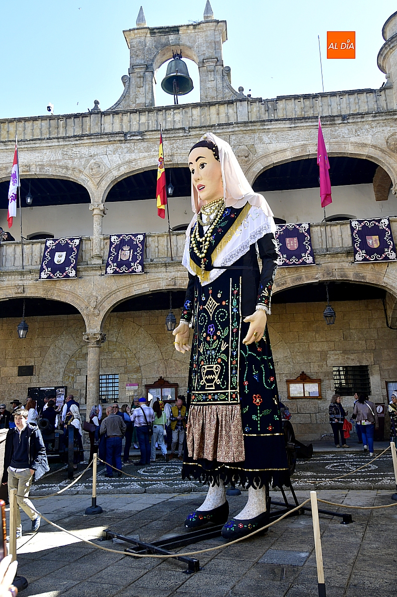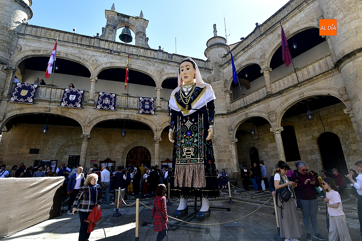 La gingantesca Charra de la carroza de Carnaval de San Andrés del año 25 preside ante la monumental fachacada del consistorio local como símbolo de la fiesta comprada recientemente por el Ayuntamiento de Ciudad Rodrigo a la asociación vecinal por 1.000 euros más 500 euros de montaje y desmontaje para este evento.