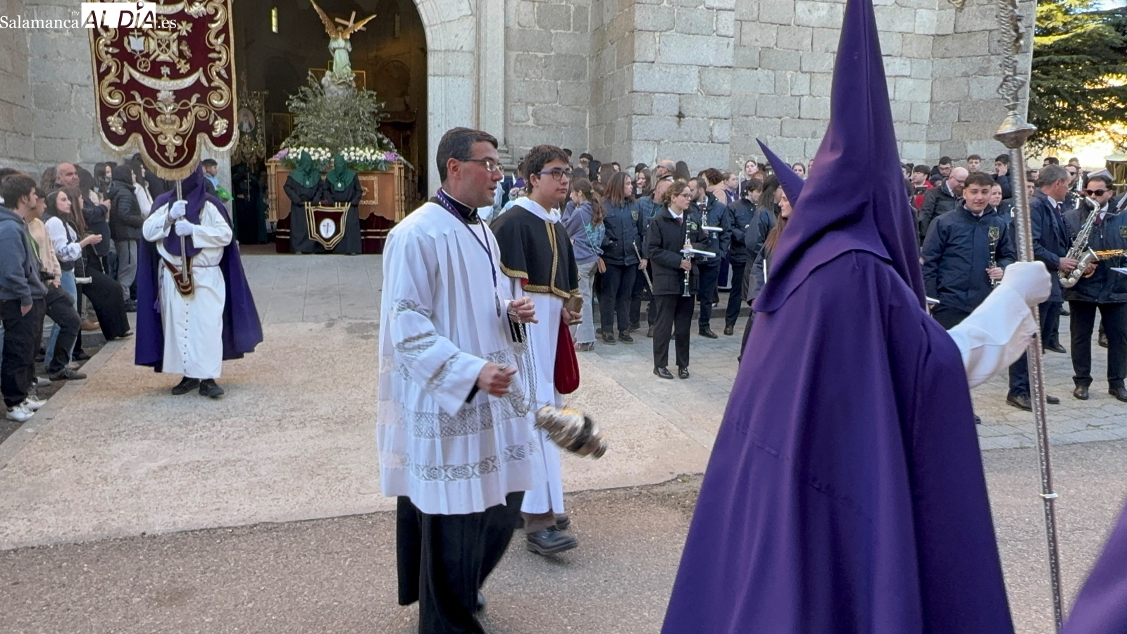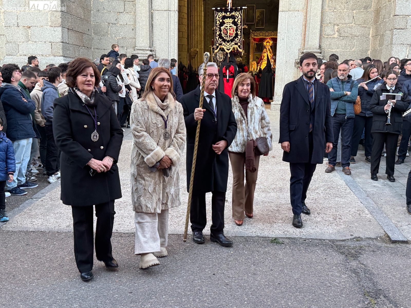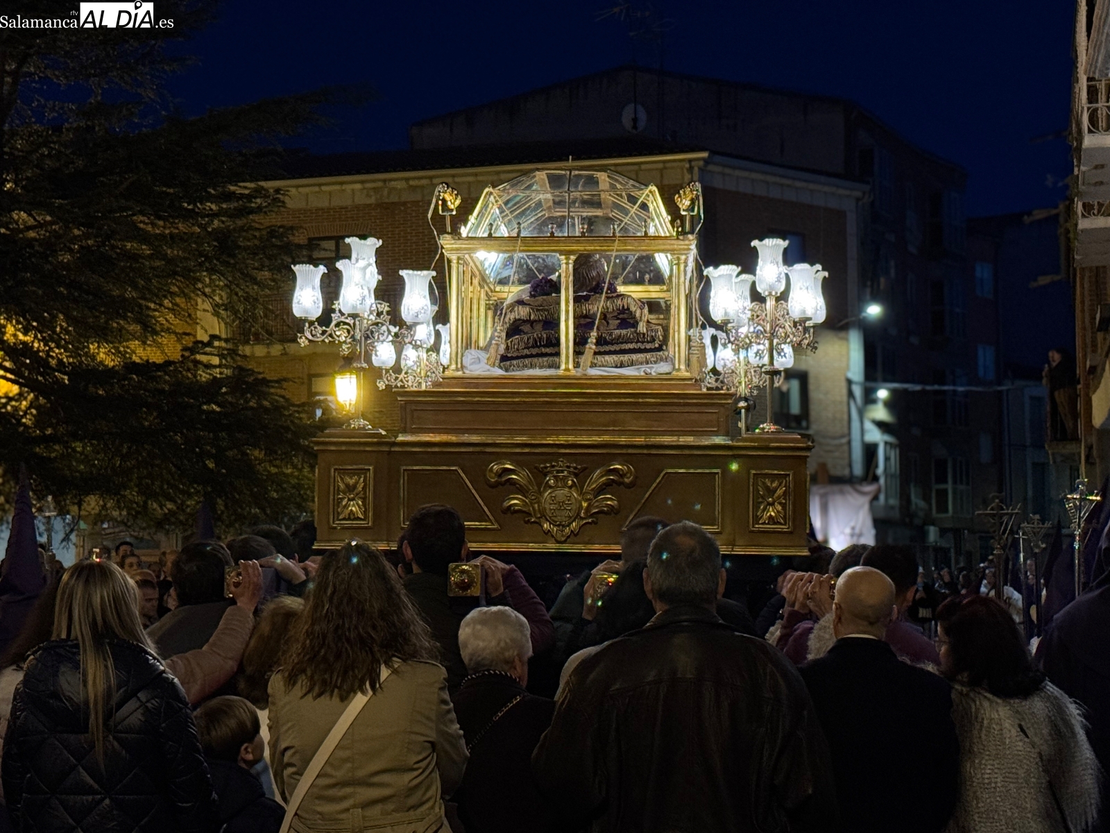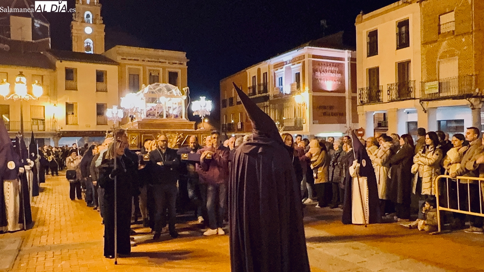 La procesión del Santo Entierro ha vuelto a recorrer en la tarde de este Viernes Santo las calles de Peñaranda, volviendo a convertirse en la cita más multitudinaria de la Semana Santa local. La cita, marcada por el recogimiento y la solemnidad propios de la jornada, congregó a miles de personas a lo largo de todo el itinerario.