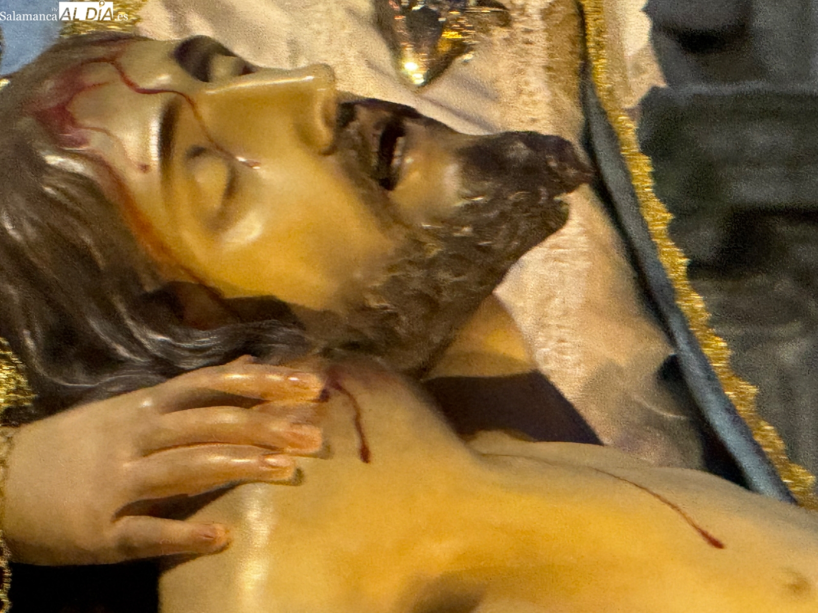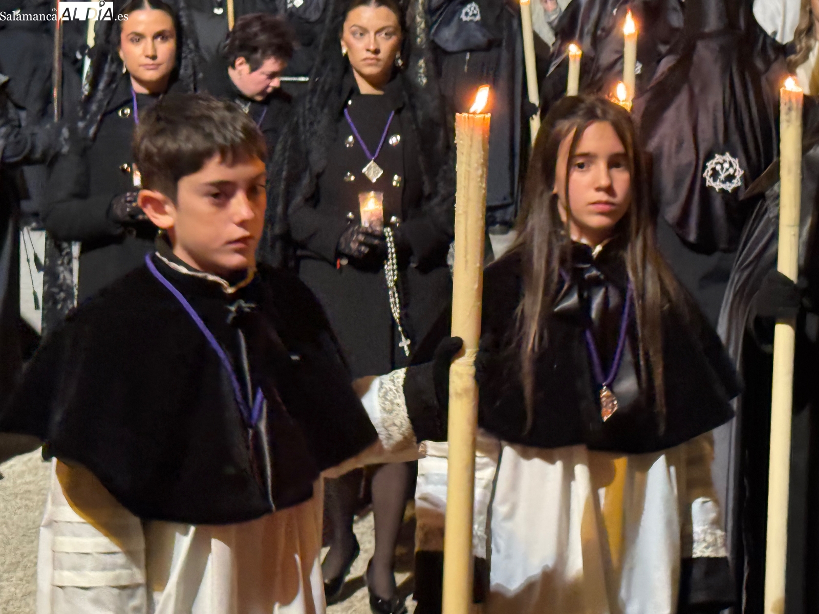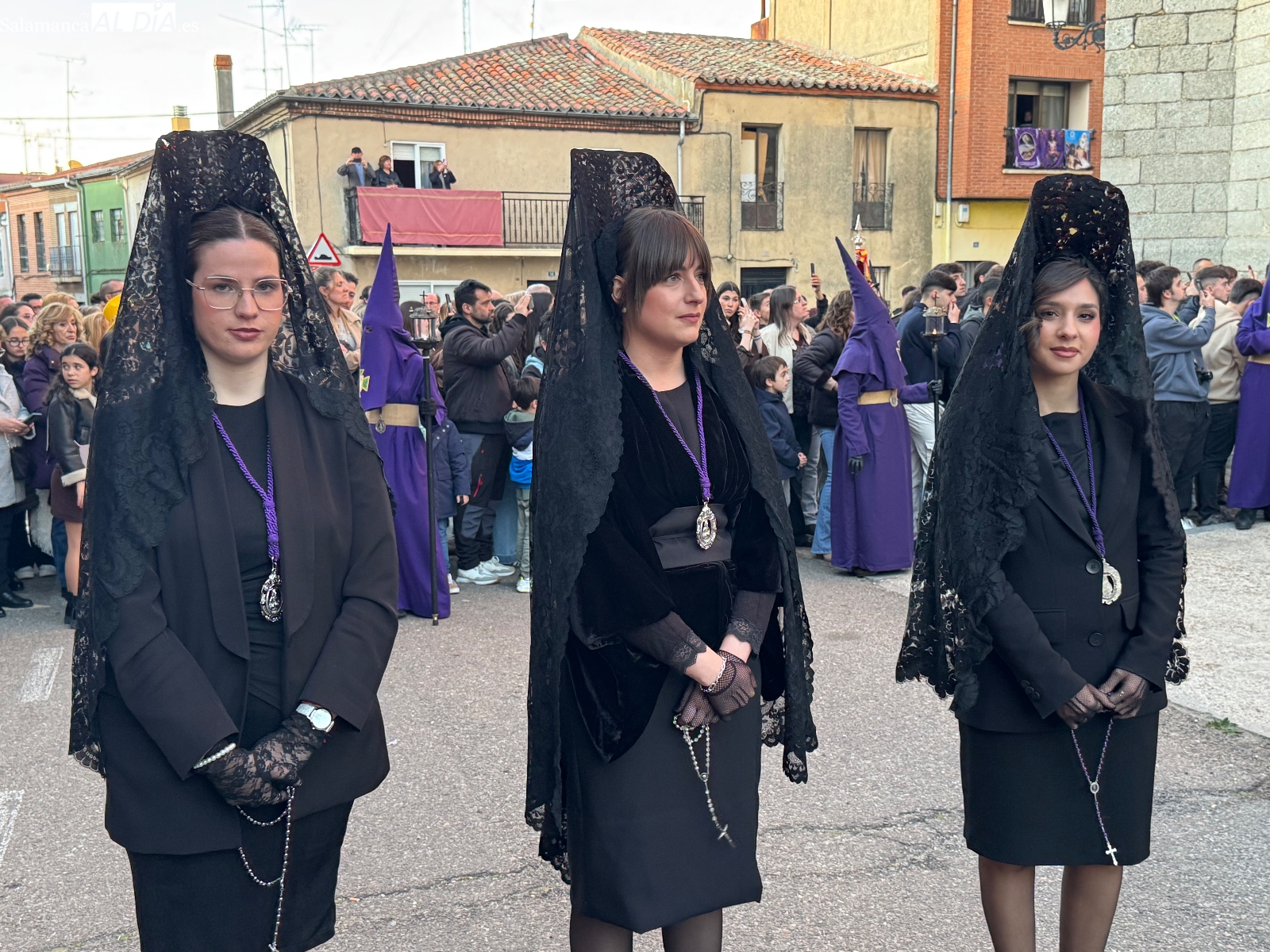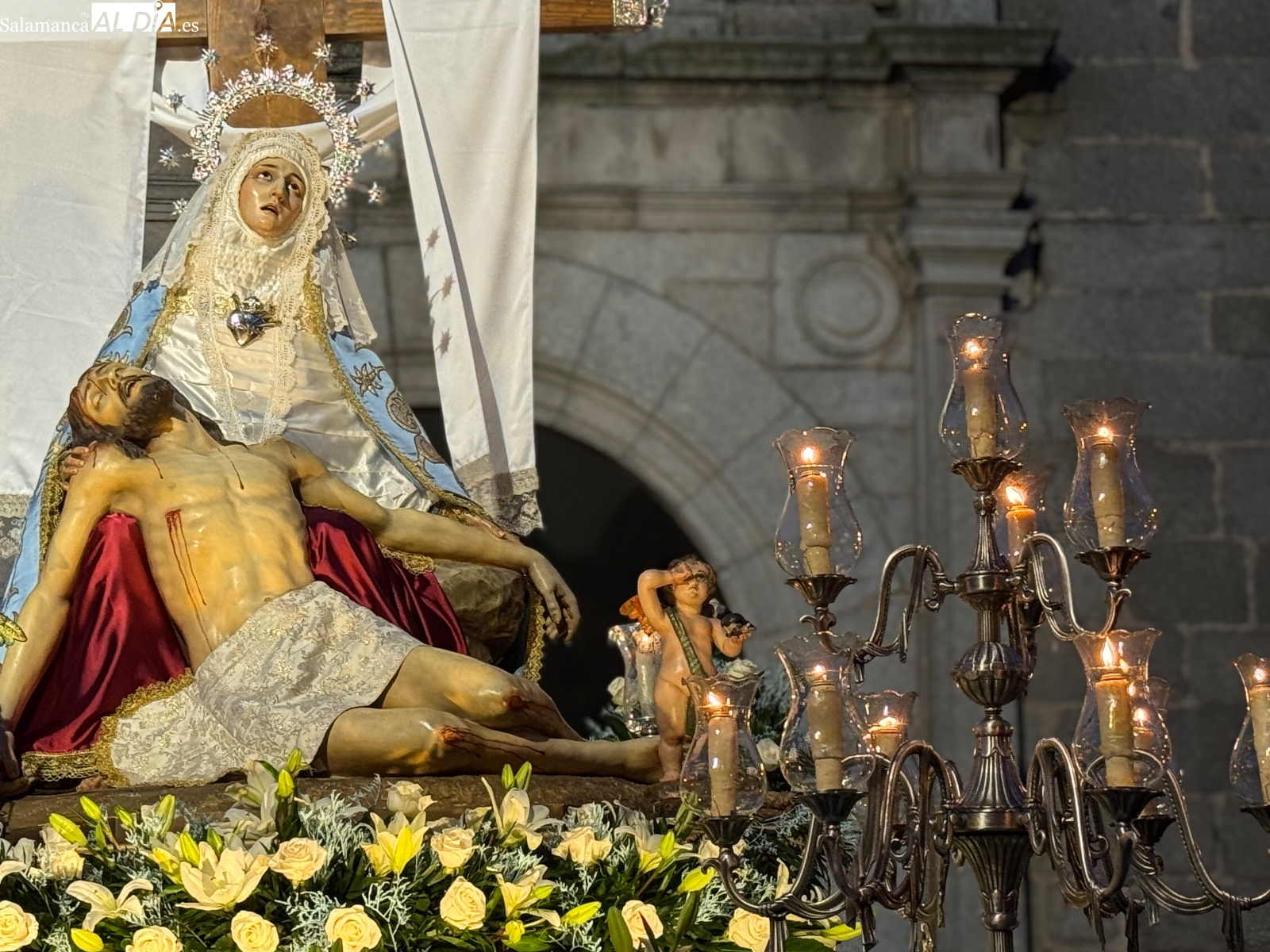 La procesión del Santo Entierro ha vuelto a recorrer en la tarde de este Viernes Santo las calles de Peñaranda, volviendo a convertirse en la cita más multitudinaria de la Semana Santa local. La cita, marcada por el recogimiento y la solemnidad propios de la jornada, congregó a miles de personas a lo largo de todo el itinerario.