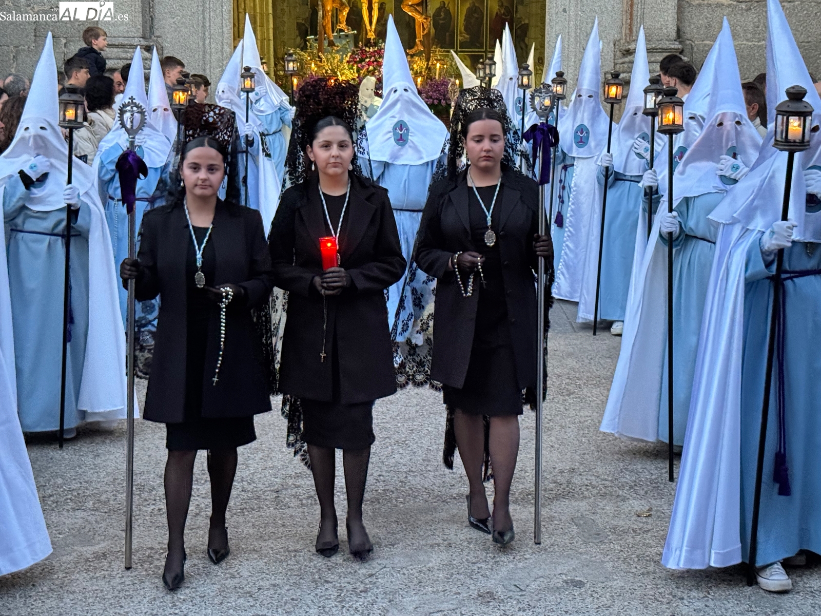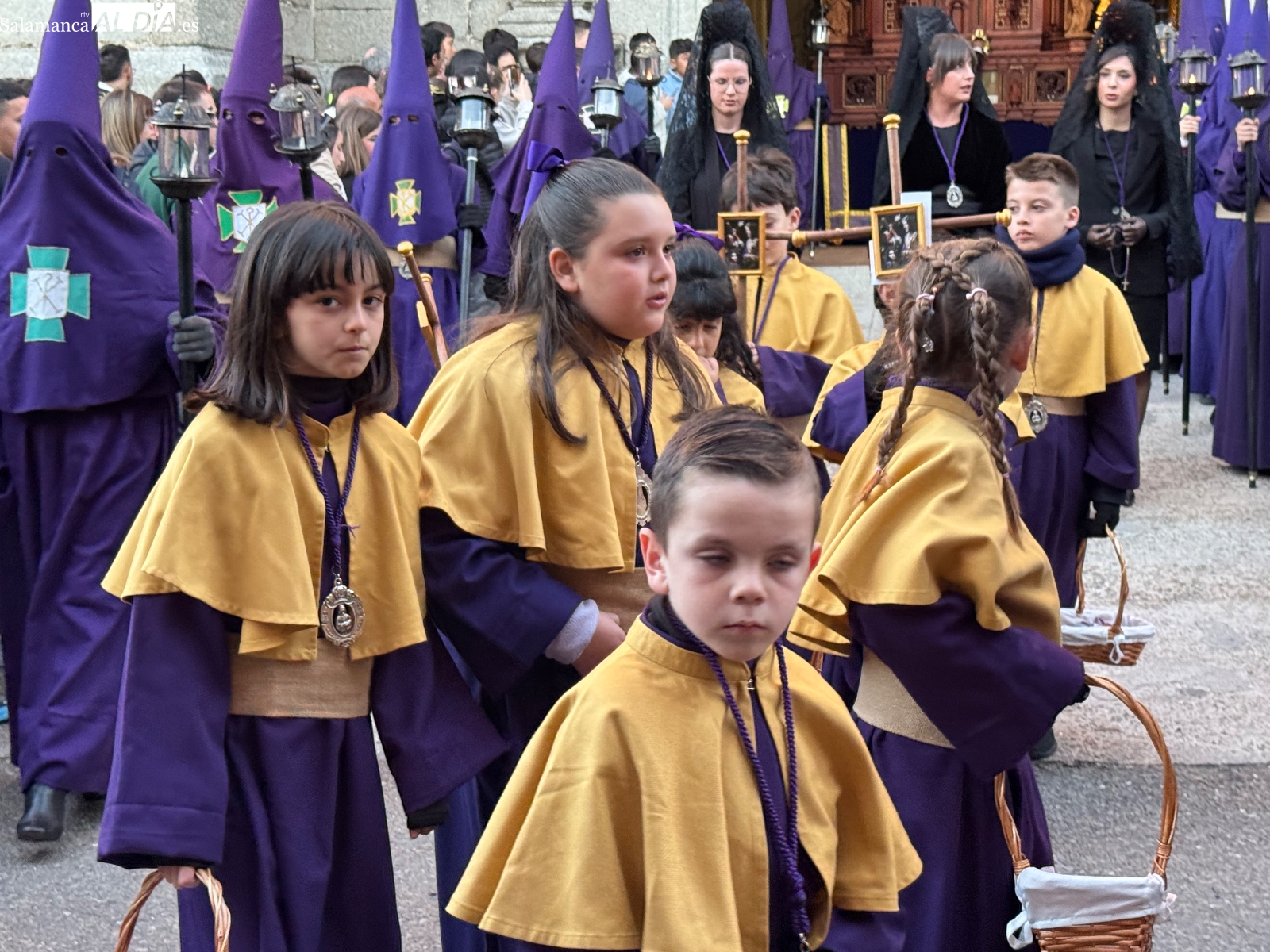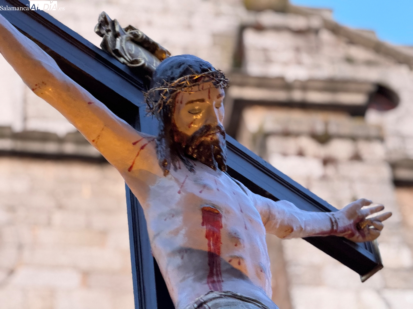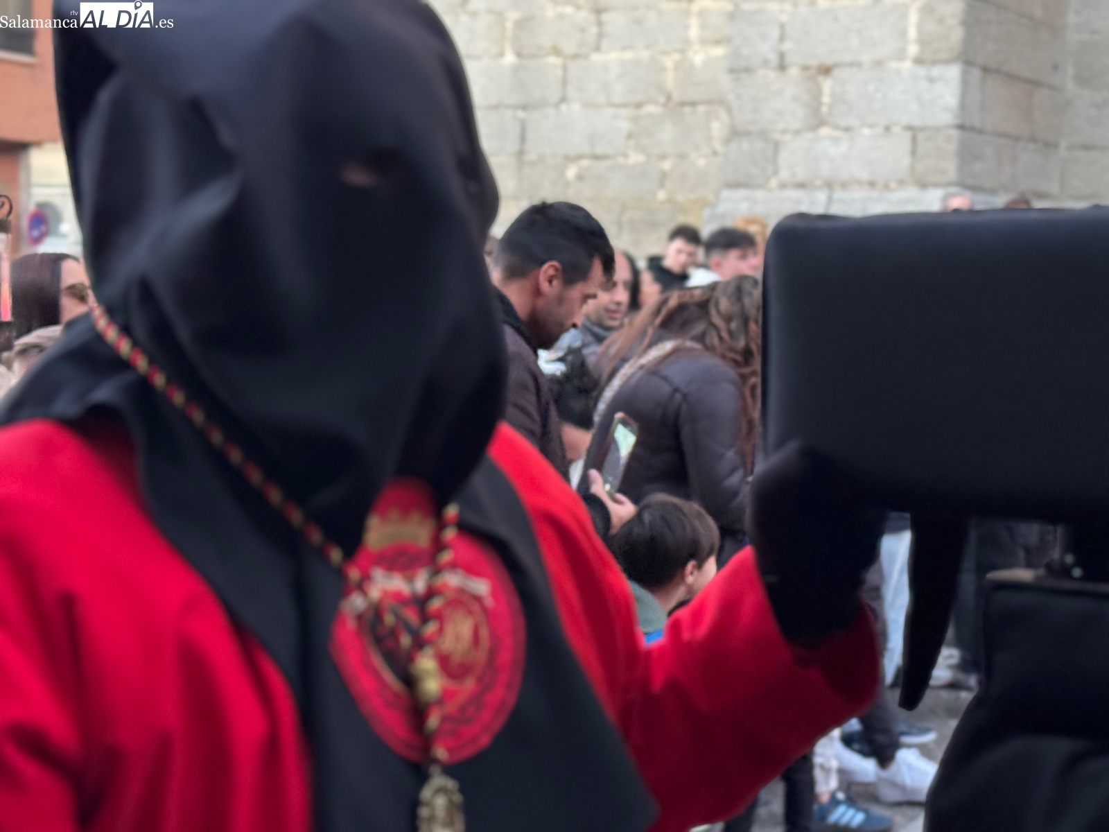 La procesión del Santo Entierro ha vuelto a recorrer en la tarde de este Viernes Santo las calles de Peñaranda, volviendo a convertirse en la cita más multitudinaria de la Semana Santa local. La cita, marcada por el recogimiento y la solemnidad propios de la jornada, congregó a miles de personas a lo largo de todo el itinerario.