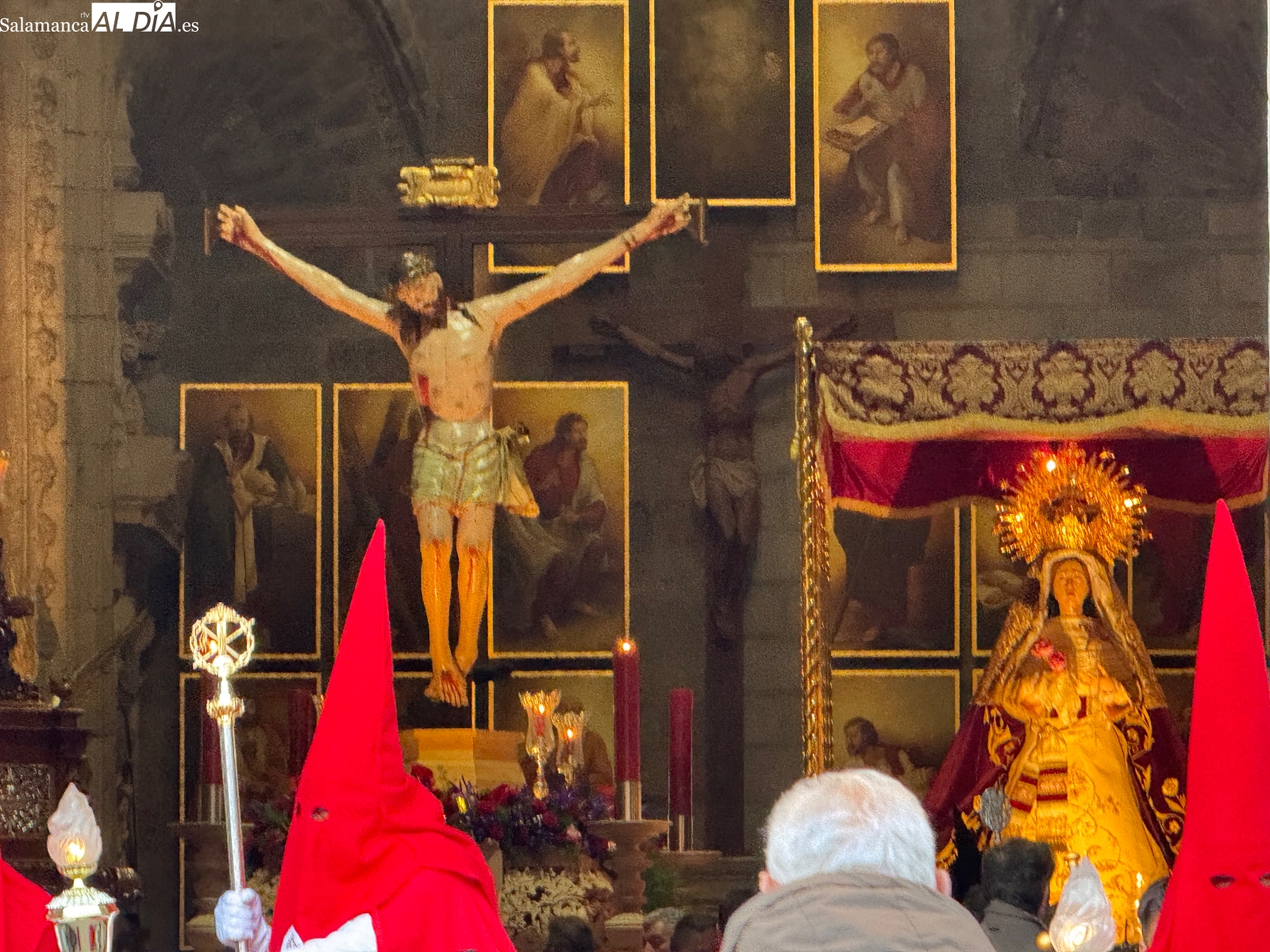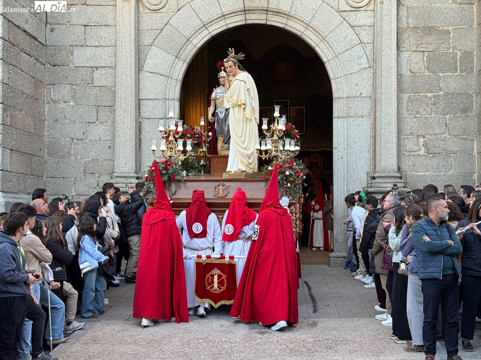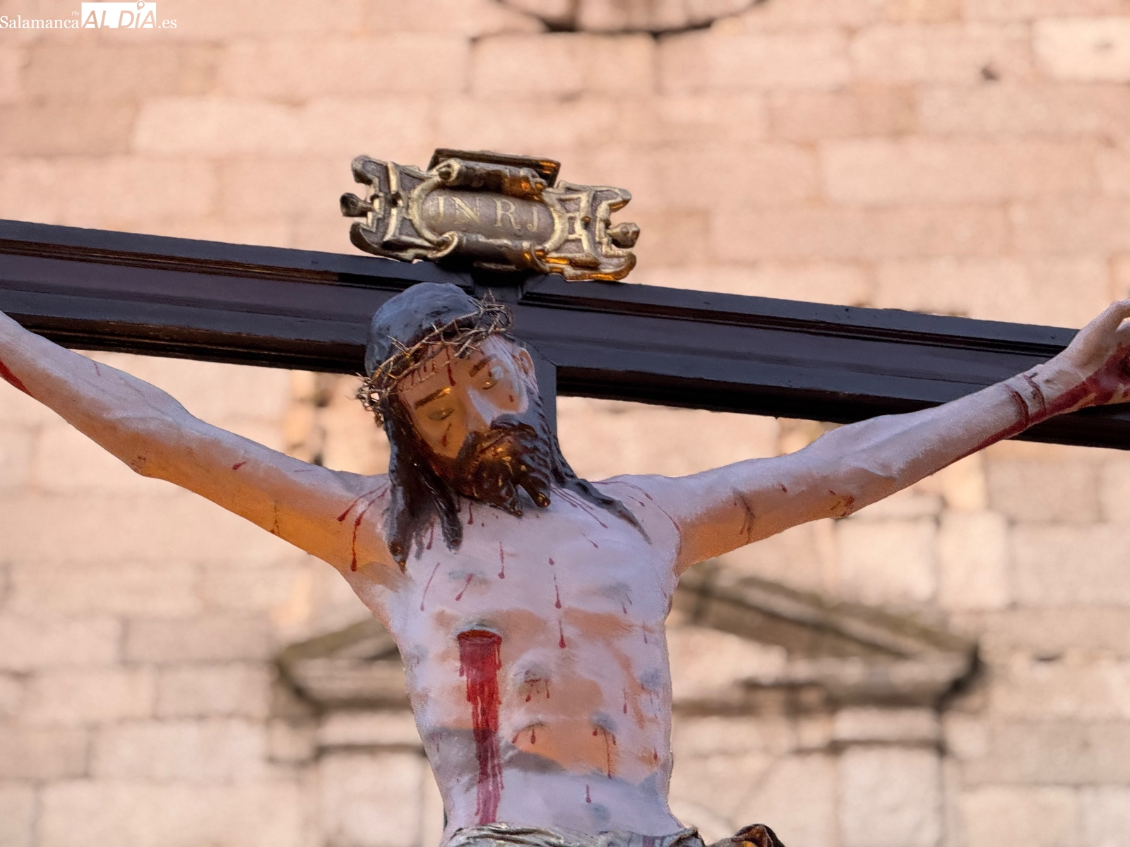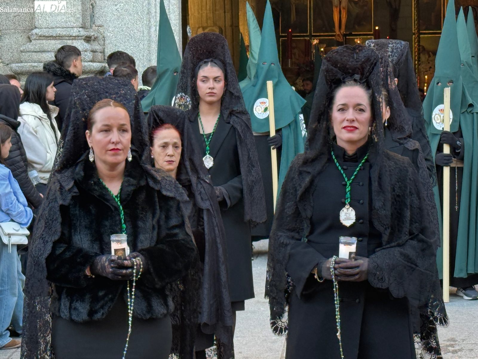 La procesión del Santo Entierro ha vuelto a recorrer en la tarde de este Viernes Santo las calles de Peñaranda, volviendo a convertirse en la cita más multitudinaria de la Semana Santa local. La cita, marcada por el recogimiento y la solemnidad propios de la jornada, congregó a miles de personas a lo largo de todo el itinerario.