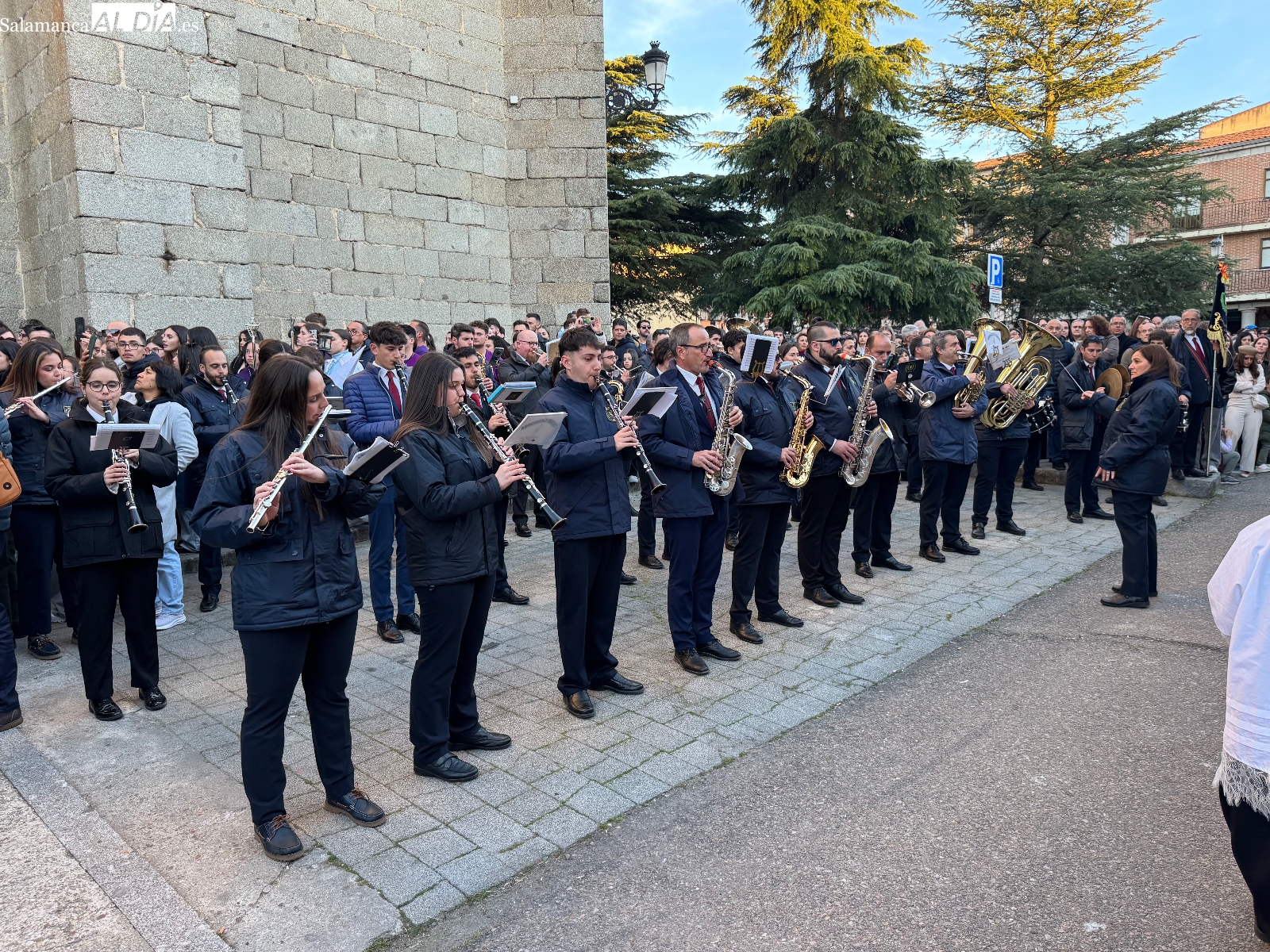 El acompañamiento musical de la Banda de Almorox y la Banda de Cornetas y Tambores de la Hermandad, contribuyó a reforzar el tono solemne del cortejo, marcando el paso de las imágenes durante todo el recorrido y subrayando los momentos más significativos de la procesión.