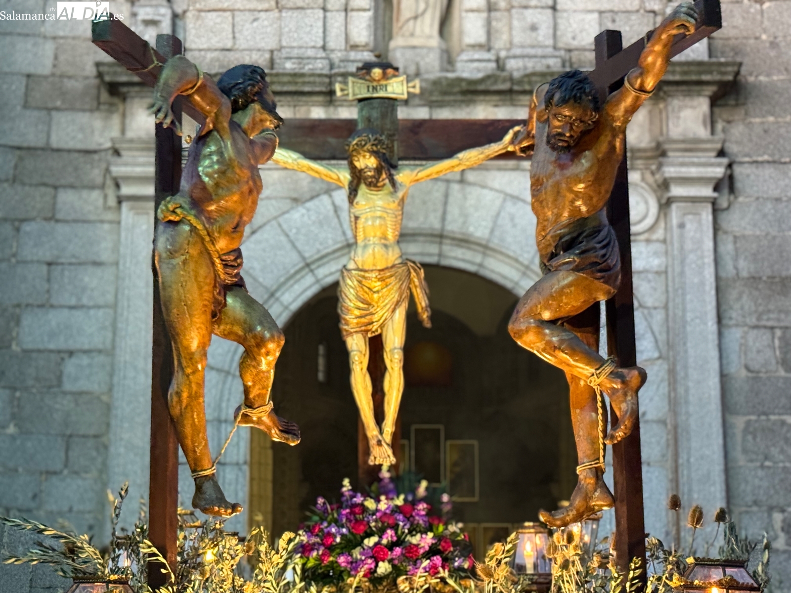 Poco antes de las ocho de la tarde, numerosos fieles y visitantes se concentraban ya en las inmediaciones de la iglesia parroquial, a la espera del inicio del desfile. Con la apertura de las puertas del templo, daba comienzo una procesión en la que participaron las ocho cofradías de la localidad, en una muestra conjunta de fe y tradición.