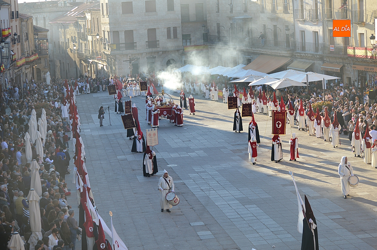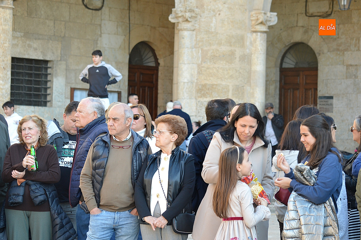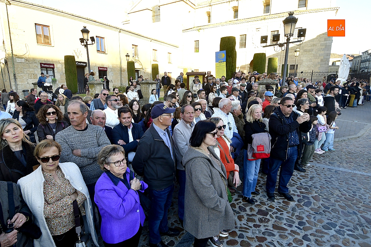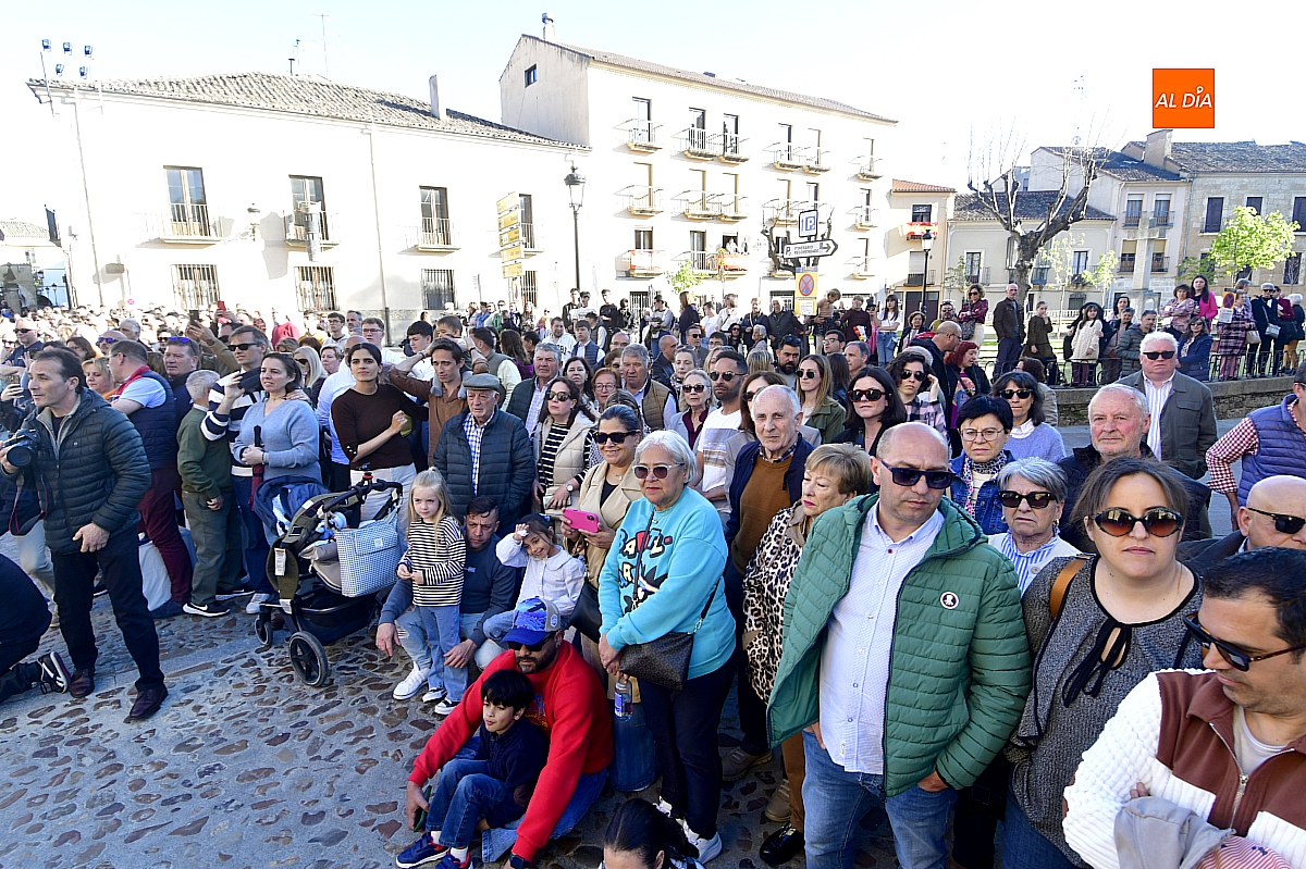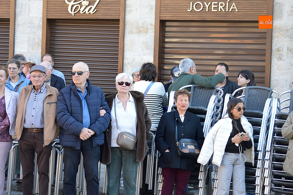 El recorrido tuvo como primer destino la Plaza Mayor, a la que se accedió por la calle Cardenal Pacheco, tras la supresión del antiguo trayecto hacia el Palacio de Cartago y la calle Colada. Si en la Puerta de las Cadenas se concentraban ya centenares de personas, tanto en el itinerario como en la Plaza Mayor la afluencia alcanzó varios millares, ocupando prácticamente cualquier espacio disponible, incluidos los establecimientos hosteleros, que registraron un lleno absoluto.