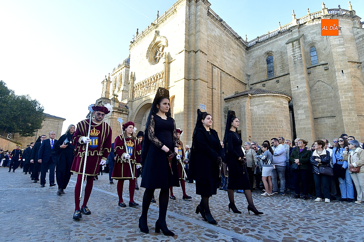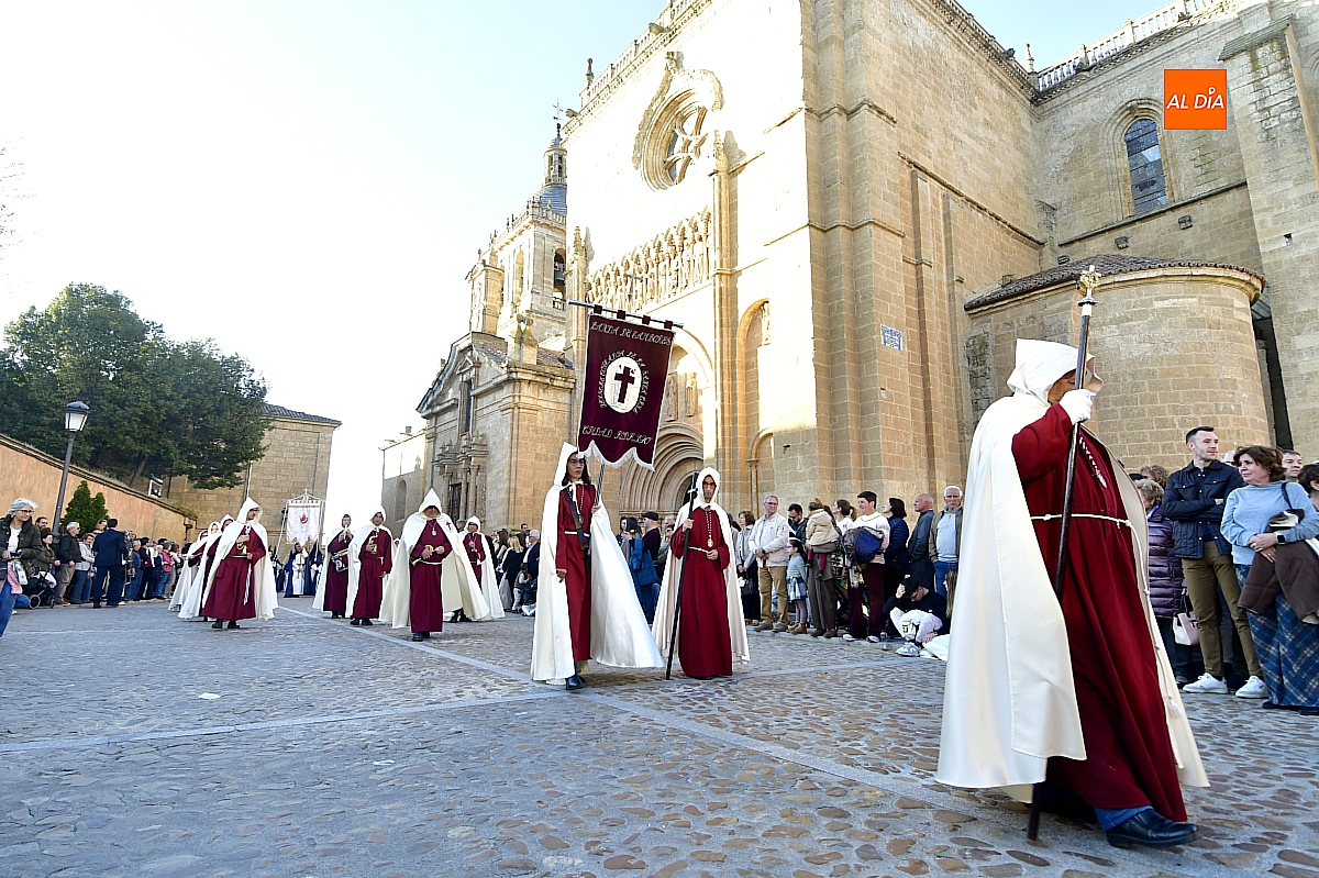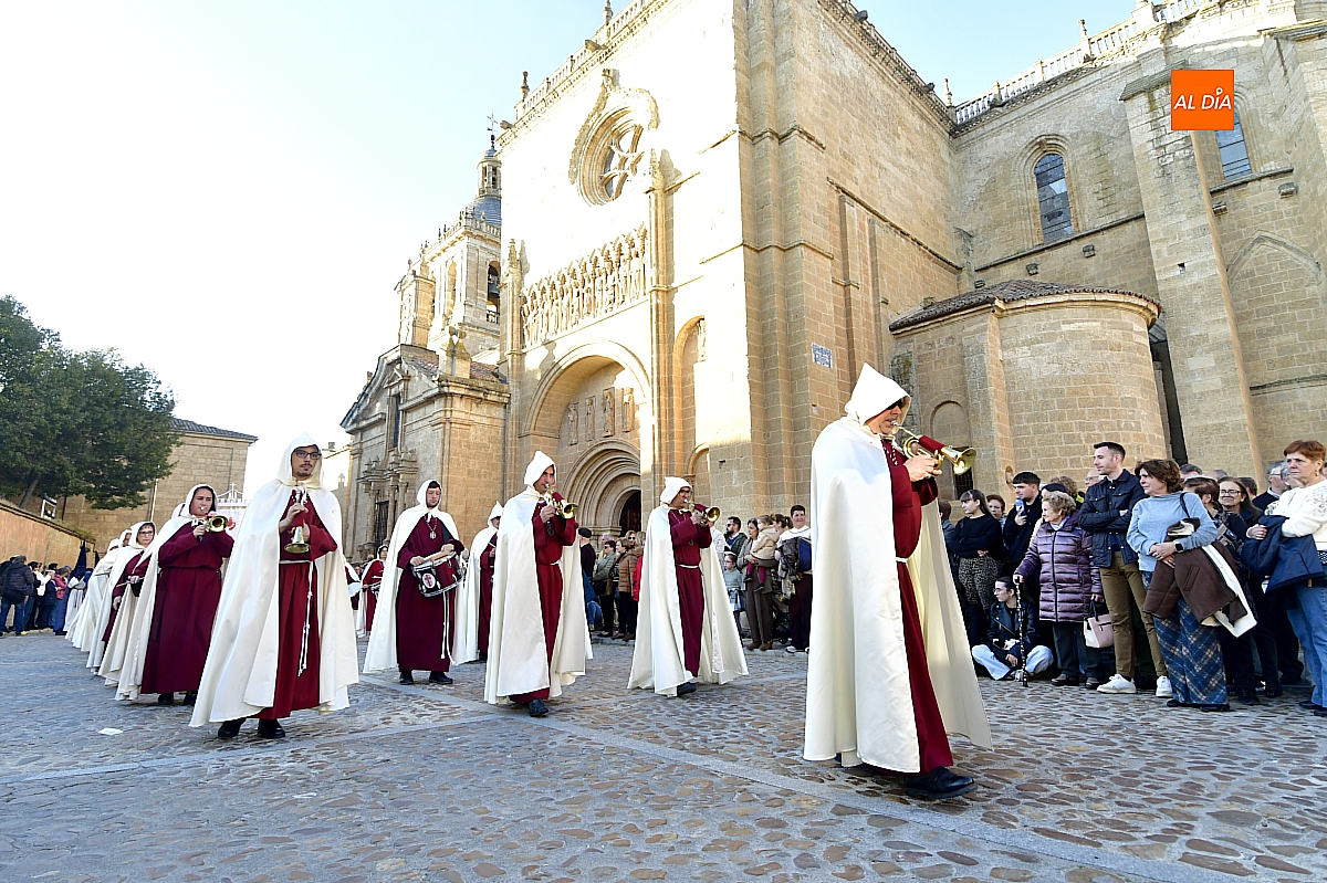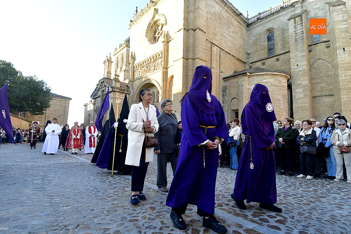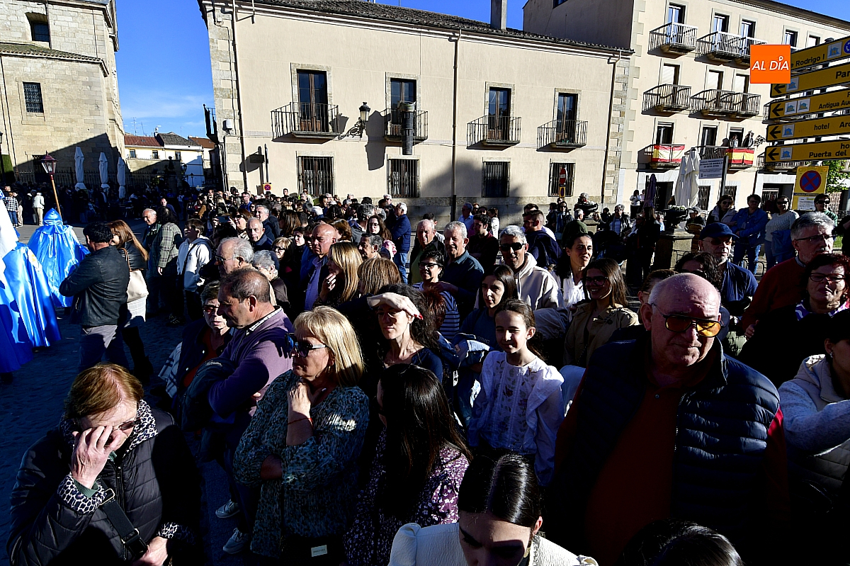 Un sol radiante y una temperatura especialmente agradable animaron a millares de personas a salir a las calles céntricas de Ciudad Rodrigo para contemplar la belleza de las imágenes y la cuidada puesta en escena de las siete cofradías, que partieron de forma conjunta y ordenada desde la S.I. Catedral de Santa María.