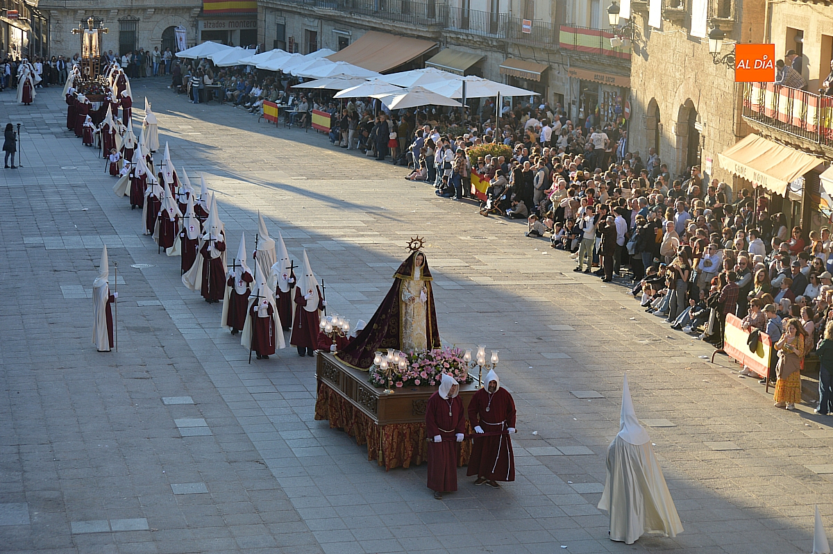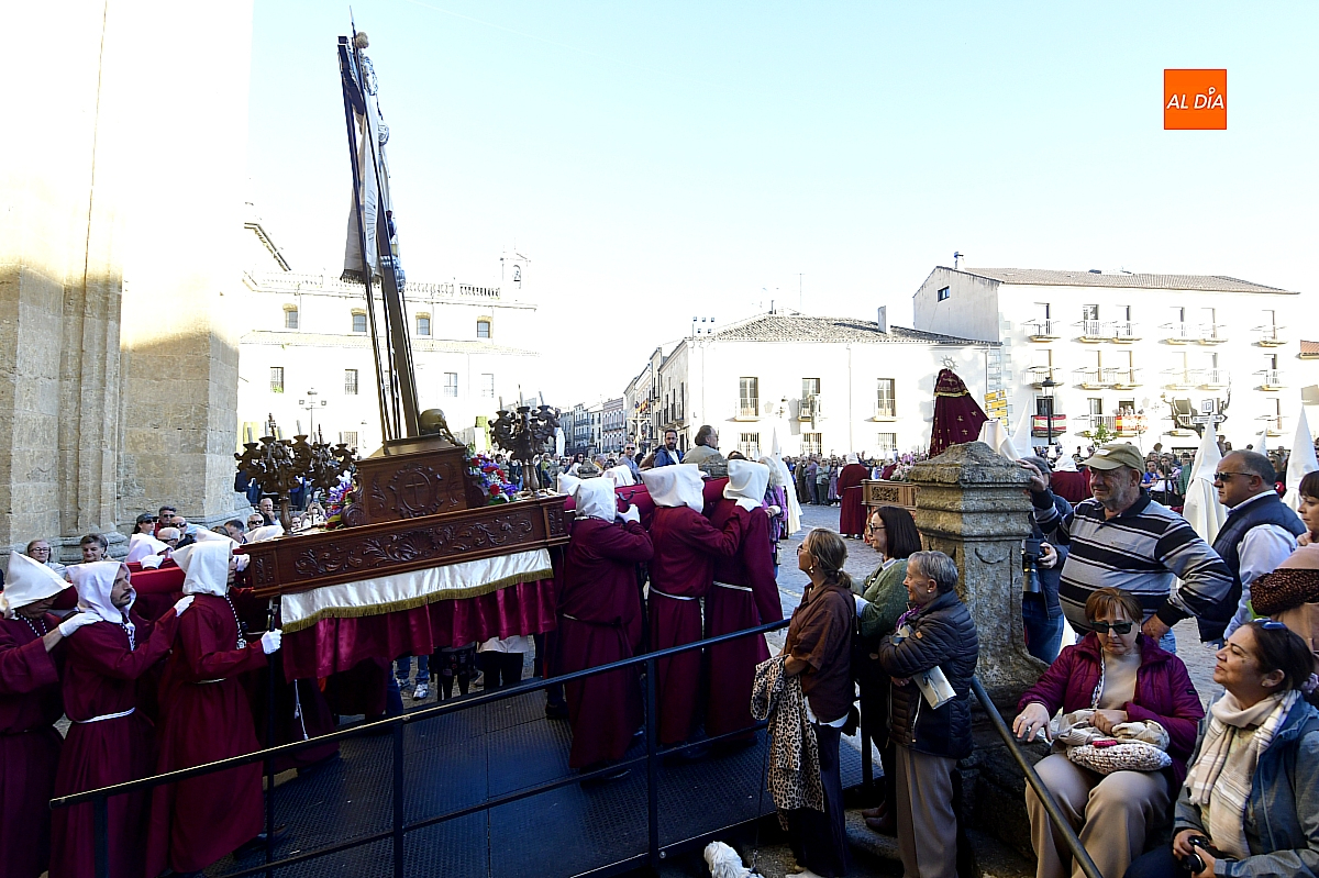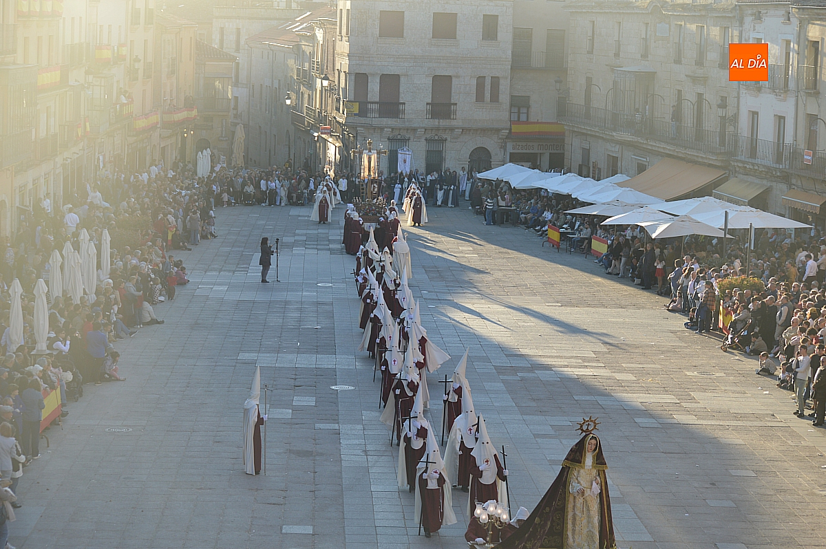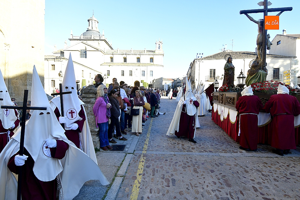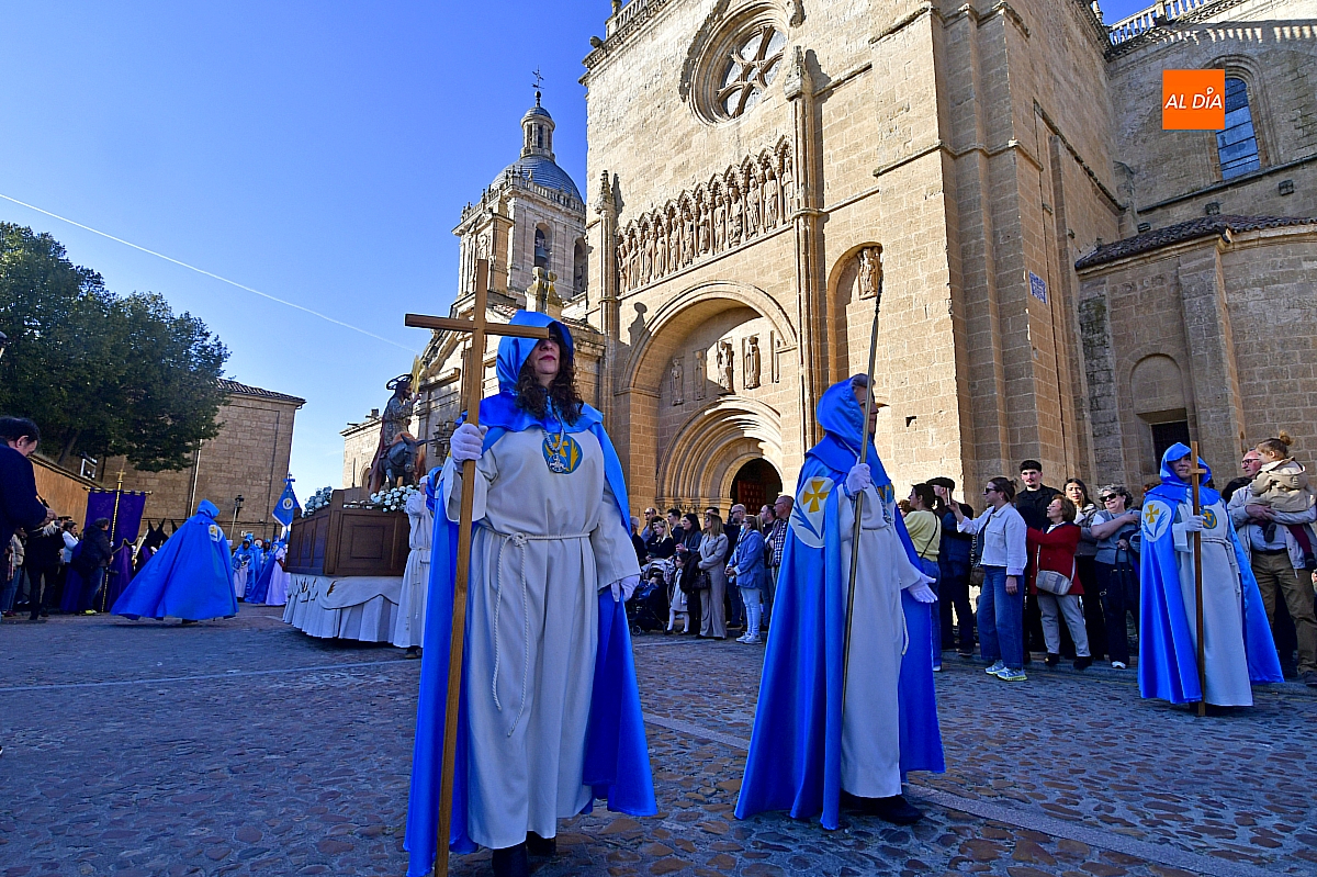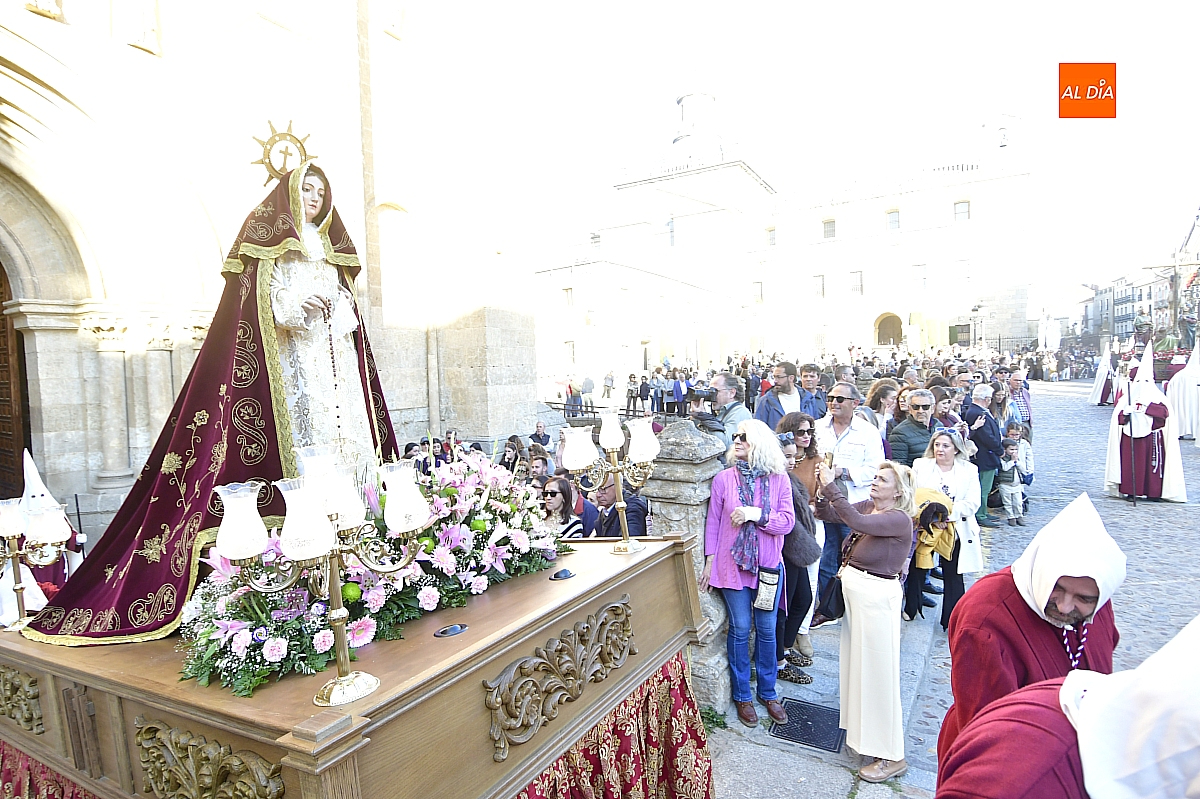 Un sol radiante y una temperatura especialmente agradable animaron a millares de personas a salir a las calles céntricas de Ciudad Rodrigo para contemplar la belleza de las imágenes y la cuidada puesta en escena de las siete cofradías, que partieron de forma conjunta y ordenada desde la S.I. Catedral de Santa María.