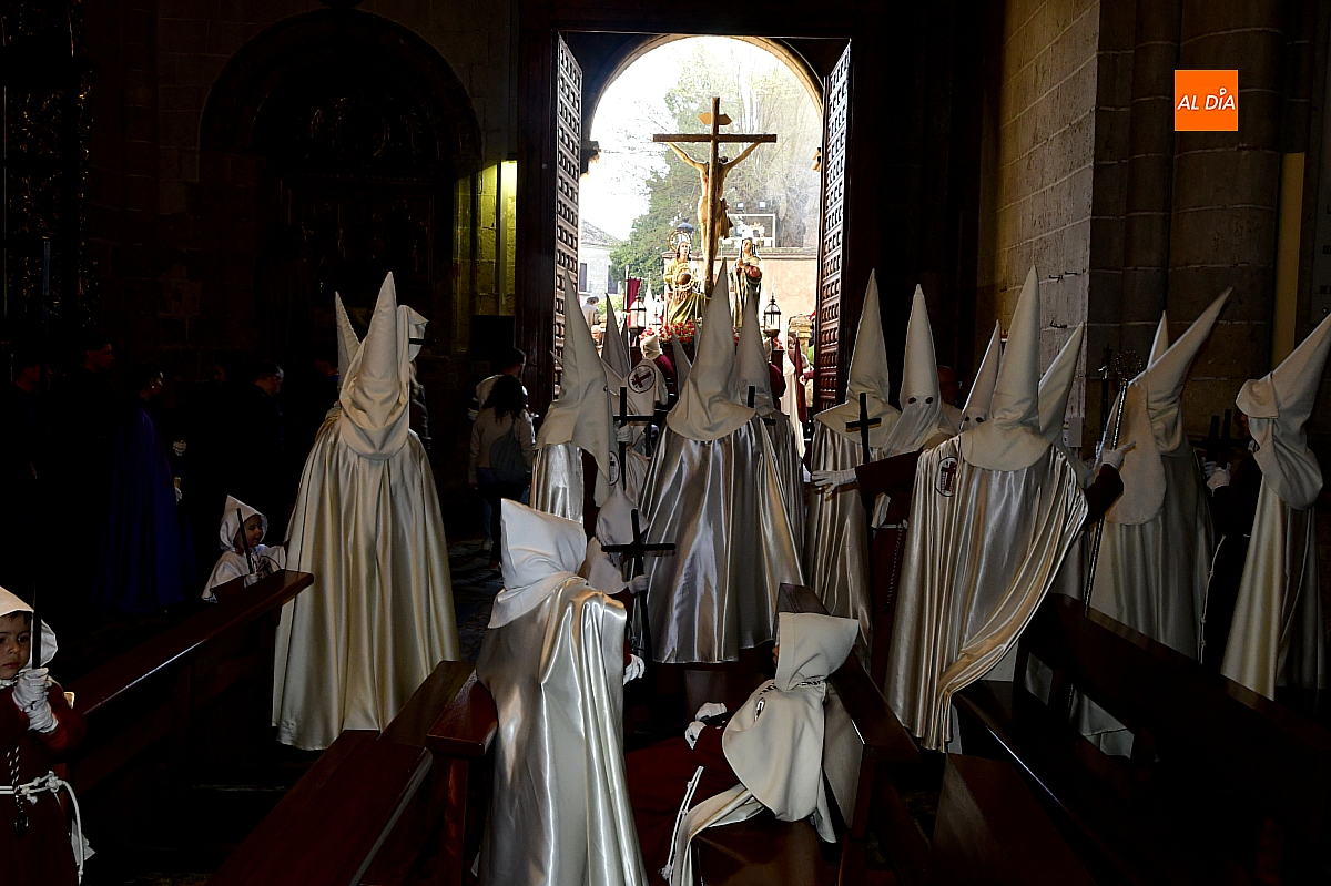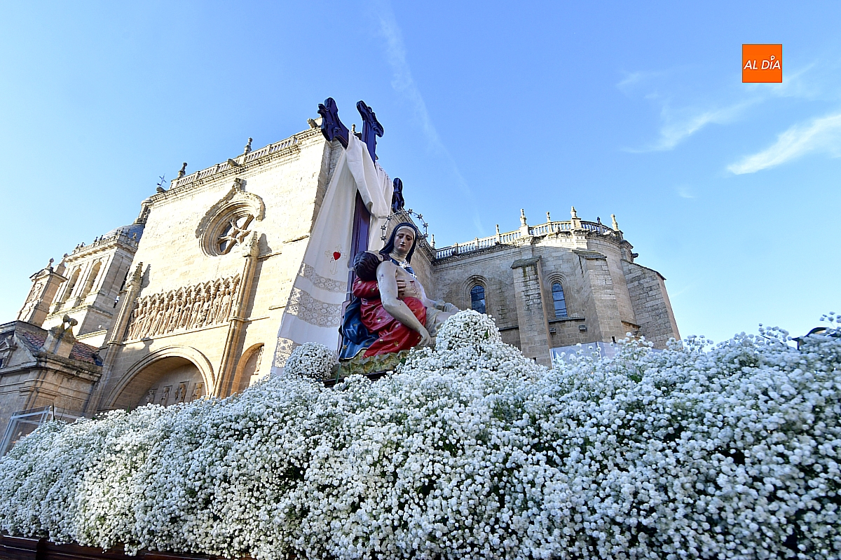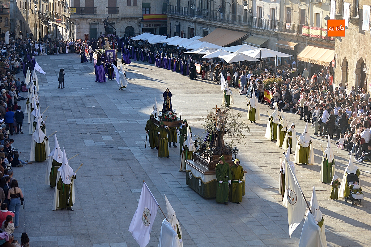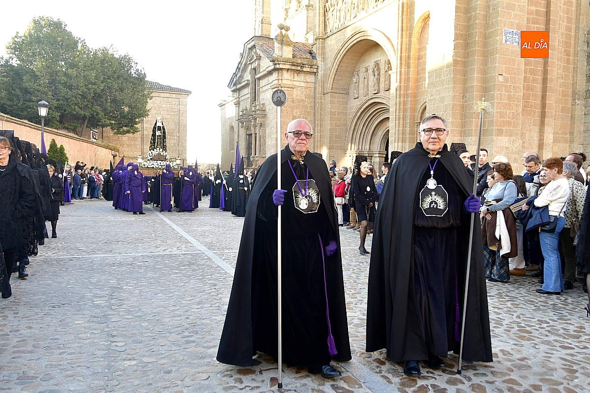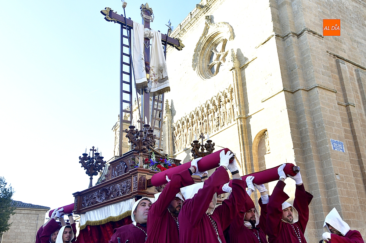 Un sol radiante y una temperatura especialmente agradable animaron a millares de personas a salir a las calles céntricas de Ciudad Rodrigo para contemplar la belleza de las imágenes y la cuidada puesta en escena de las siete cofradías, que partieron de forma conjunta y ordenada desde la S.I. Catedral de Santa María.