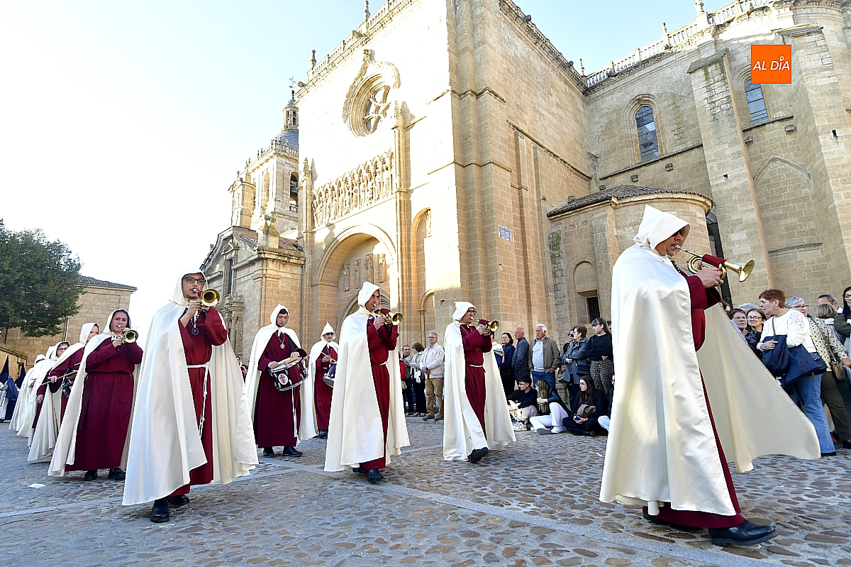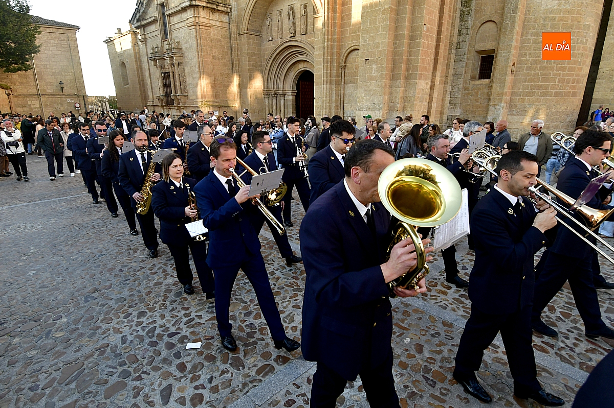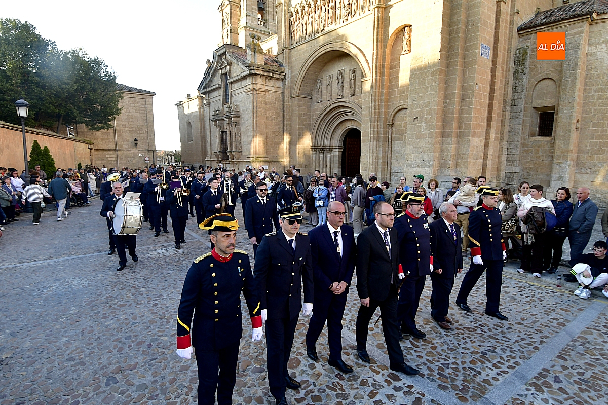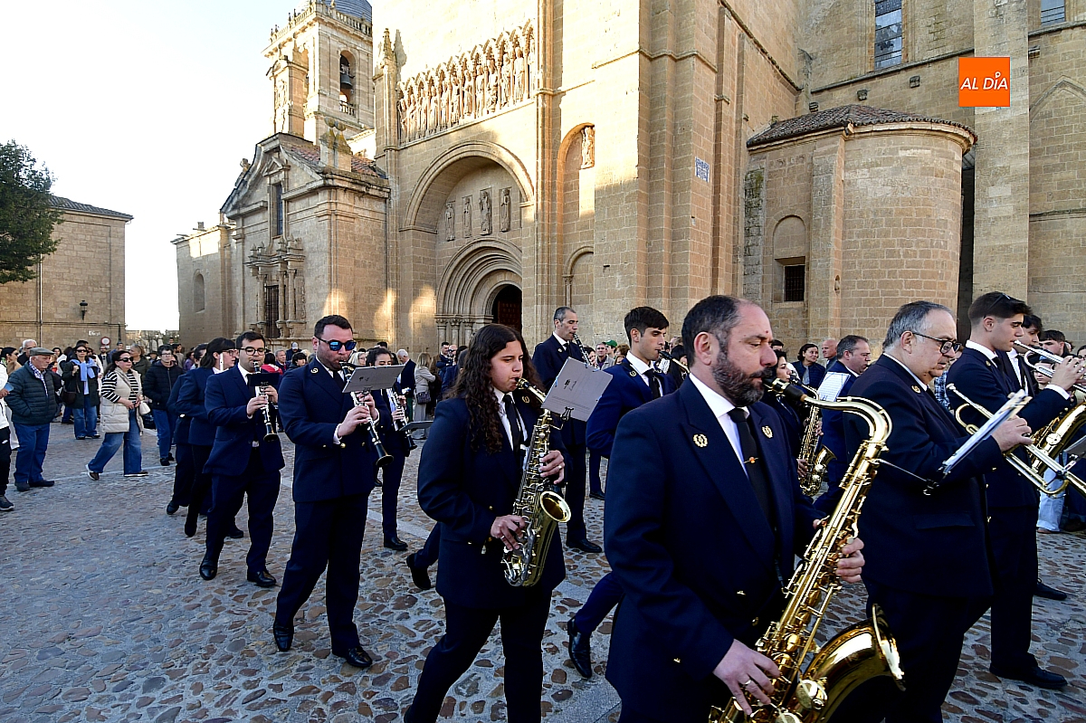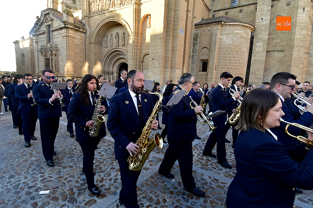 La Banda Municipal de Música puso el broche final a la larga comitiva, aportando la solemnidad propia de una de las procesiones más concurridas y representativas de la Semana Santa mirobrigense, conocida popularmente como "La Carrera".