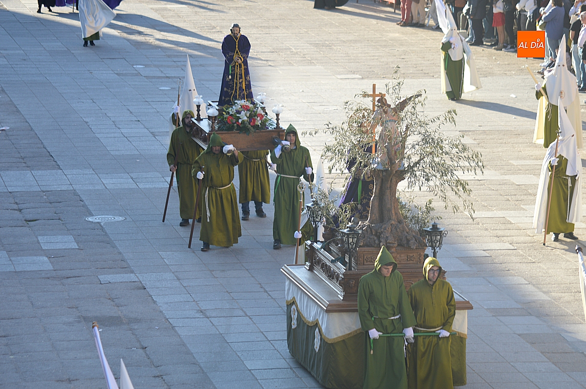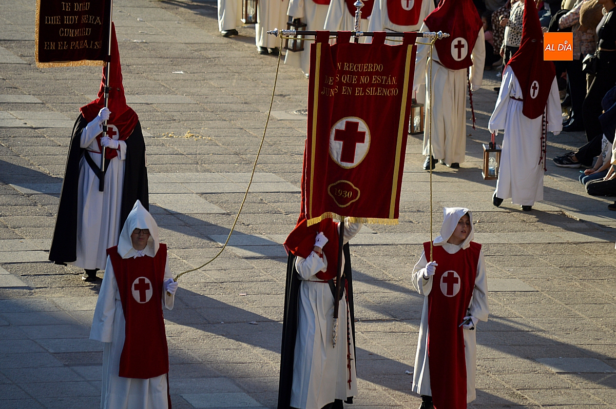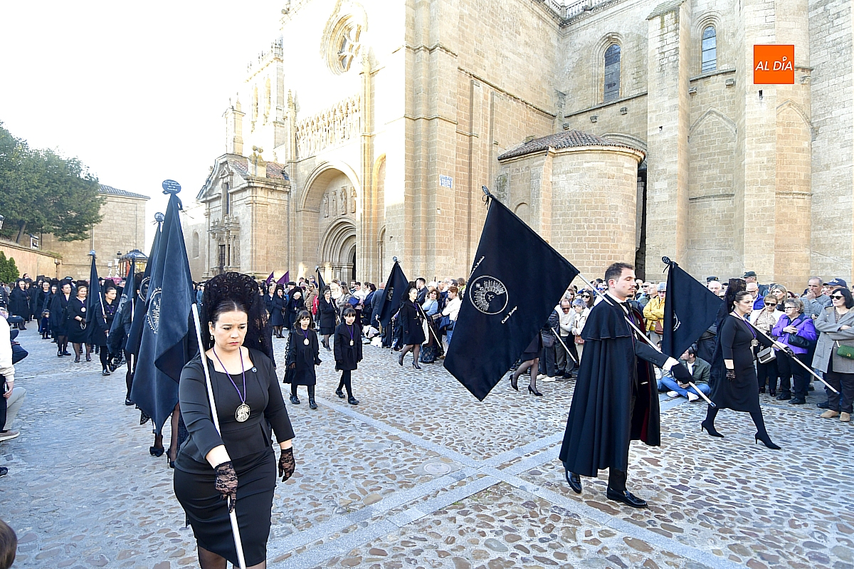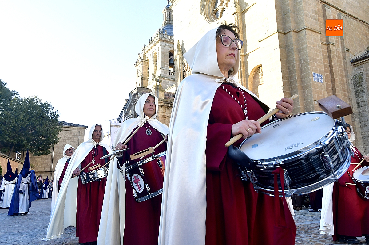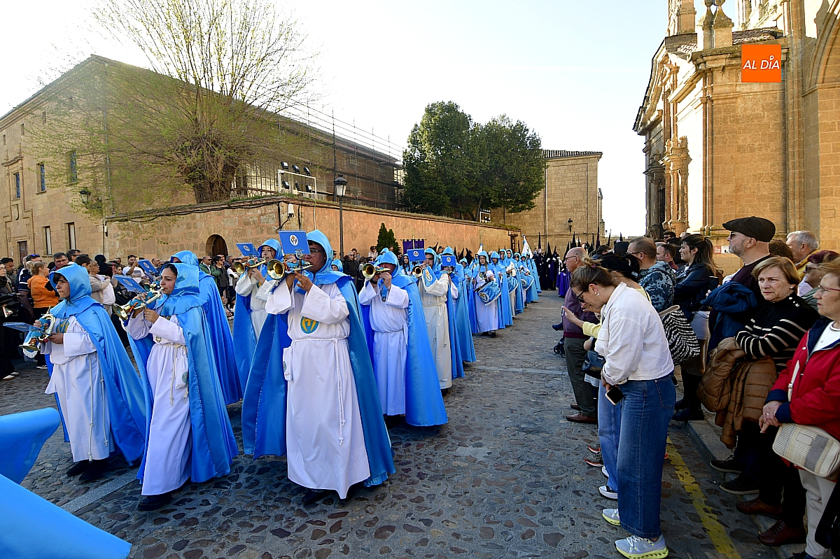 La Banda Municipal de Música puso el broche final a la larga comitiva, aportando la solemnidad propia de una de las procesiones más concurridas y representativas de la Semana Santa mirobrigense, conocida popularmente como "La Carrera".