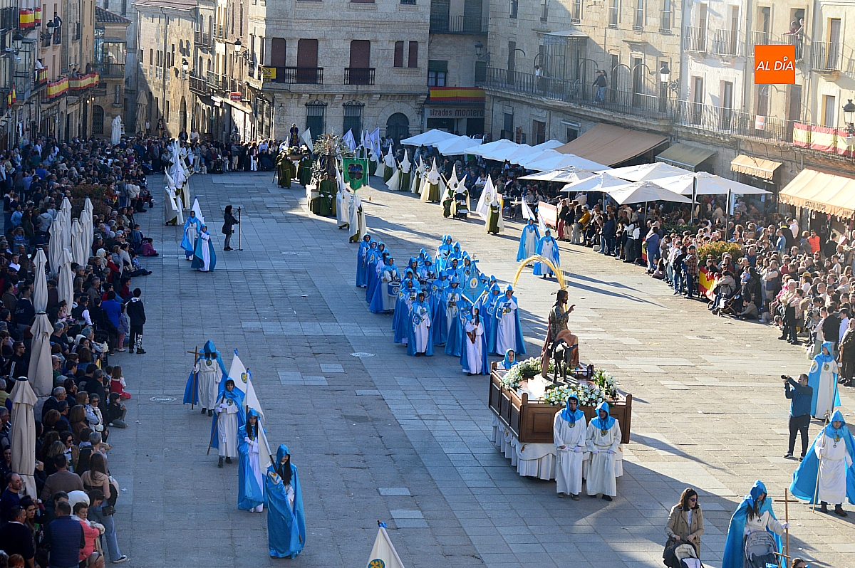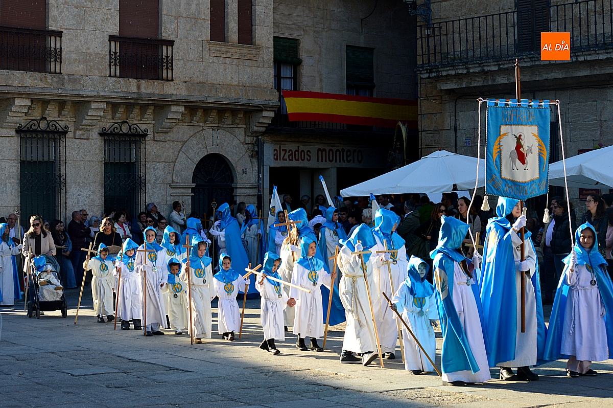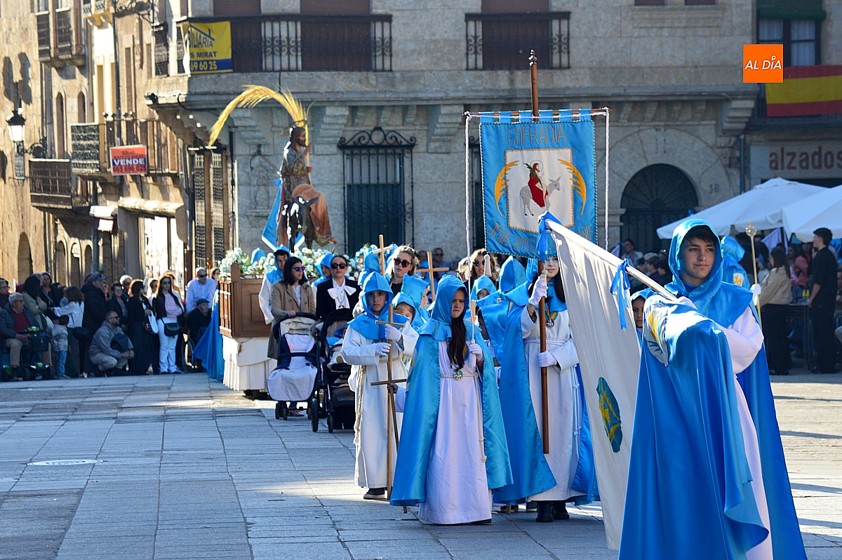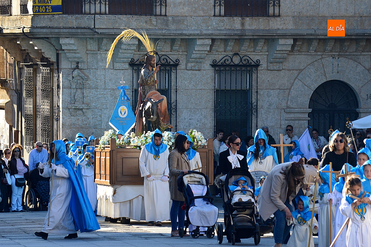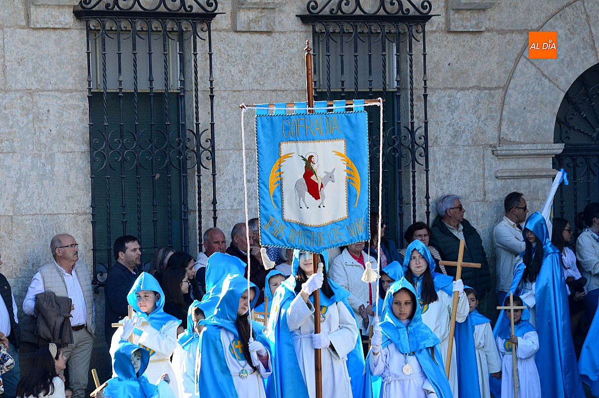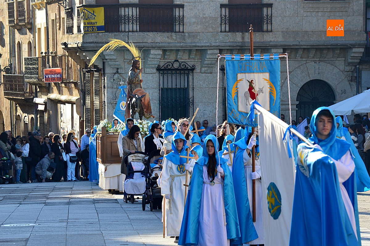 Abrió el desfile la Cofradía de Jesús Amigo de los Niños con la imagen de La Borriquilla, acompañada por su banda de música y los característicos trajes en azul y blanco. Su cometido fue, además de iniciar la procesión, ordenar al público y delimitar el espacio por el que discurriría el conjunto de cofradías, siguiendo el relato de los evangelios.