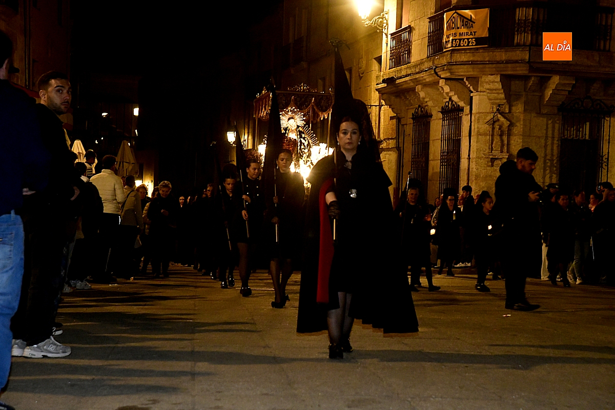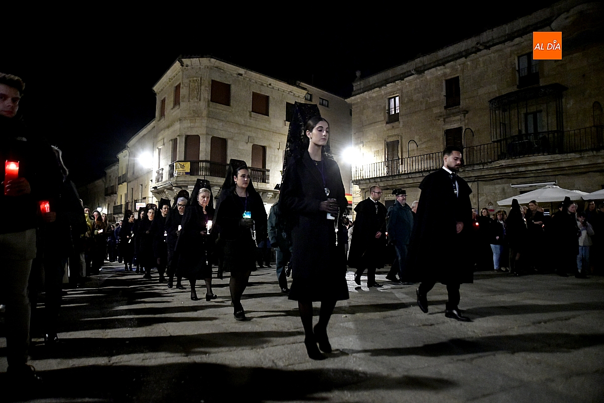 Tras la notable afluencia registrada horas antes en la procesión del Santo Entierro —en la que participaron las siete cofradías de la ciudad con trece pasos en la calle—, llegaba el turno de la imagen de La Soledad. La hermandad de Ntra. Sra. de la Soledad, que había portado previamente el Santo Sepulcro con el Cristo Yacente en su interior, volvía a cobrar protagonismo en una cita de marcado carácter recogido.