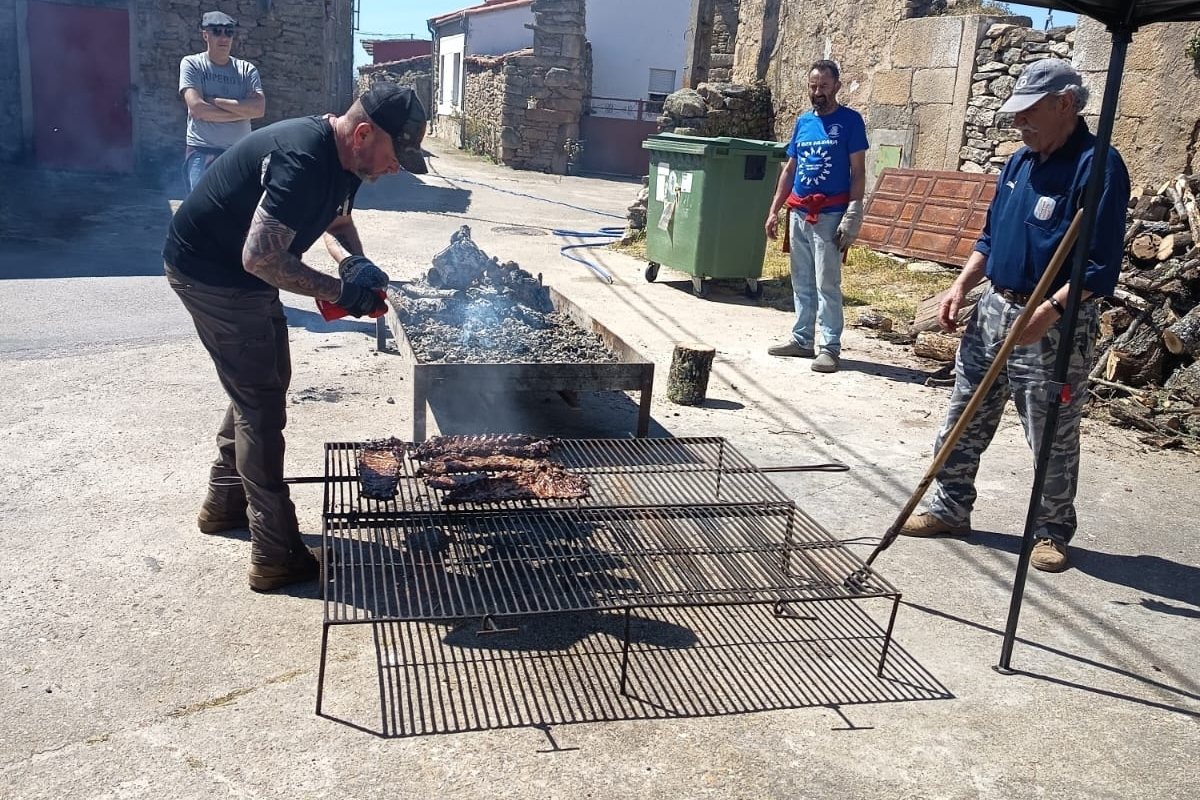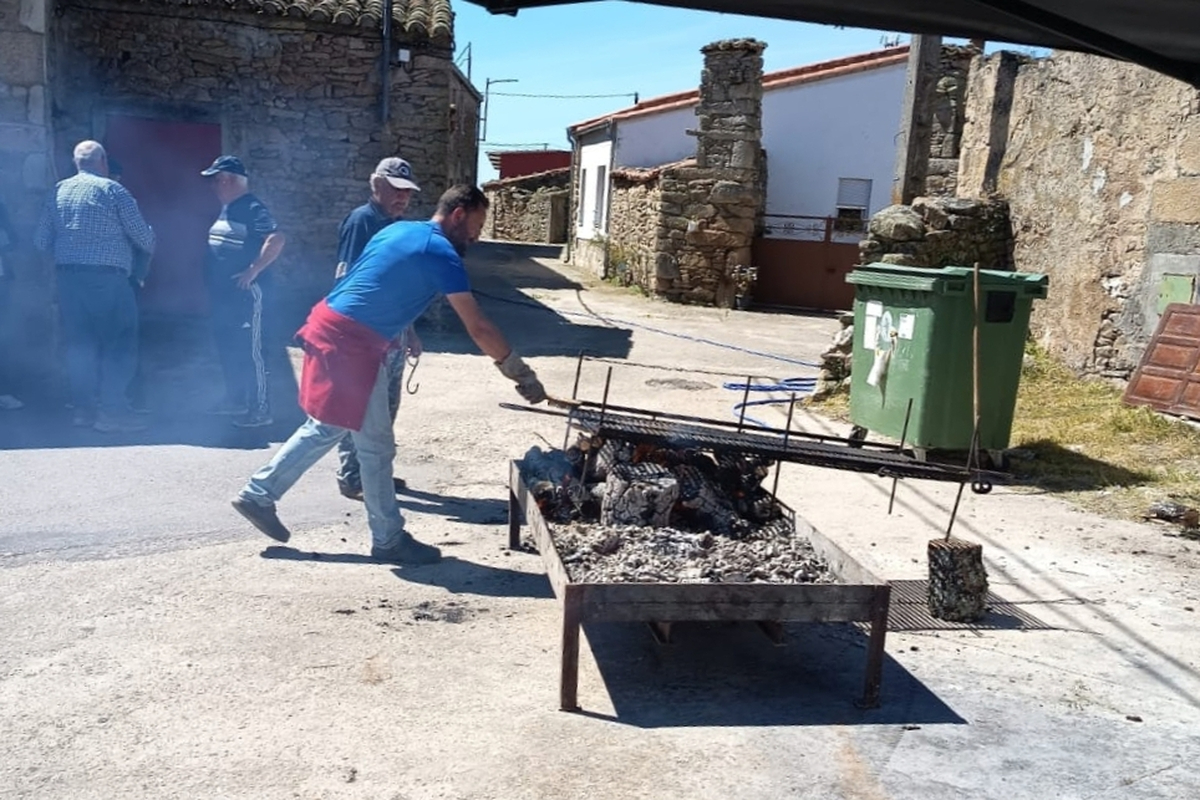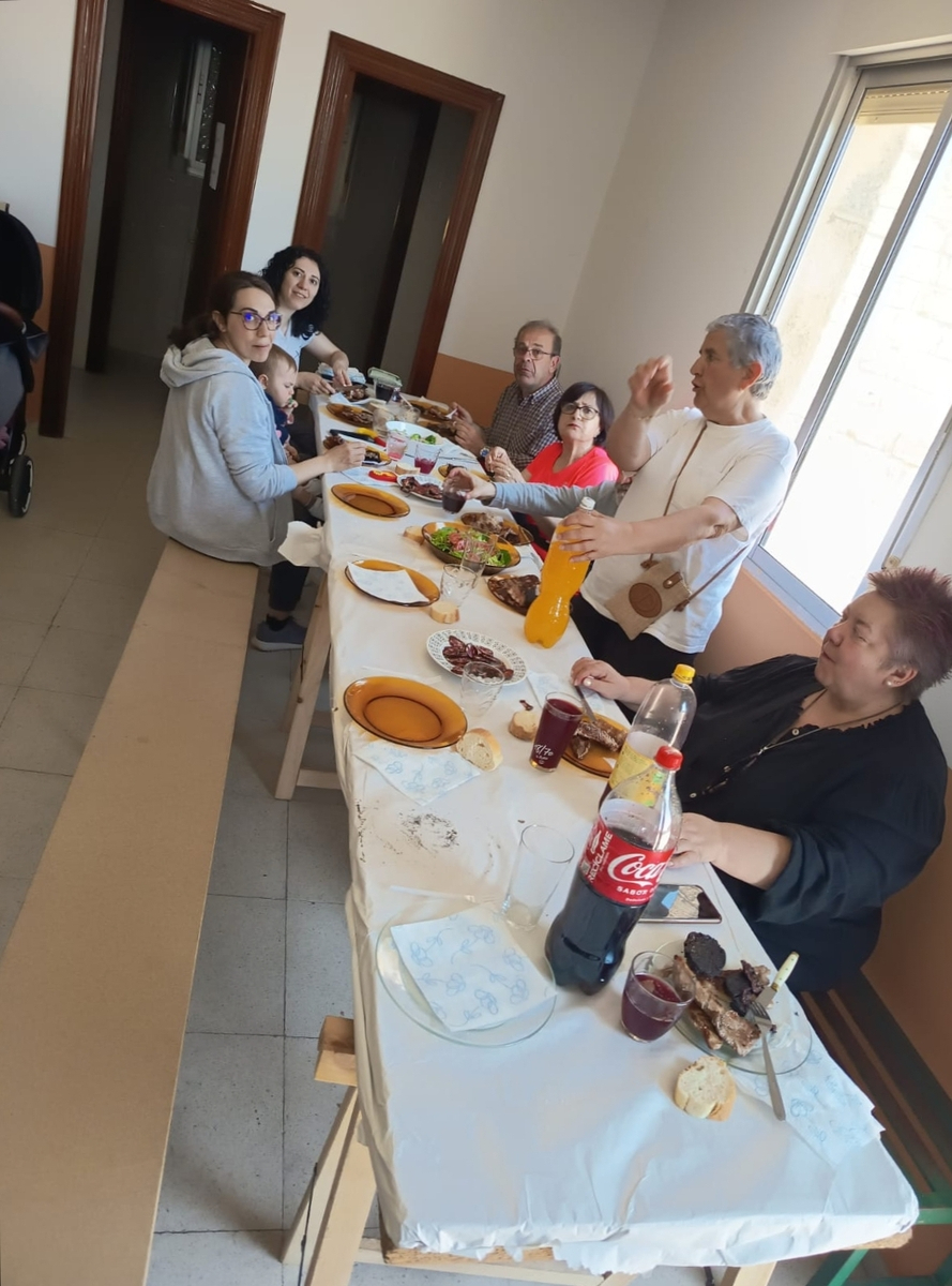 El buen tiempo ha acompañado este sábado, 4 de abril, a los habitantes de Peralejos de Arriba en una nueva iniciativa de hermandad. Alrededor de 50 personas se han dado cita al mediodía para disfrutar de una comida popular organizada por los propios vecinos. Residentes y visitantes han compartido las carnes de la matanza de diciembre y conservadas durante el invierno, en un evento que ha combinado tradición, juegos de mesa y colaboración vecinal hasta la noche.