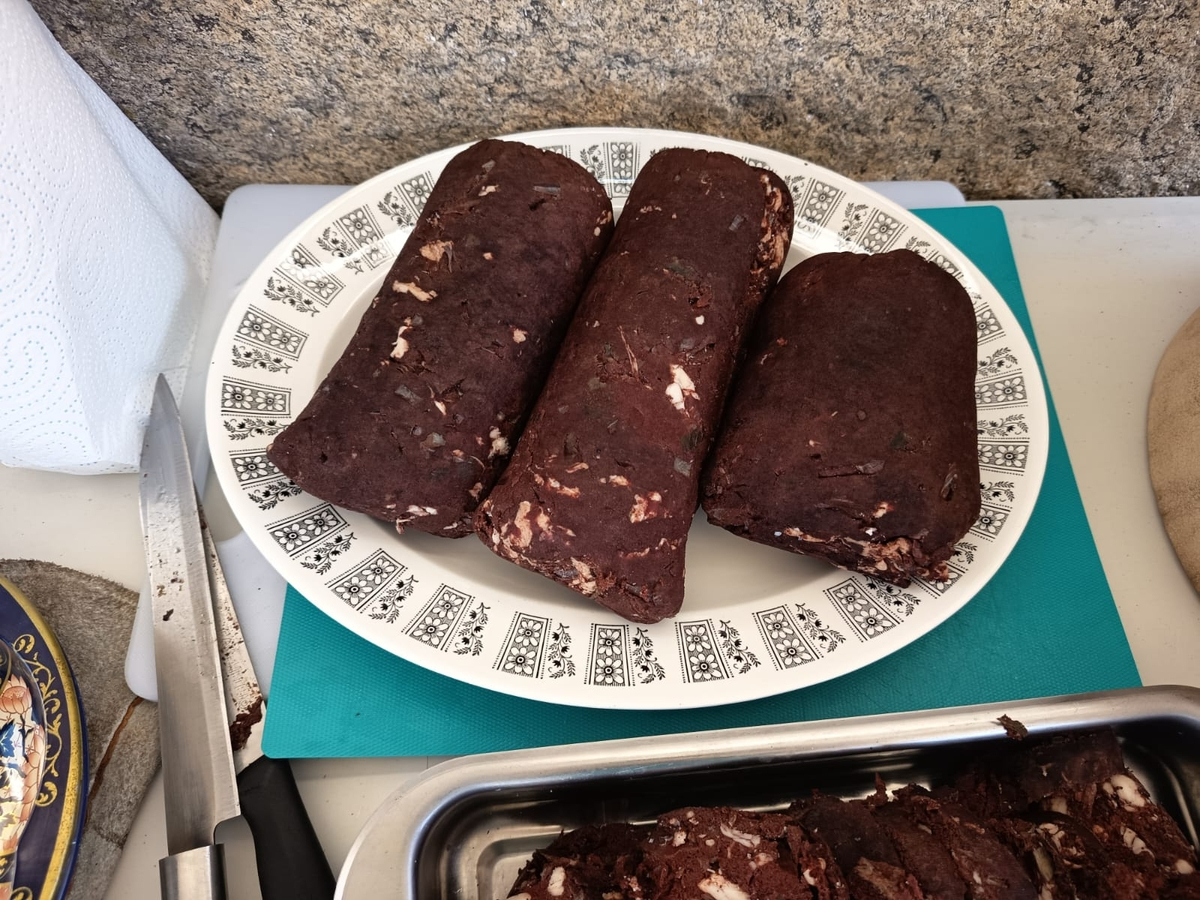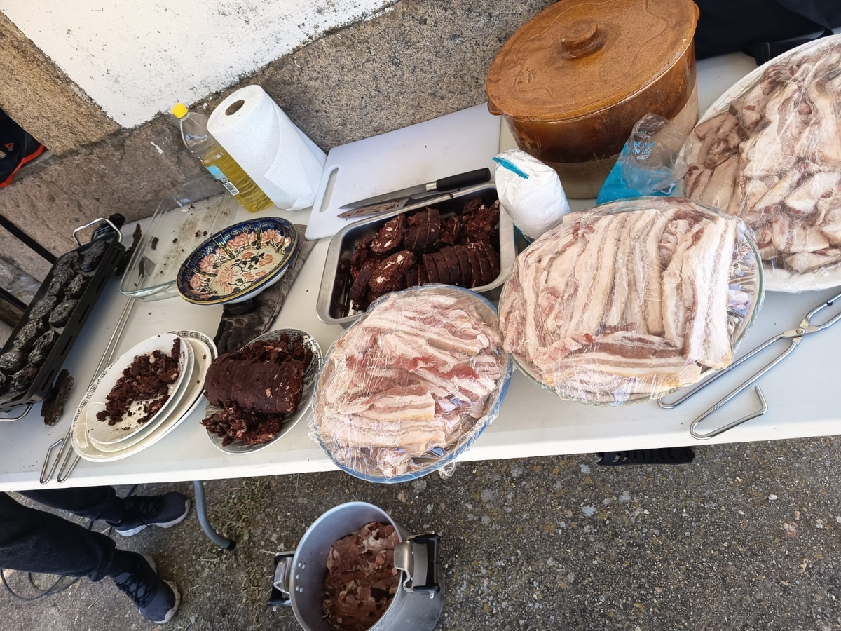 Sobre la mesa se han servido diferentes cortes como filetes, panceta y costilla. Además, el banquete ha incluido las morcillas elaboradas con la sangre del animal y los diversos embutidos curados de forma artesanal en el propio pueblo durante los últimos meses de invierno.