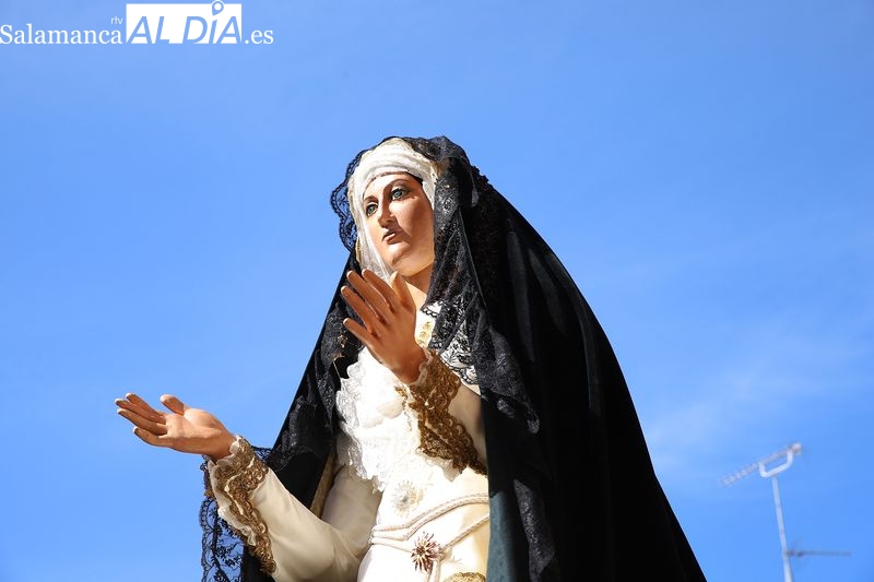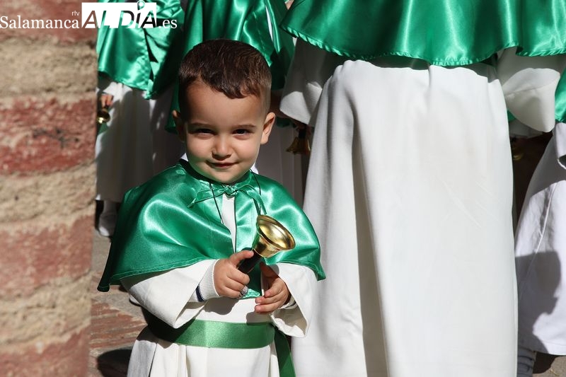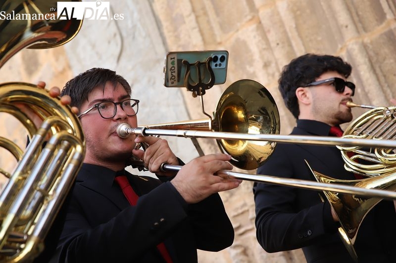 El colorido de las vestimentas de los cofrades y el ambiente festivo sustituyeron al recogimiento del Viernes Santo. La música jugó un papel fundamental durante toda la jornada, siendo la formación salmantina "Enarmonía Brass Quintet" la encargada de poner la banda sonora a los desfiles procesionales con marchas llenas de vitalidad.