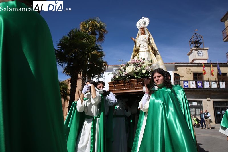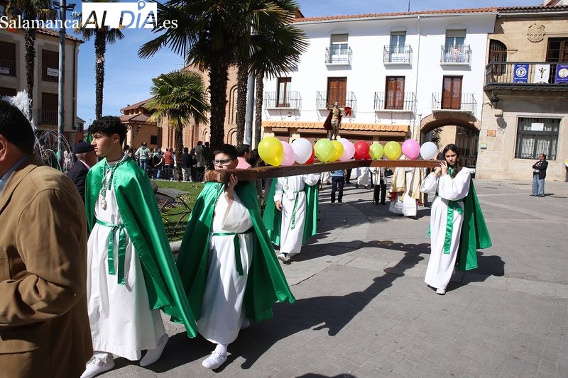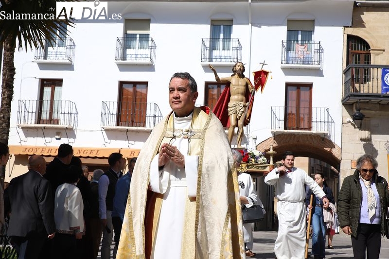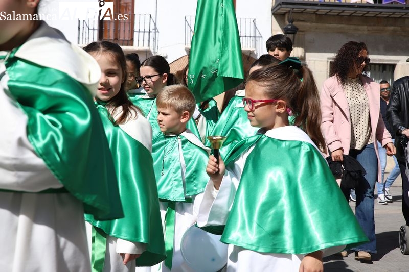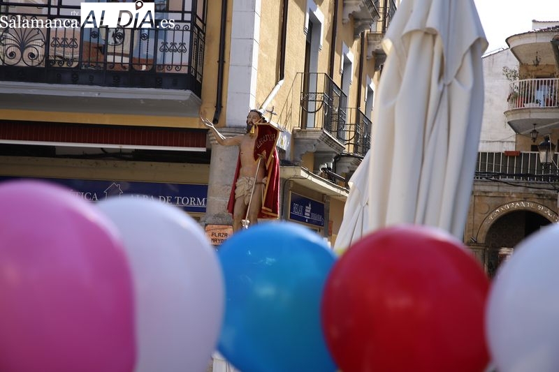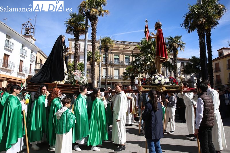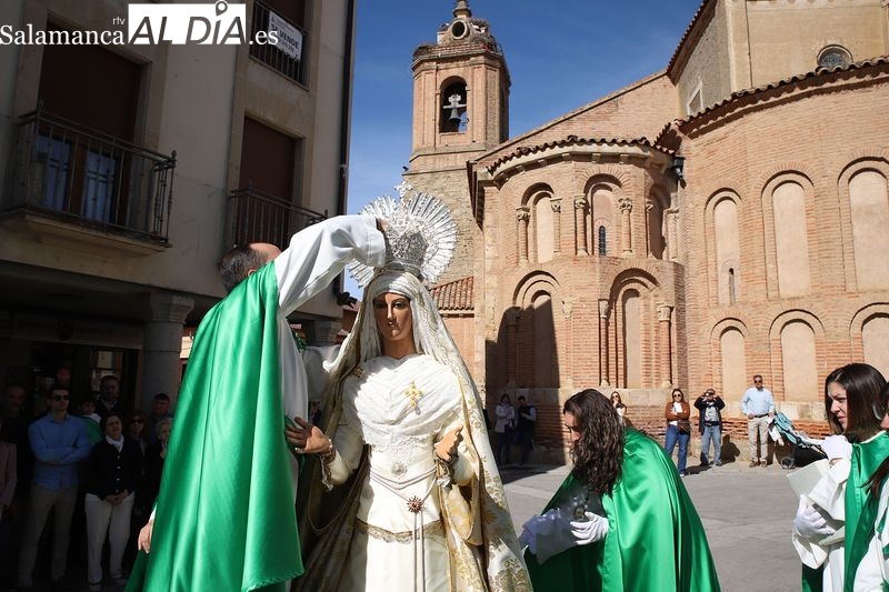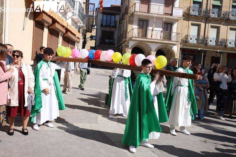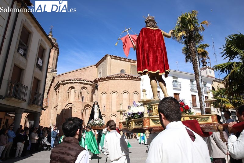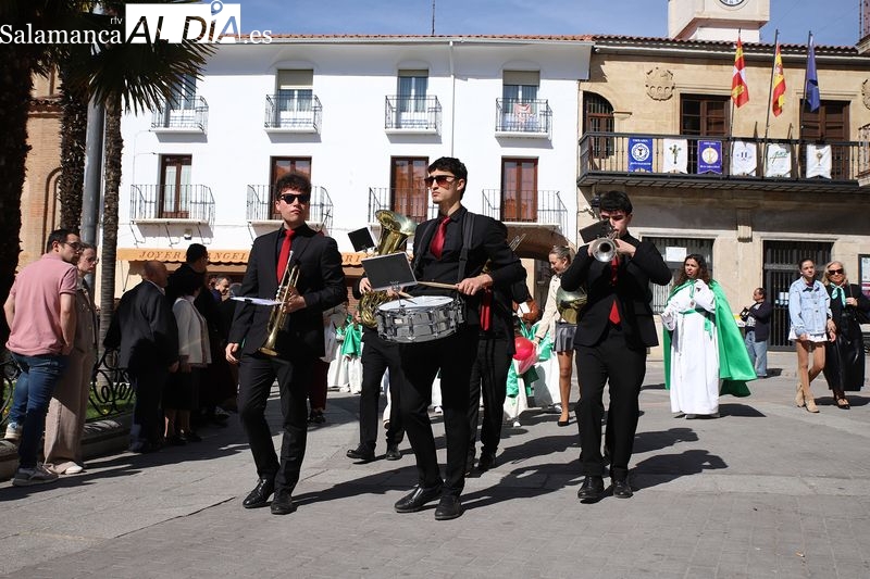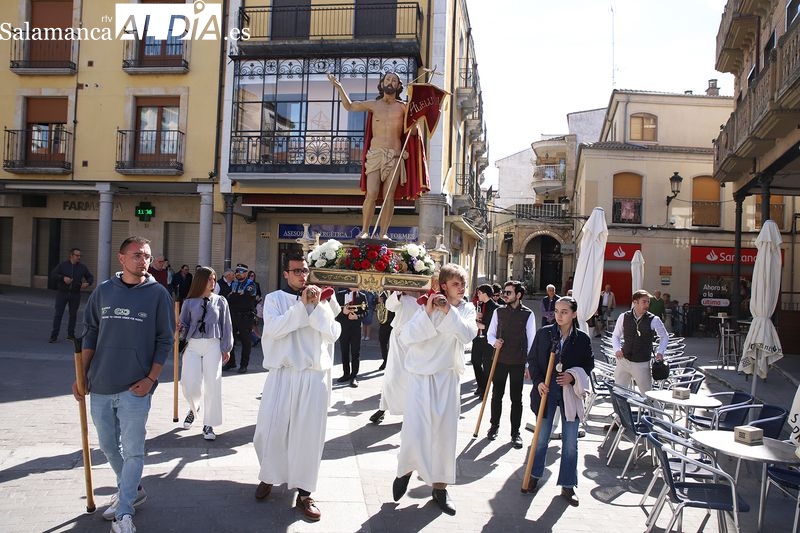 La jornada festiva de este 5 de abril arrancó con uno de los momentos más esperados por los fieles de la localidad. La Plaza Mayor de Alba de Tormes se convirtió en el escenario principal donde confluyeron la devoción y la tradición para celebrar la Pascua de Resurrección, dejando atrás la sobriedad de los días previos.