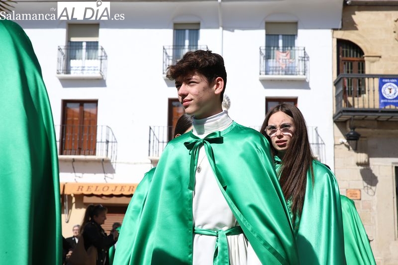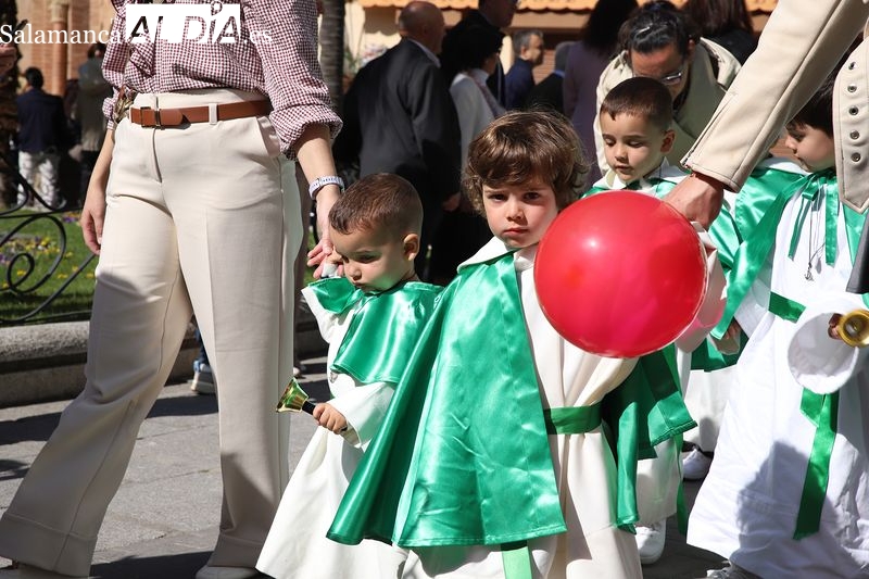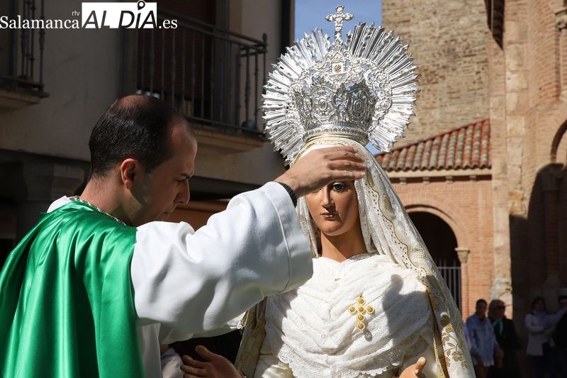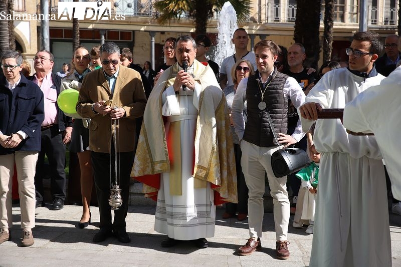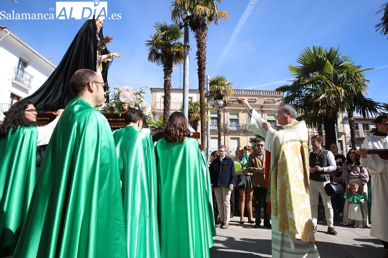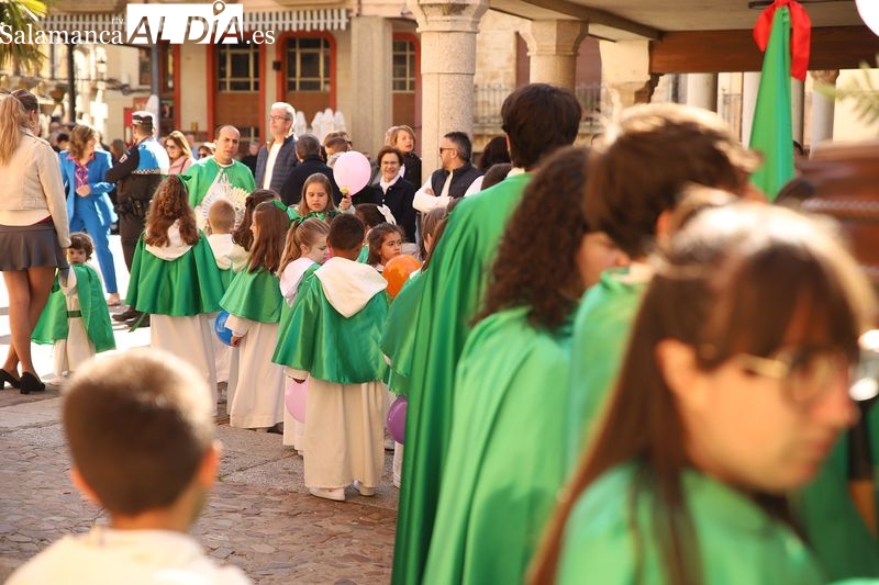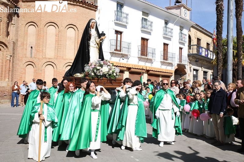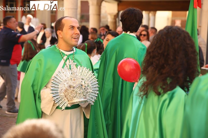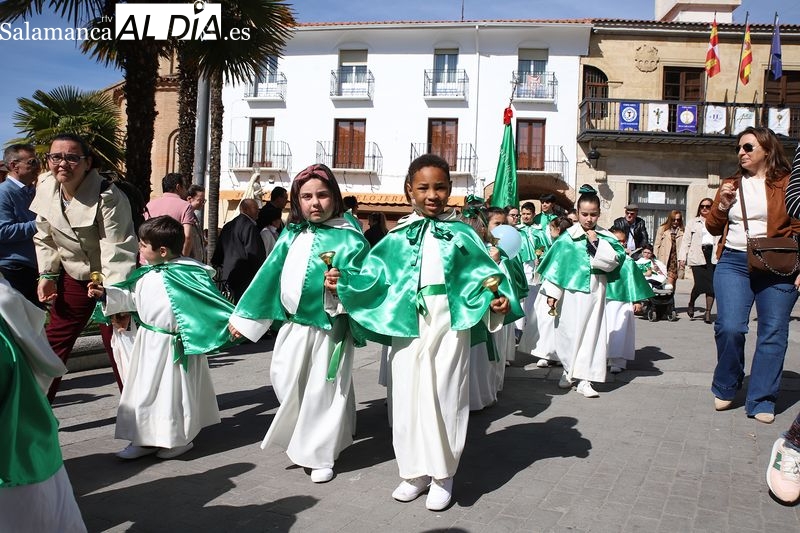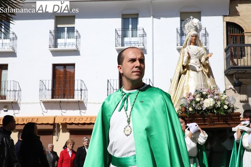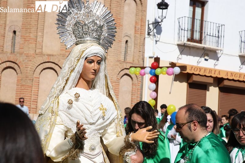 La jornada festiva de este 5 de abril arrancó con uno de los momentos más esperados por los fieles de la localidad. La Plaza Mayor de Alba de Tormes se convirtió en el escenario principal donde confluyeron la devoción y la tradición para celebrar la Pascua de Resurrección, dejando atrás la sobriedad de los días previos.