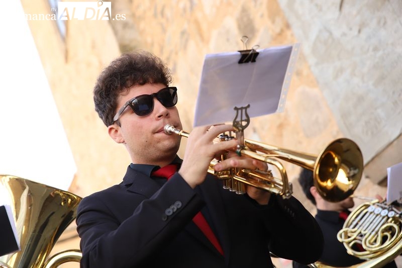 El colorido de las vestimentas de los cofrades y el ambiente festivo sustituyeron al recogimiento del Viernes Santo. La música jugó un papel fundamental durante toda la jornada, siendo la formación salmantina "Enarmonía Brass Quintet" la encargada de poner la banda sonora a los desfiles procesionales con marchas llenas de vitalidad.