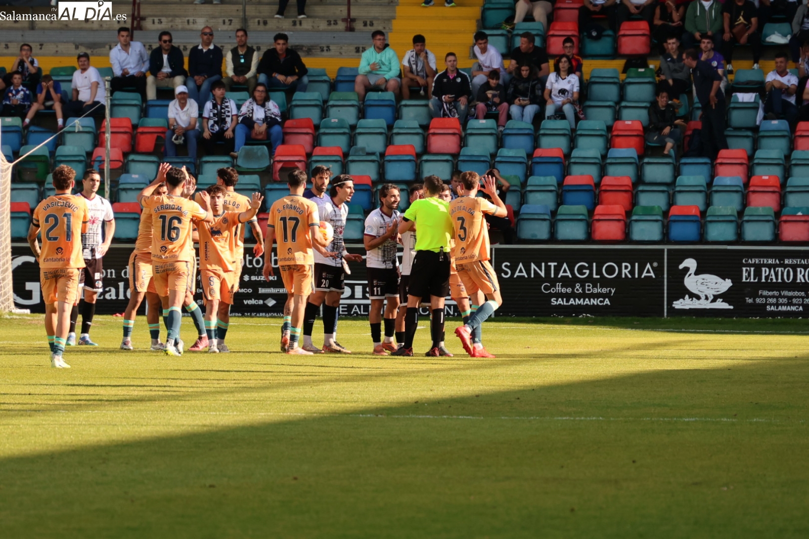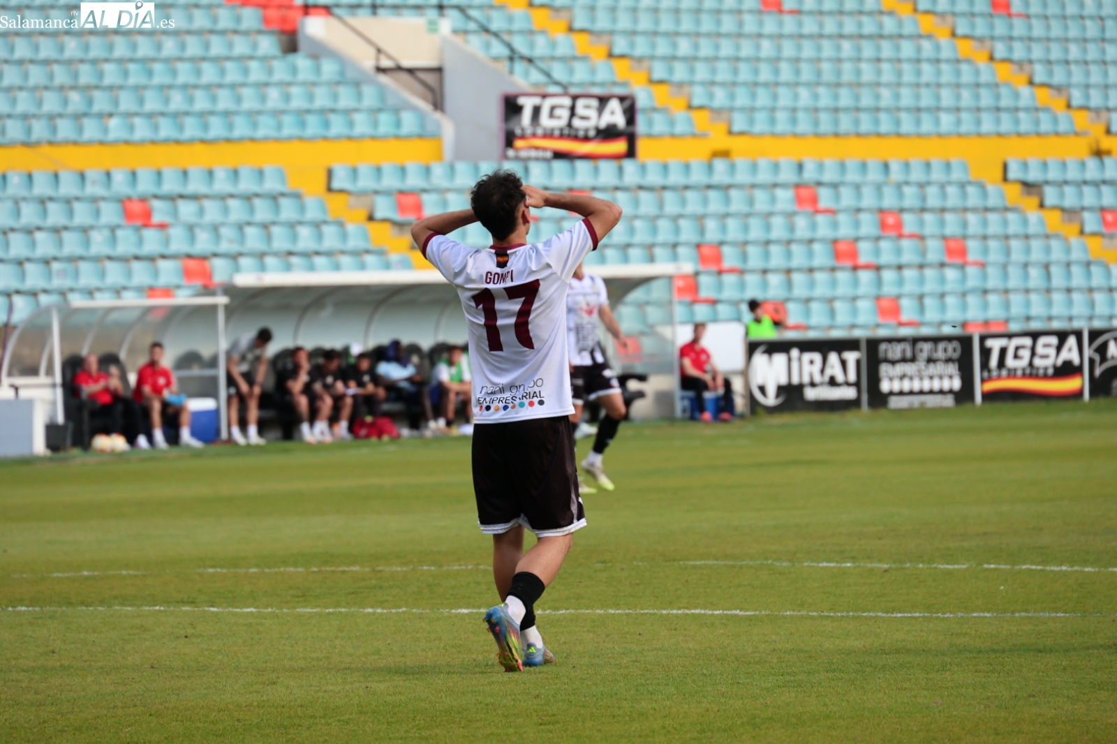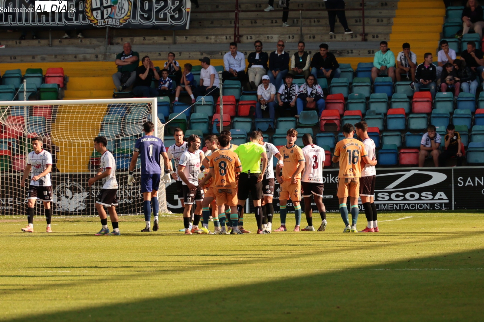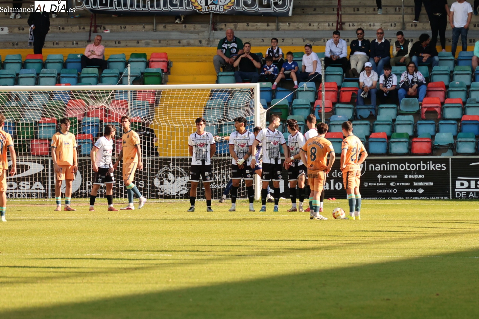 En lo que al encuentro se refiere, el Salamanca UDS ha gozado de ocasiones en el primer tiempo para adelantarse, especialmente por un Gonpi que ha sido otra de las novedades en el 4-2-3-1 -fin total al experimento fallido de los dos puntas-, pero se ha ido perdiendo al descanso en la última jugada. Mascaró ha rematado al larguero, Jon se ha dormido y Pau ha centrado para que García marcase a placer. Y ha habido polémica porque el balón podría haber salido del verde antes de la asistencia que ha dado pie al 0-1. Pitos de la gente como despedida. Normal.
