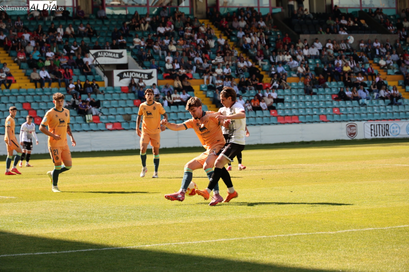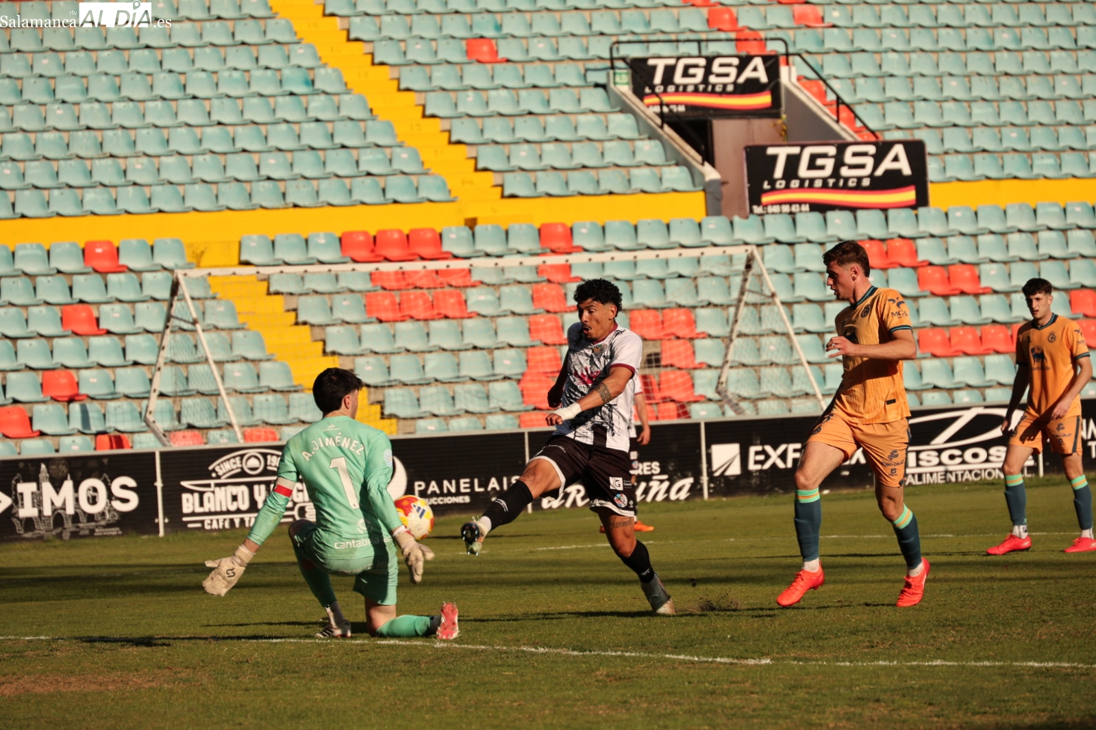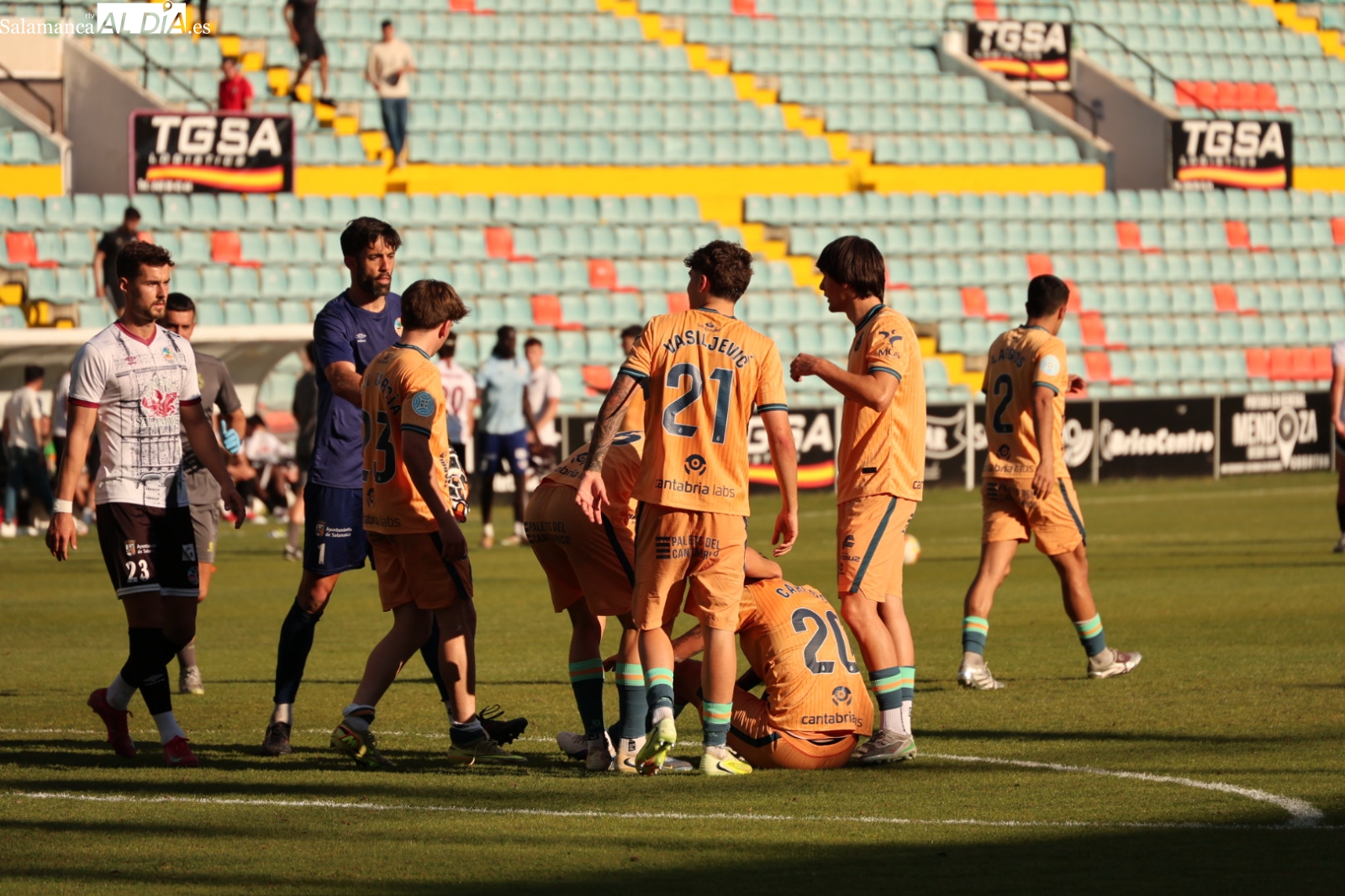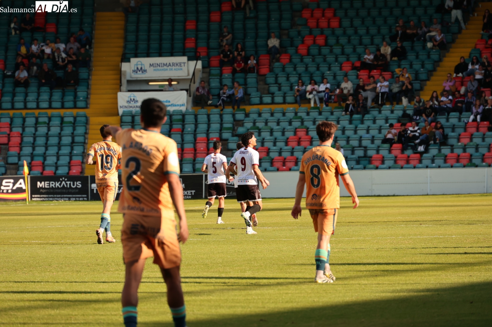 En lo que al encuentro se refiere, el Salamanca UDS ha gozado de ocasiones en el primer tiempo para adelantarse, especialmente por un Gonpi que ha sido otra de las novedades en el 4-2-3-1 -fin total al experimento fallido de los dos puntas-, pero se ha ido perdiendo al descanso en la última jugada. Mascaró ha rematado al larguero, Jon se ha dormido y Pau ha centrado para que García marcase a placer. Y ha habido polémica porque el balón podría haber salido del verde antes de la asistencia que ha dado pie al 0-1. Pitos de la gente como despedida. Normal.