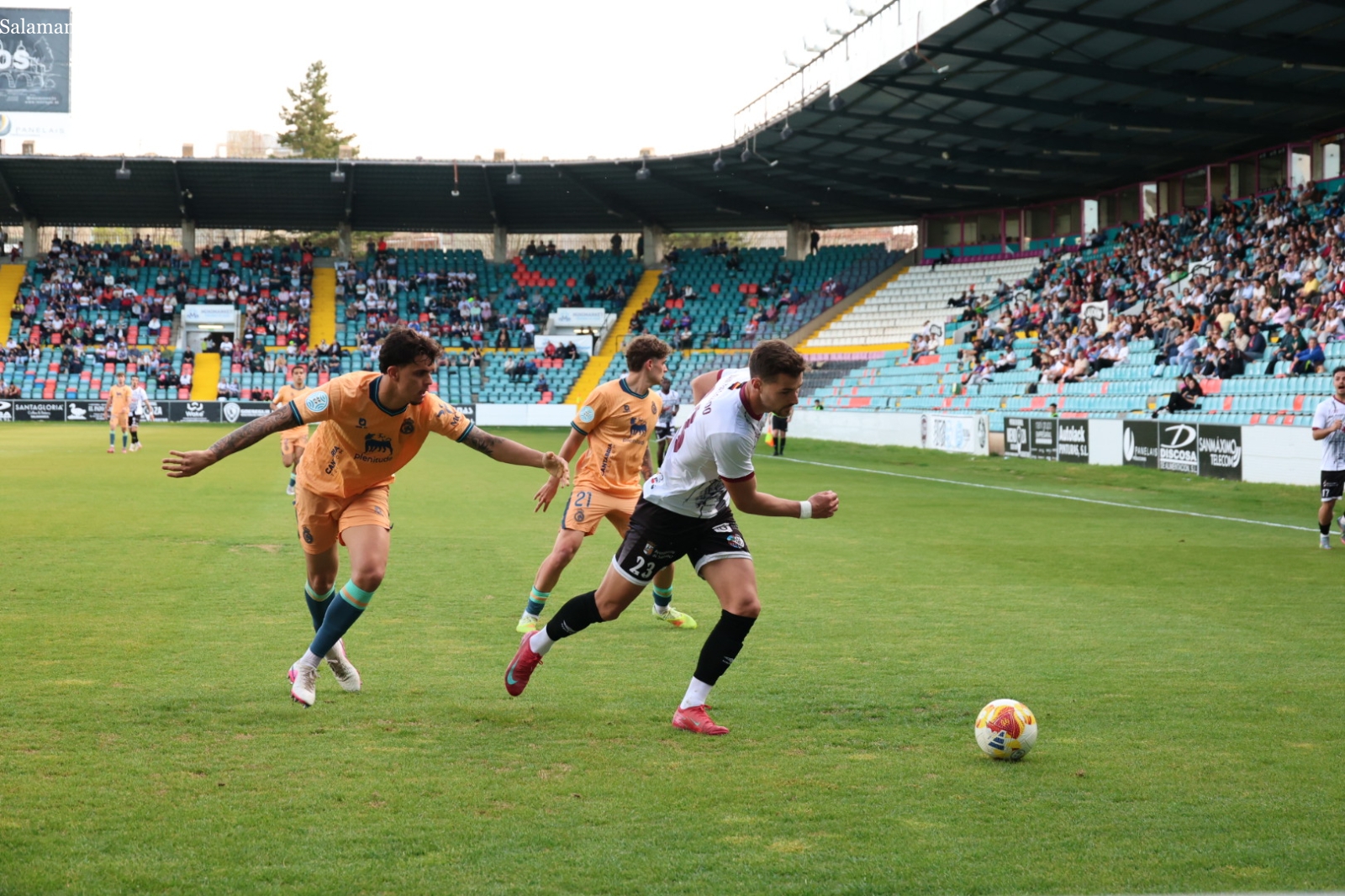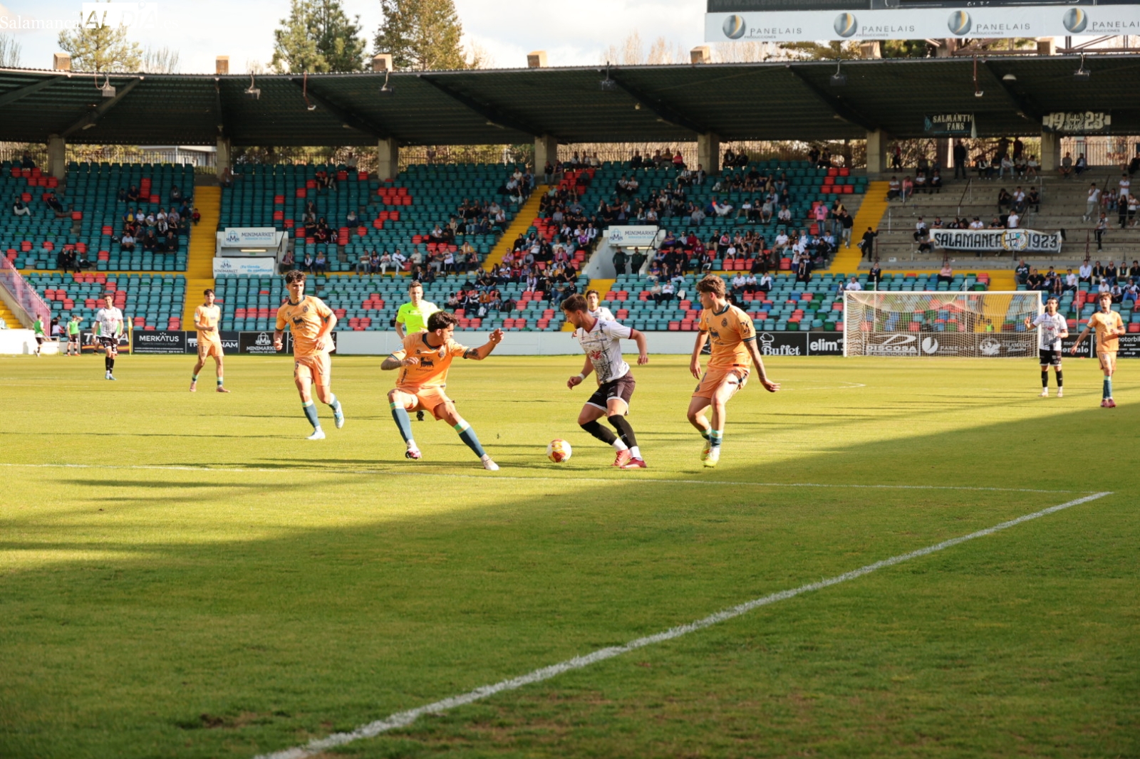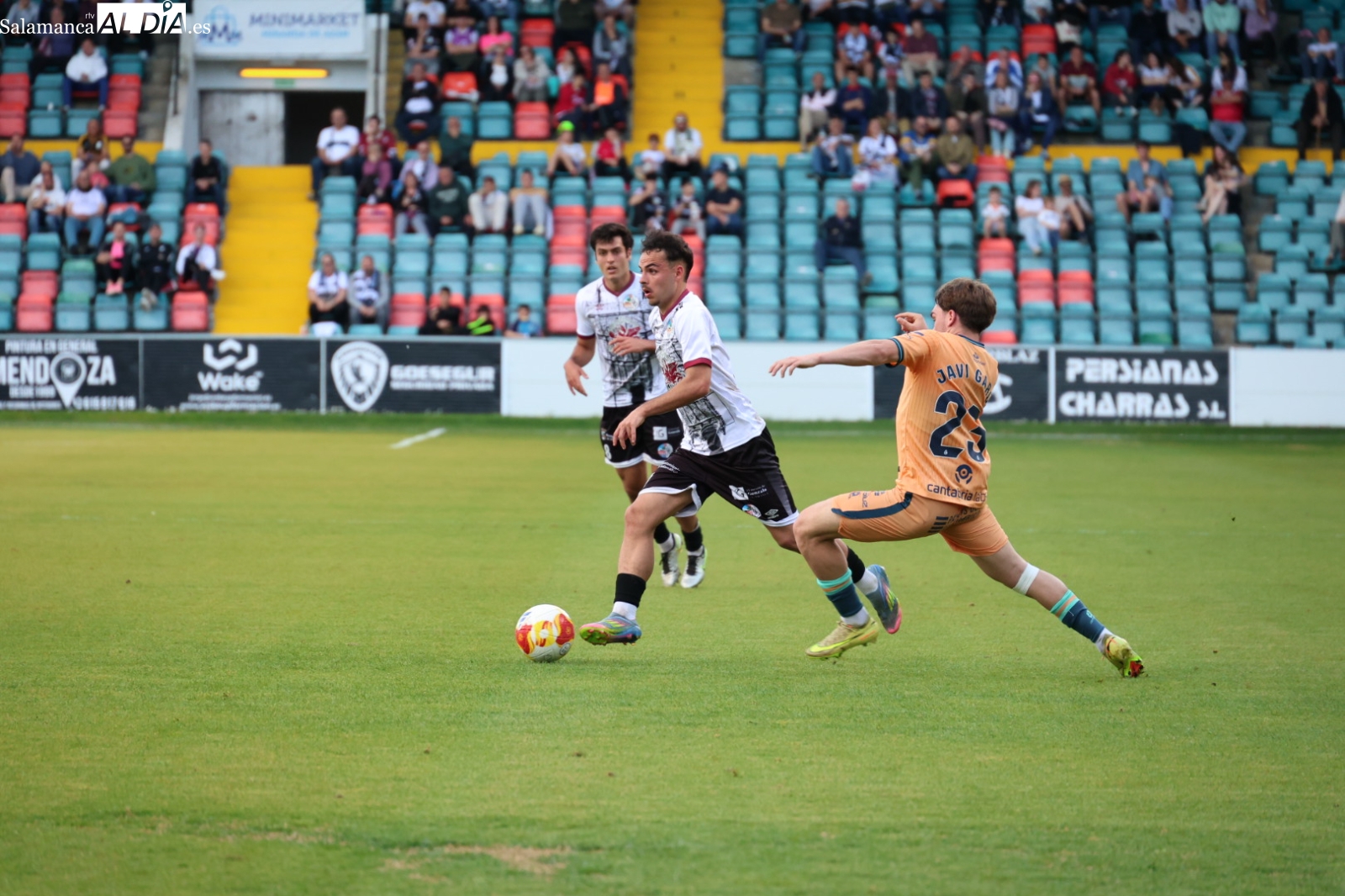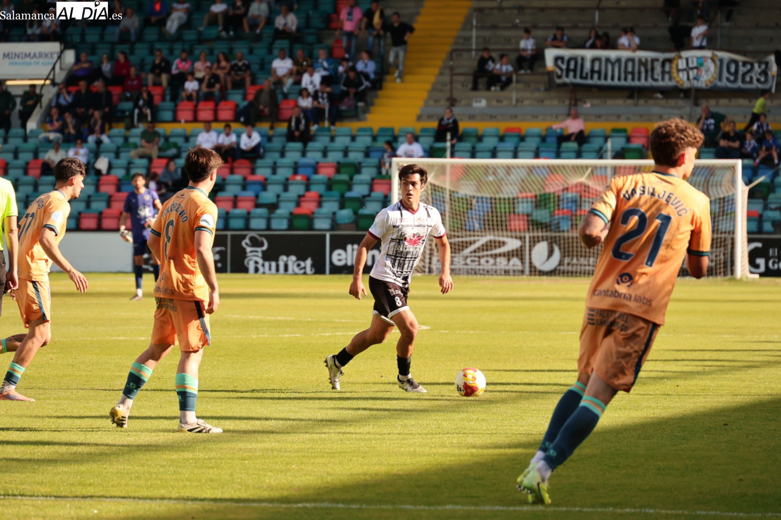 En lo que al encuentro se refiere, el Salamanca UDS ha gozado de ocasiones en el primer tiempo para adelantarse, especialmente por un Gonpi que ha sido otra de las novedades en el 4-2-3-1 -fin total al experimento fallido de los dos puntas-, pero se ha ido perdiendo al descanso en la última jugada. Mascaró ha rematado al larguero, Jon se ha dormido y Pau ha centrado para que García marcase a placer. Y ha habido polémica porque el balón podría haber salido del verde antes de la asistencia que ha dado pie al 0-1. Pitos de la gente como despedida. Normal.