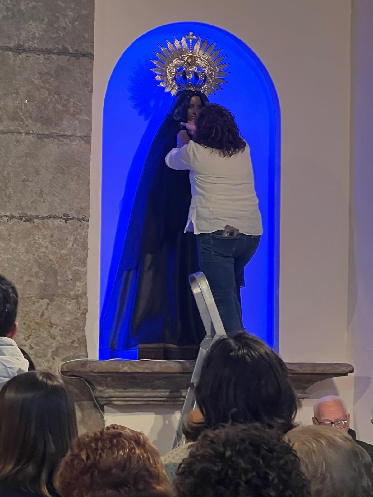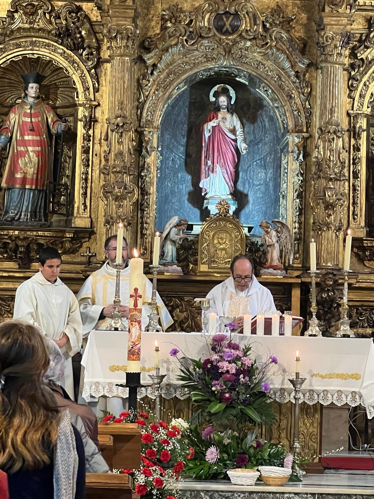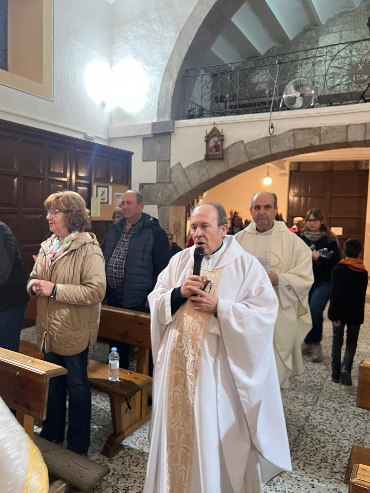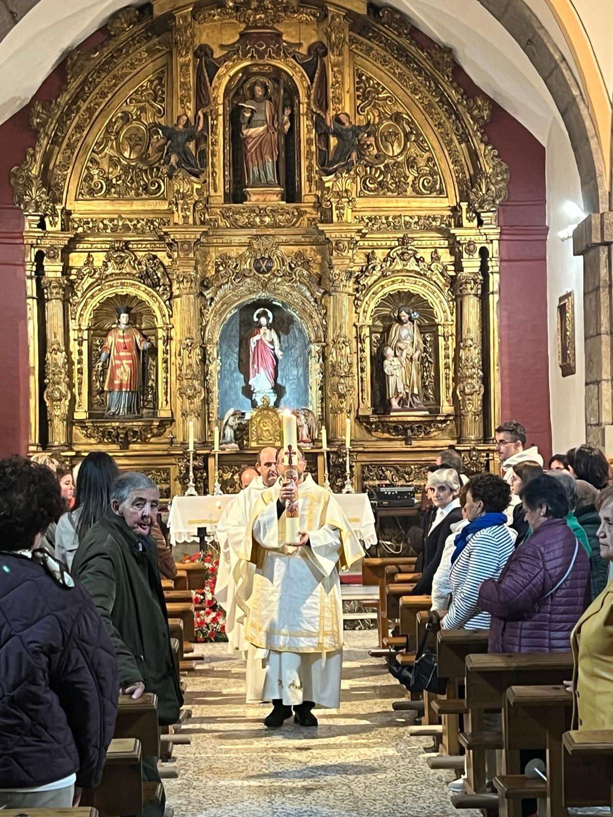 Tras la liturgia de la palabra, la celebración continuó con la bendición del agua bendita. Este año, el rito se ha llevado a cabo en el baptisterio de la parroquia, un espacio que destaca por su valor tradicional y arquitectónico dentro del recinto religioso.