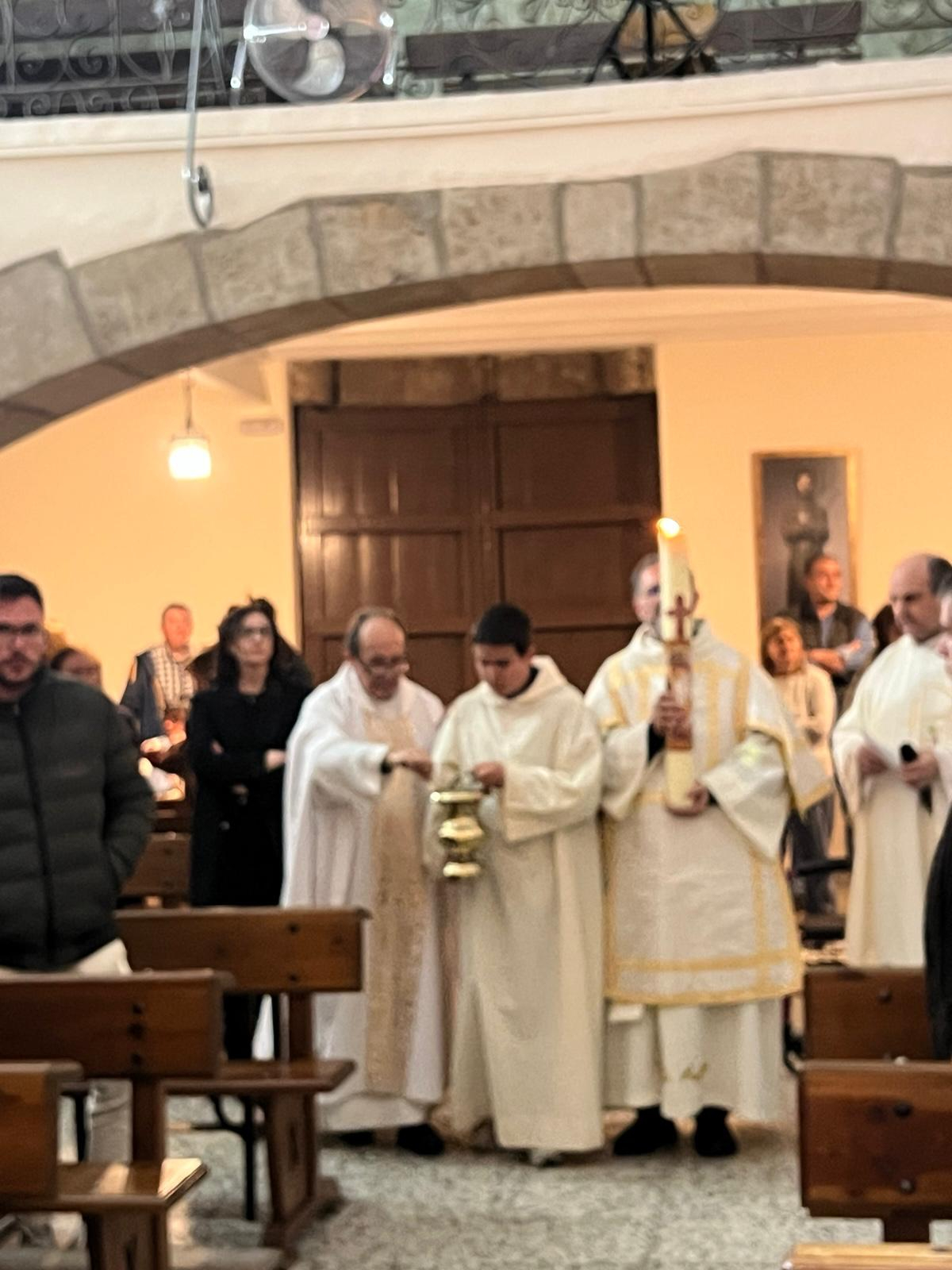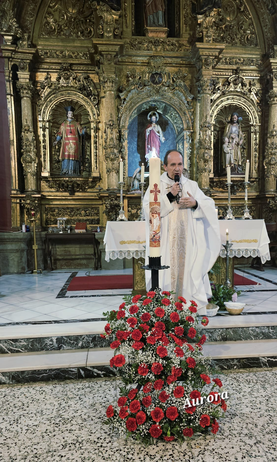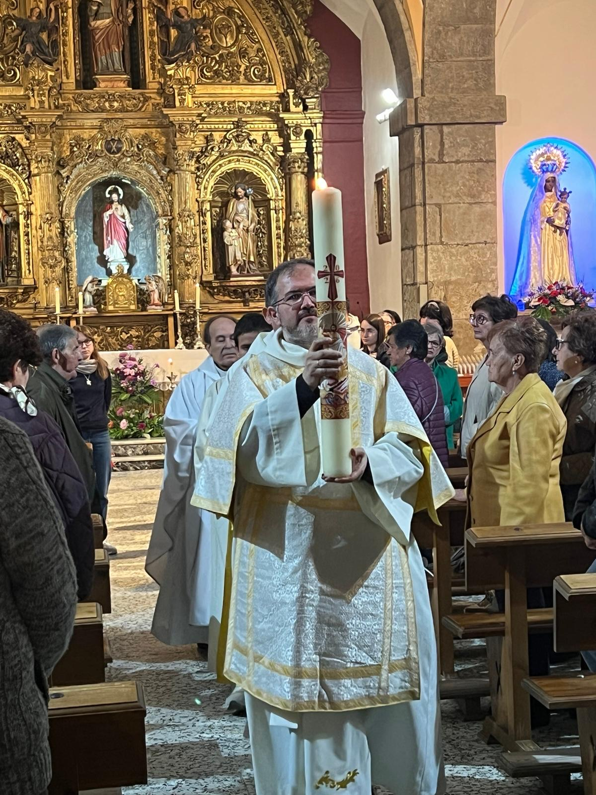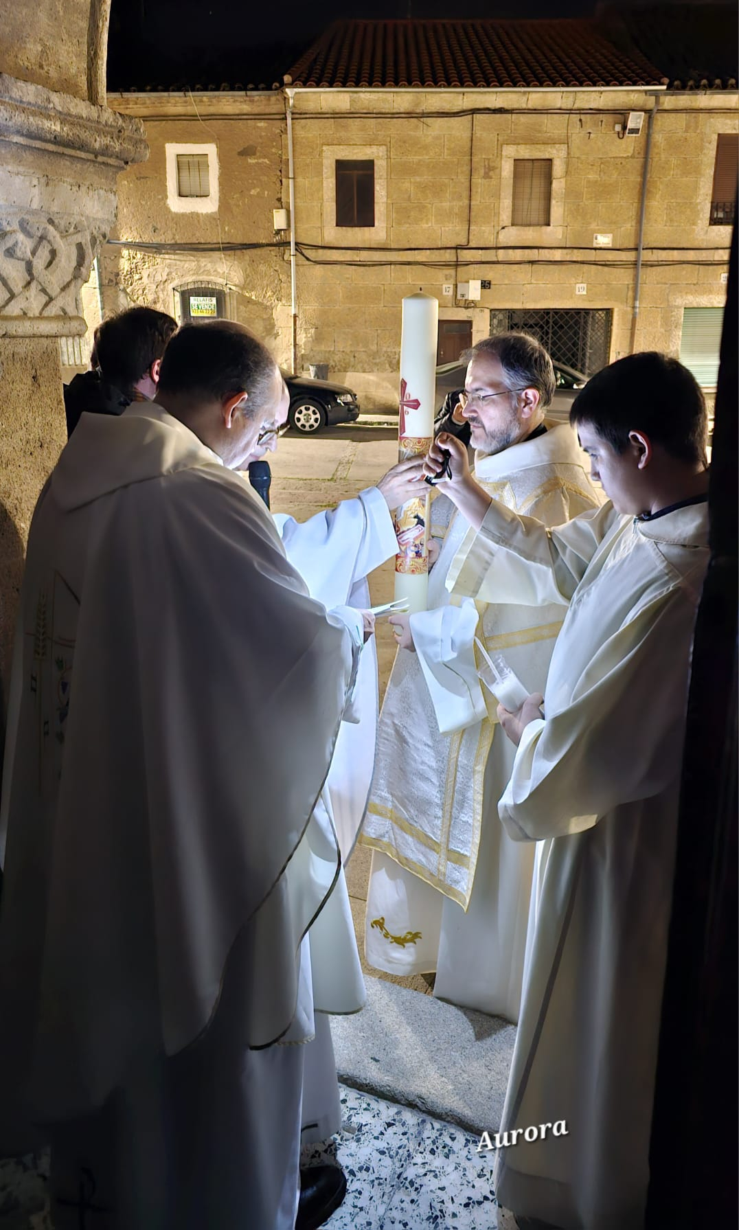 La parroquia de San Andrés ha acogido una multitudinaria Vigilia Pascual durante la noche del Sábado Santo. La ceremonia, presidida por el párroco Tomás Muñoz Porras, destacó por la tradicional bendición del fuego y el rito del agua en el baptisterio, tras lo cual los fieles se unieron a la procesión de la Sábana Santa.