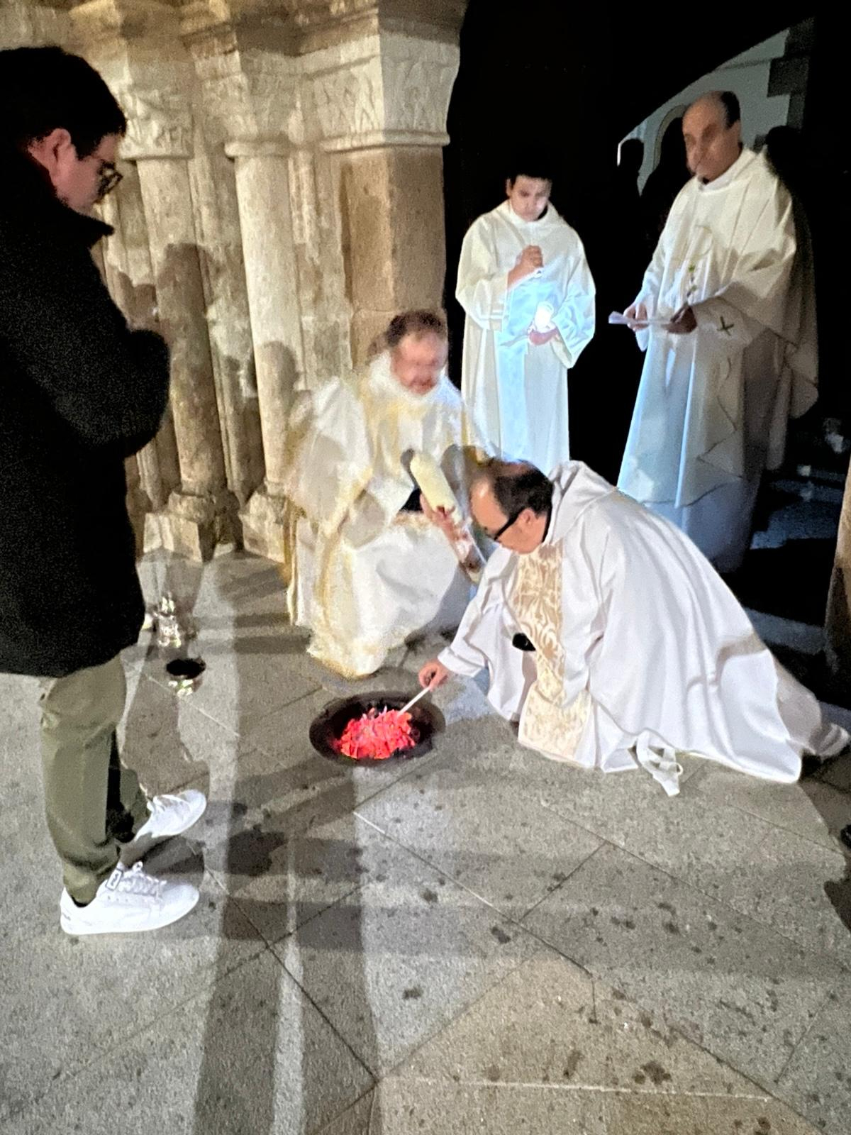 La ceremonia incluyó la tradicional bendición del fuego y finalizó con el traslado de los asistentes a la procesión de la Sábana Santa