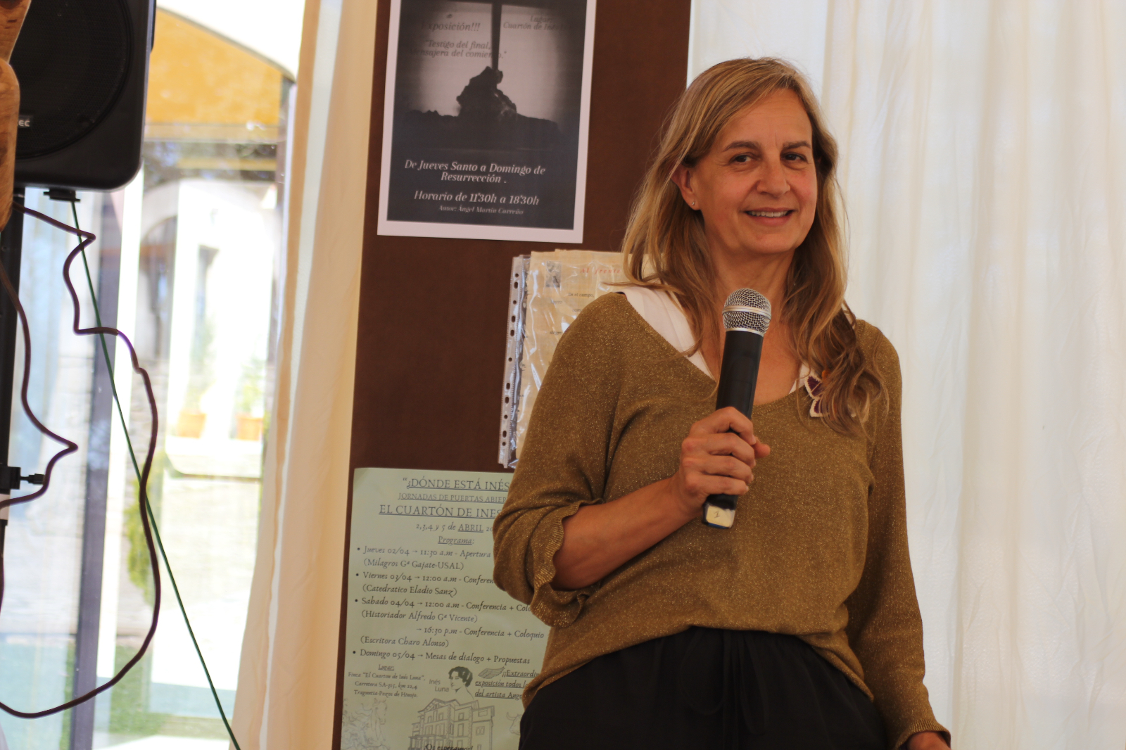 Todos los investigadores que hemos trabajado al personaje a lo largo del tiempo, hemos caído felices víctimas de su influjo misterioso, como lo están ahora Andoni Rekagorri y Almudena Porres, los artífices de la apertura de este espacio privilegiado constituido como un proyecto de alojamiento y actividad cultural. Un espacio que recorre el público con paso calmado, disfrutando del particular Vía Crucis en madera de encina de Ángel Martín, expuesto en las caballerizas de la casa. El artista, carpintero de varias generaciones, toma la madera de encina de la tierra y le da vida de una forma sorprendente. Las figuras del evangelio se plasman sobre la piedra de la zona y su sencillez y profundidad nos conmueven. Es la figuración a través de la abstracción que da la materia, la pura vida de sus oquedades y naturaleza. Expuesta con sumo gusto, los visitantes que aún recuerdan su prodigioso Belén, entran y salen de la sala, conmovidos. Hay que sentarse a escuchar a uno de los investigadores que más sabe del mundo de Inés, del territorio Inés… porque su infancia y adolescencia las vivió en la linde de sus tierras, en el Moronta que tan cercano está.