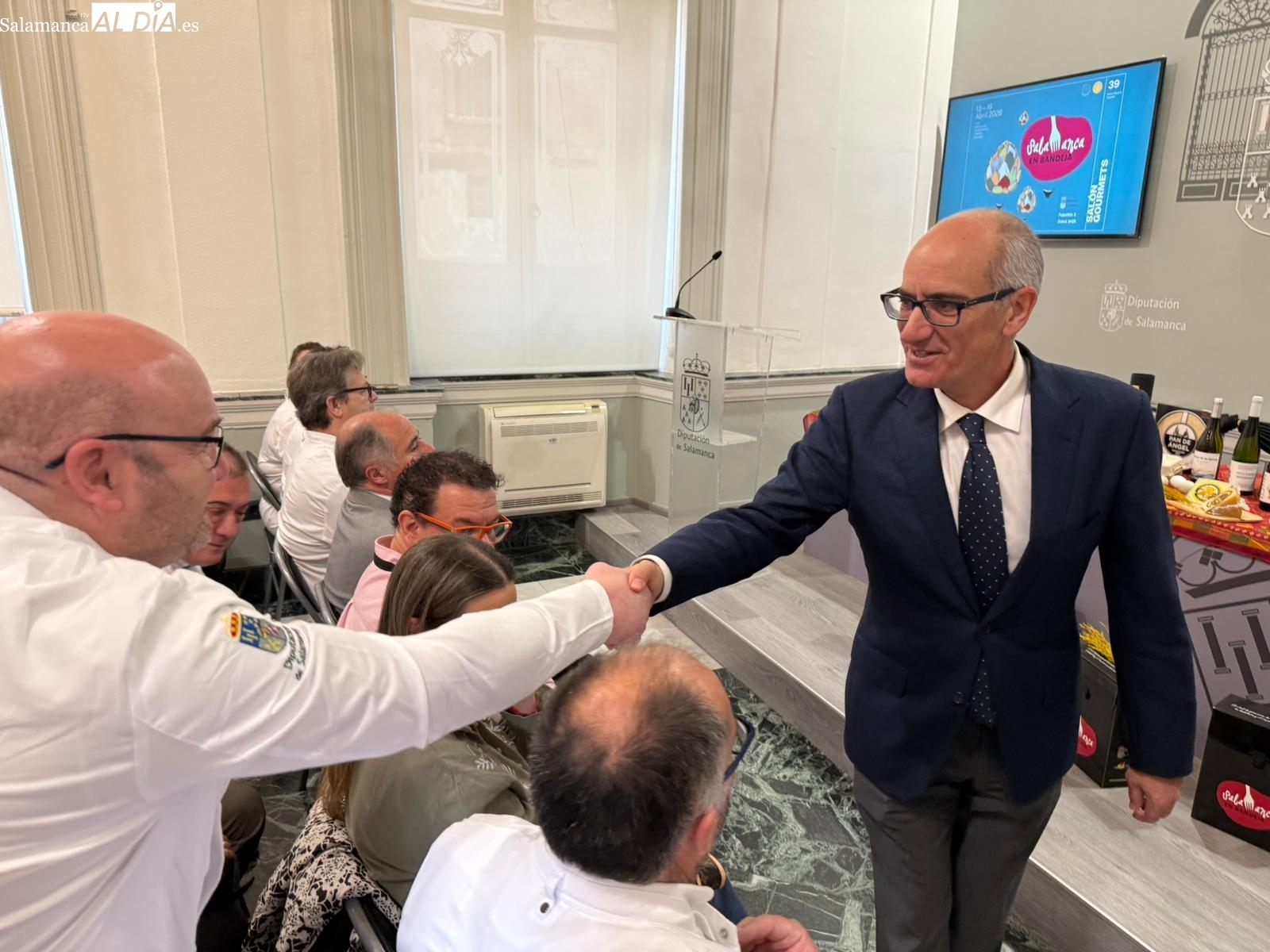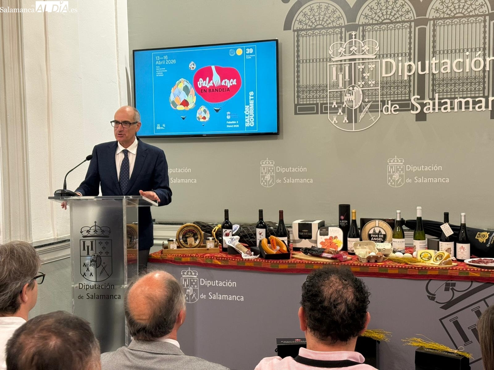 El presidente de la Diputación de Salamanca, Javier Iglesias, ha presentado este martes los detalles de la participación provincial en la 38ª edición del Salón Gourmets. Durante el acto, en el que ha estado acompañado por los diputados Juan Carlos Zaballos y David Mingo, se ha detallado el despliegue previsto para consolidar la presencia de los productos salmantinos en el mercado nacional e internacional.