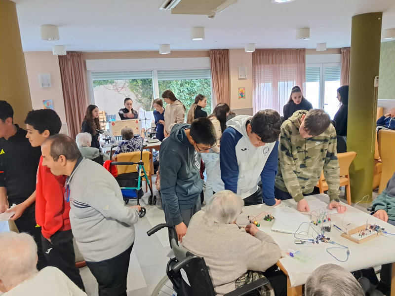 Por su parte, los residentes han mostrado un gran interés por las exposiciones y no han dudado en plantear preguntas, compartir anécdotas y reflexionar junto a los jóvenes. Este intercambio ha propiciado un ambiente participativo que ha permitido un aprendizaje mutuo.