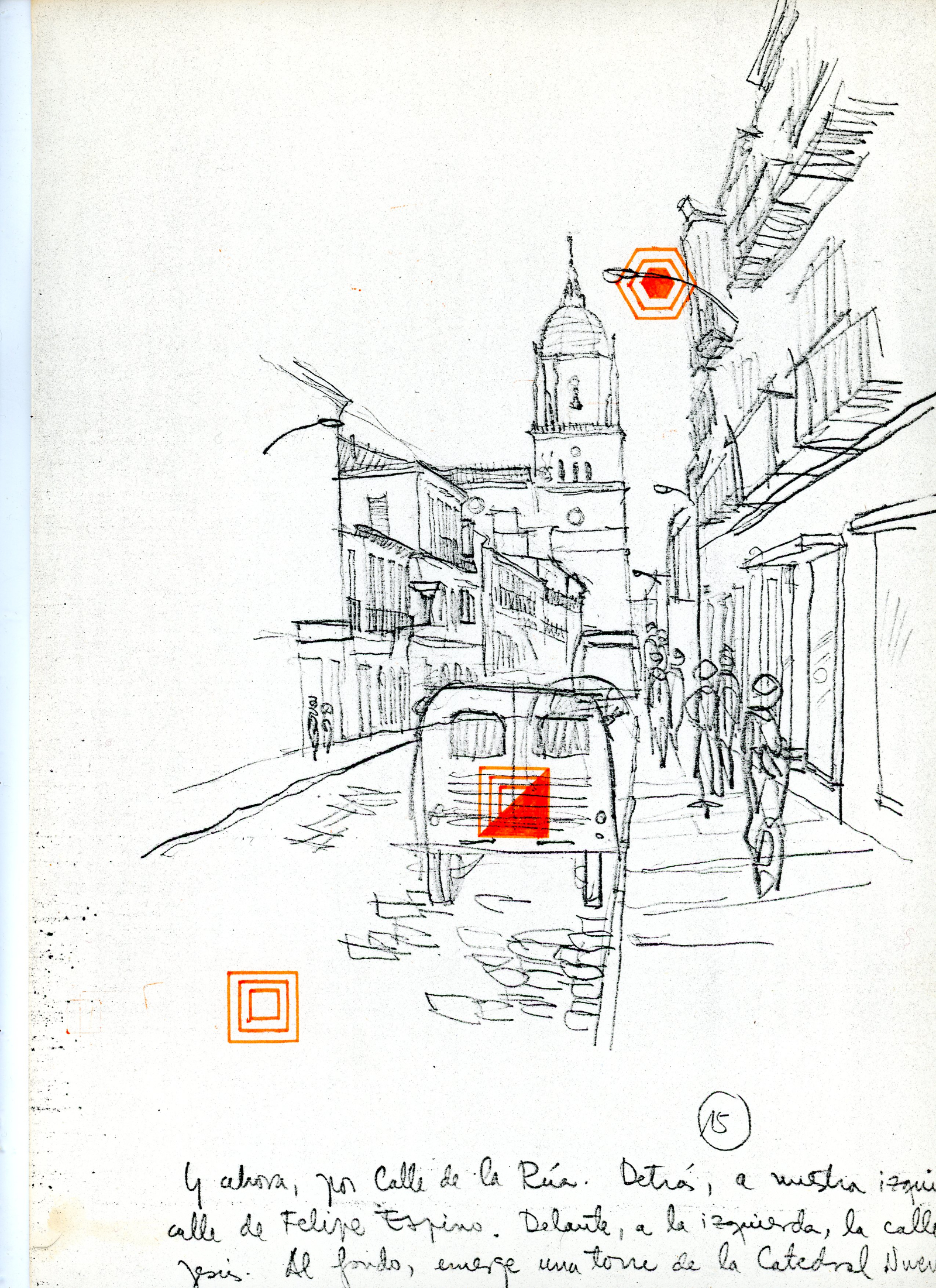 Imagen : Apunte original de Fernando Pulin .cuando realizo el estudio para el Plan Especial del Barrio Antiguo de Salamanca por encargo de la Dirección General de Bellas Artes. Colección particular de Santiago Bayón Vera)