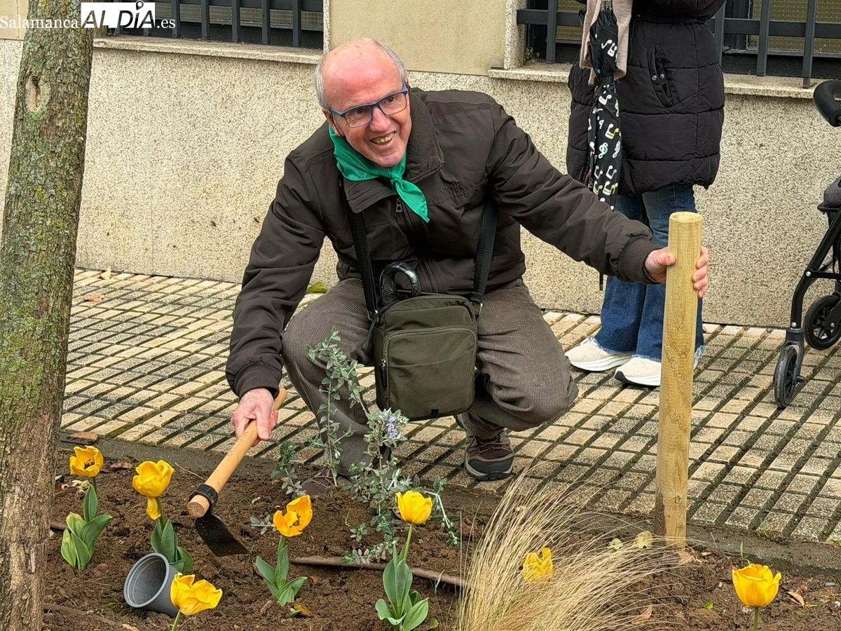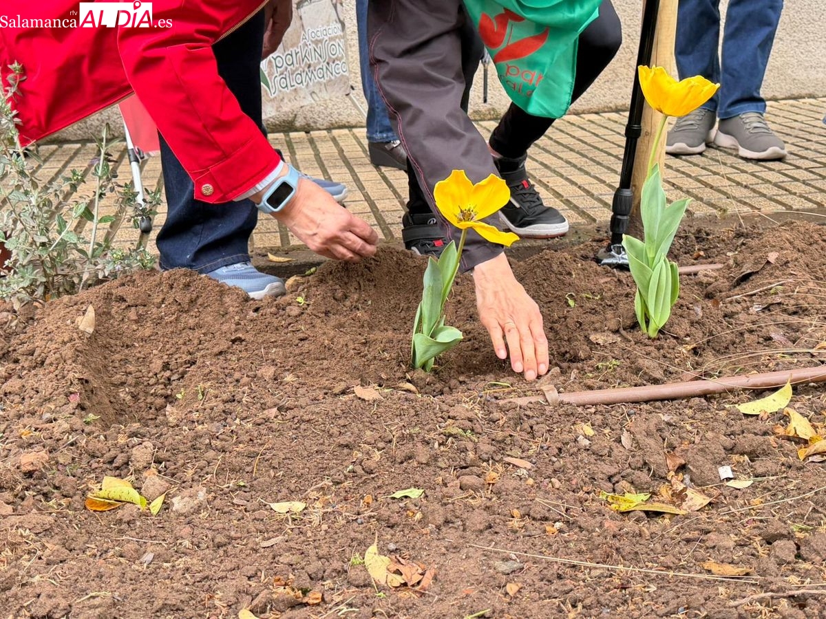 La asociación de Parkinson de Salamanca ha llevado a cabo una siembra de tulipanes amarillos, símbolo representativo de esta enfermedad, para visibilizar una patología que cuenta con más de 3.200 afectados en la provincia. A través de esta ya tradicional plantación, enmarcada en el Día Mundial del Parkinson que se celebra cada 11 de abril, el colectivo ha reclamado un mayor conocimiento social sobre los síntomas y ha exigido a las instituciones la cesión de un nuevo espacio para poder atender la creciente demanda de pacientes.