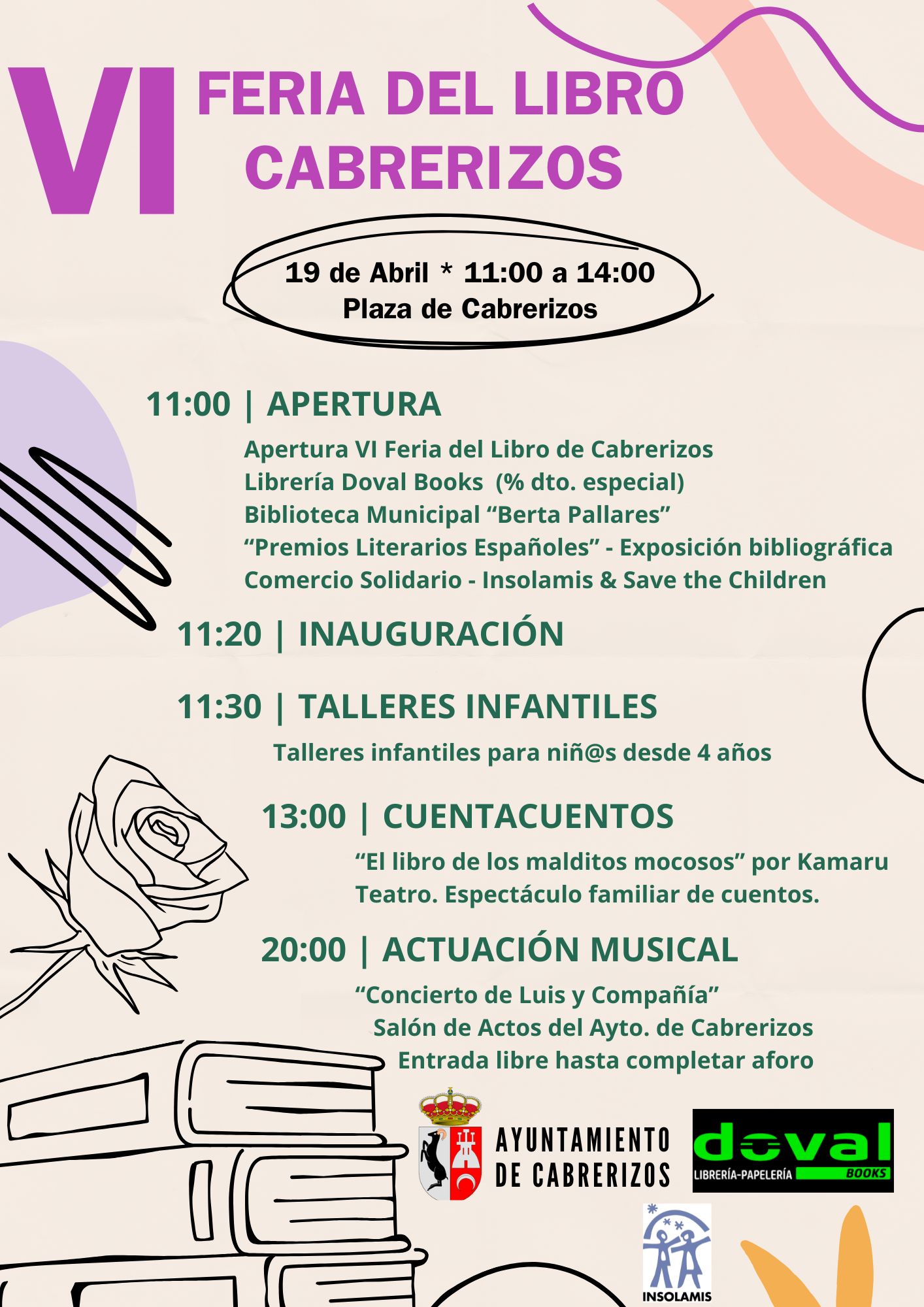 El acto principal será el domingo 19 de abril en la Plaza Mayor, evento central de una Semana del Libro que ofrecerá talleres, cuentacuentos y música
