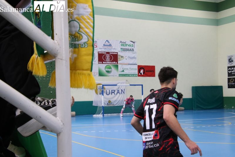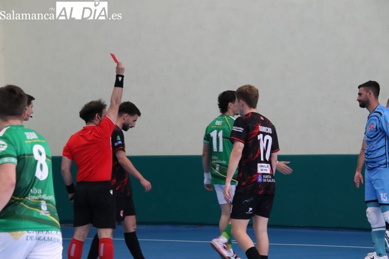Sin embargo, el equipo local no logró aprovechar ese momento para romper el partido. El encuentro se fue equilibrando, con ambos conjuntos cargándose de faltas, y en ese contexto el Coruxo volvió a golpear. Alexis Rodríguez transformó un doble penalti en el 1-2. Antes del descanso, el Coruxo aún tuvo una segunda oportunidad para ampliar la renta mediante un segundo doble penalti, pero Carlos Tejedor detuvo el lanzamiento, manteniendo a su equipo dentro del partido.