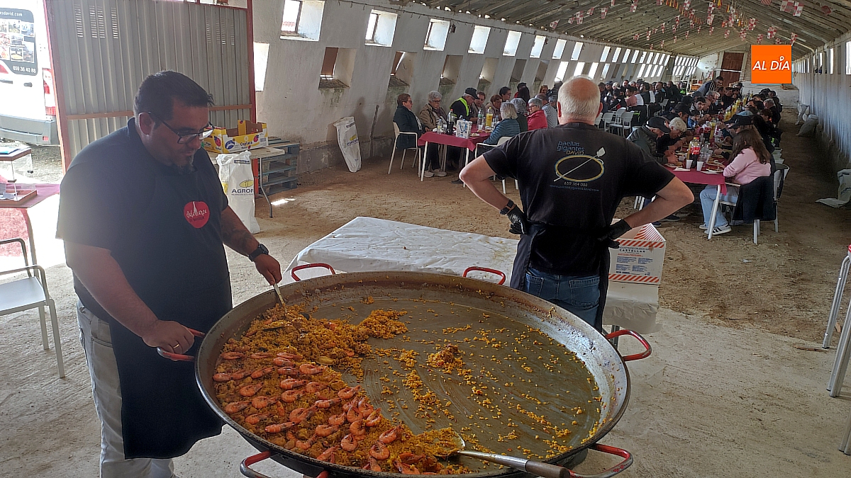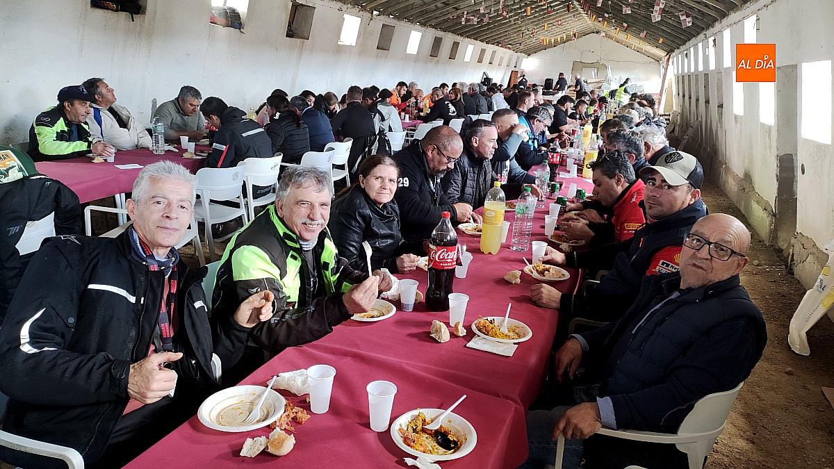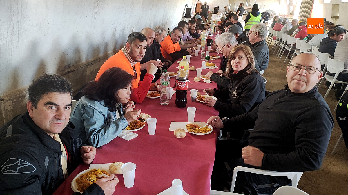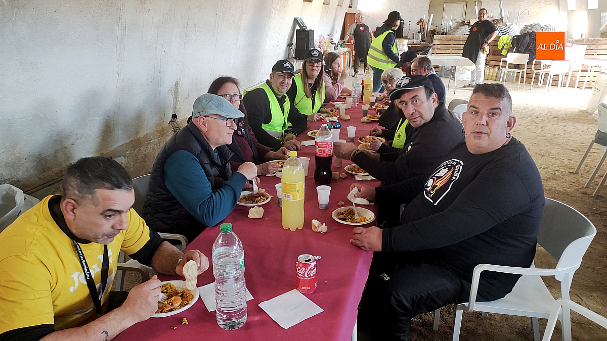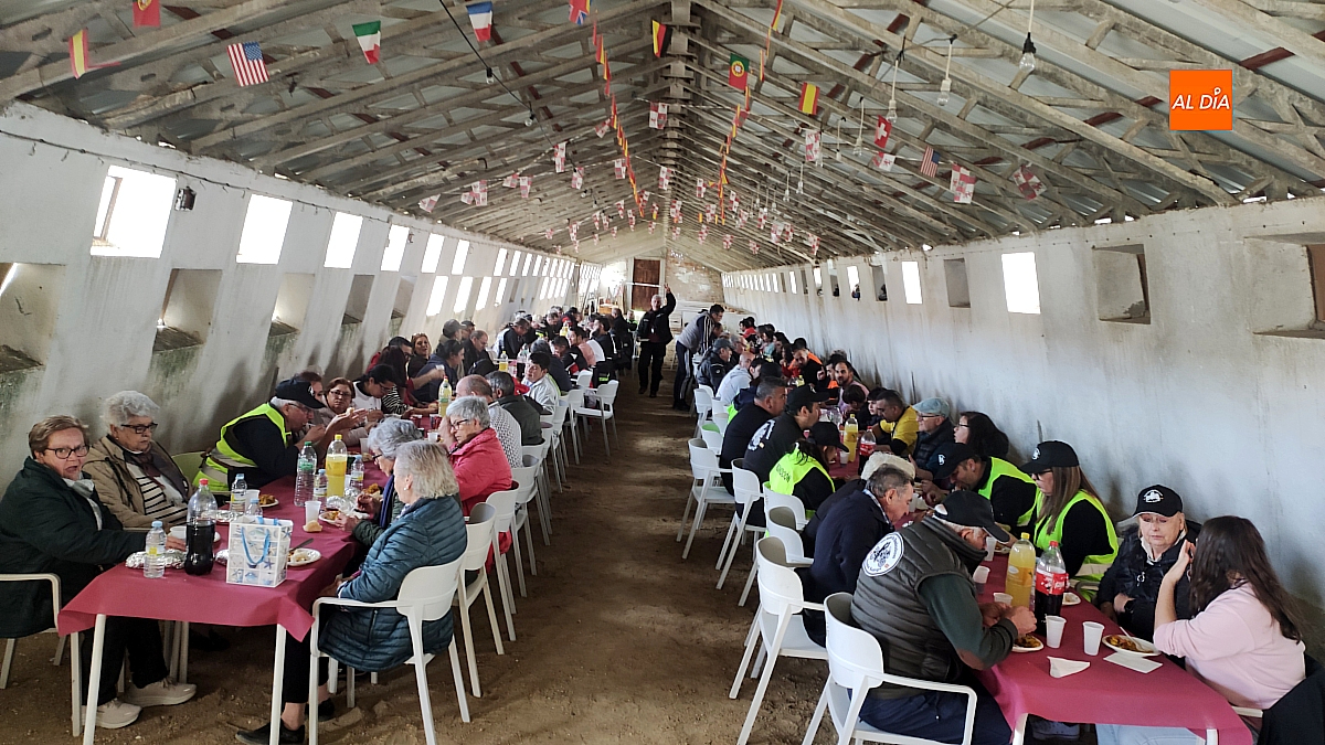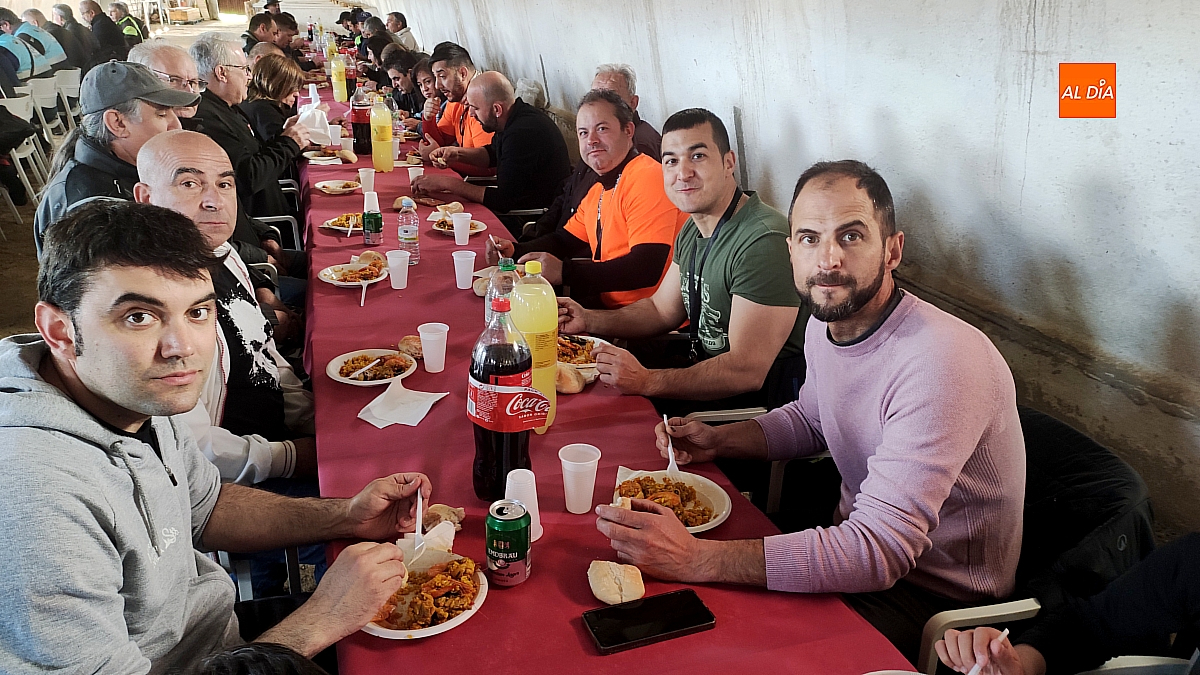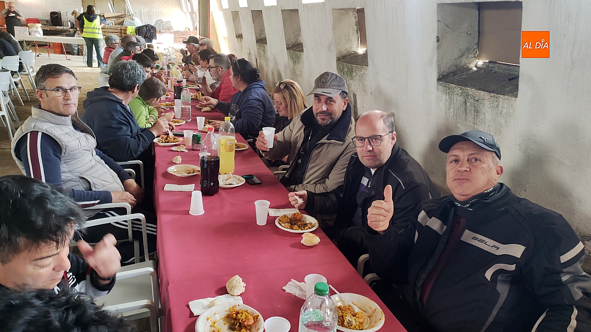 La ruta prosiguió después entre dehesas y terrenos modelados por la actividad humana, donde el verde de las encinas —salpicadas ahora de brotes y flores— componía una estampa serena, casi intemporal. De regreso a Bañobárez, el encuentro encontró su culminación en un almuerzo colectivo: una paella preparada por la empresa mirobrigense Paellas Gigantes David, servida en naves cedidas por el ayuntamiento.