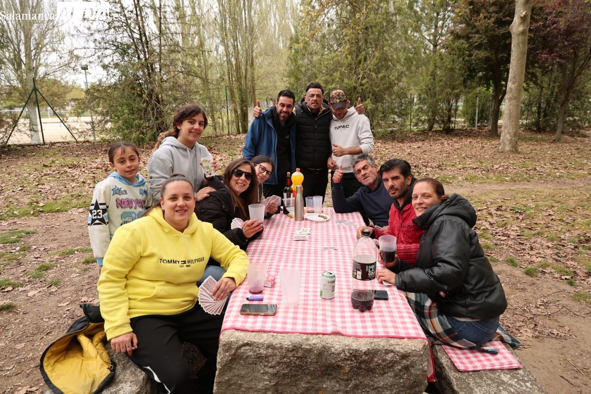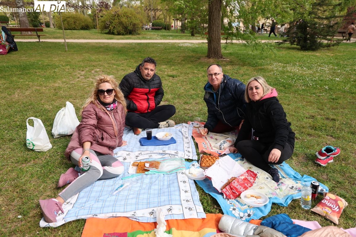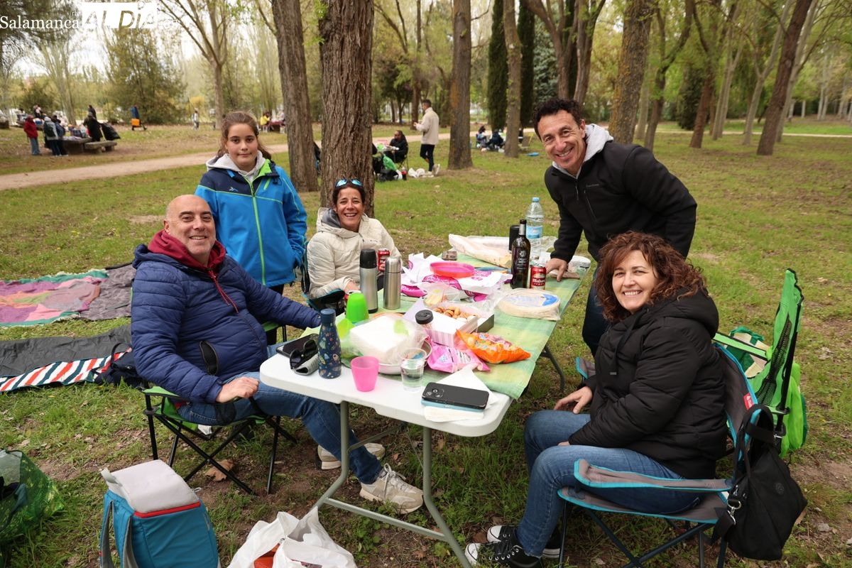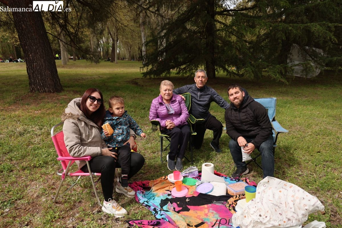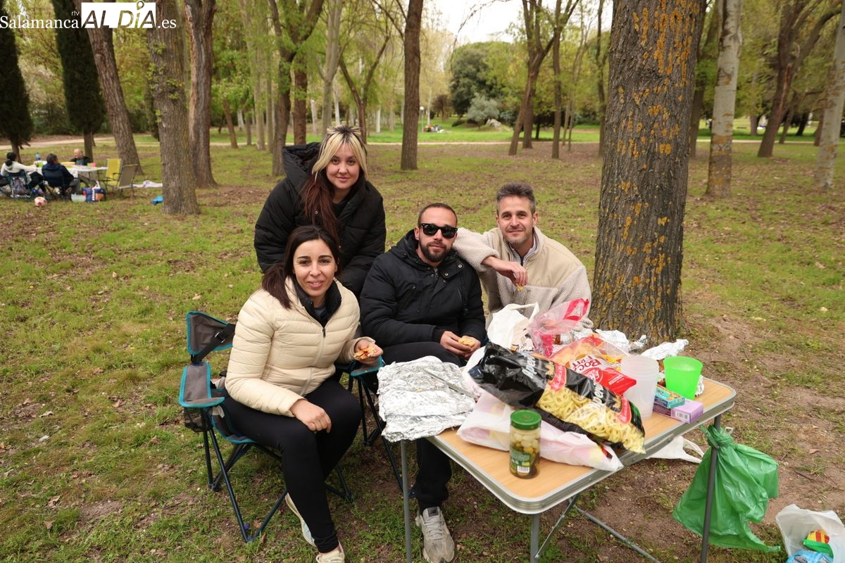 Miles de salmantinos disfrutan en la tarde de este lunes de una merienda de hornazo y diversión en familia y amigos. La Aldehuela es uno de los lugares más tradicionales para celebrar este Lunes de Aguas y, un año más, volverá a llenarse, aunque a primera hora de la tarde el ambiente era algo menor que en años anteriores.