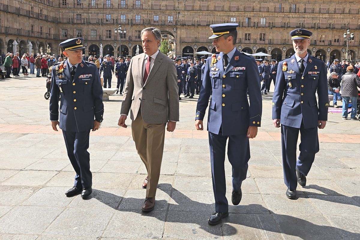 Durante su intervención, García Carbayo se ha dirigido a los homenajeados destacando que han completado en la capital del Tormes "una etapa muy importante" de su formación y de su vida. "Una etapa exigente, intensa y, estoy seguro, inolvidable", ha afirmado el alcalde, subrayando que la Base Aérea de Matacán es "uno de los grandes orgullos de esta tierra y una institución profundamente unida a la ciudad y la provincia de Salamanca".