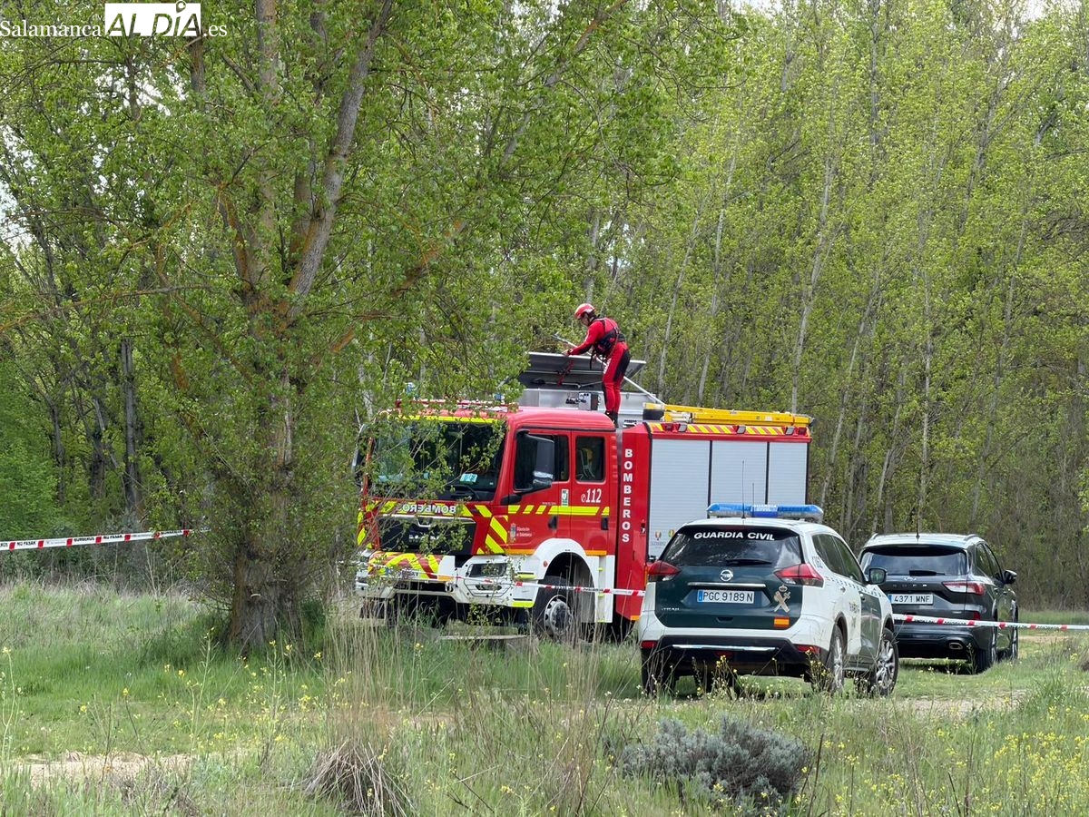 La Guardia Civil ha alertado del hallazgo del cuerpo en una pesquera entre Villamayor y Santibáñez del Río. Se ha desplegado un amplio dispositivo de emergencias en la zona.