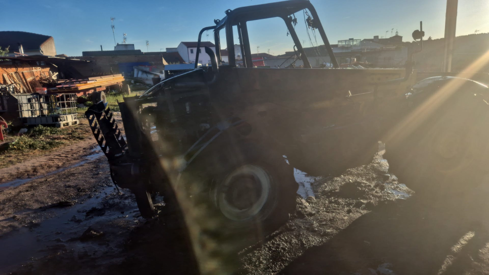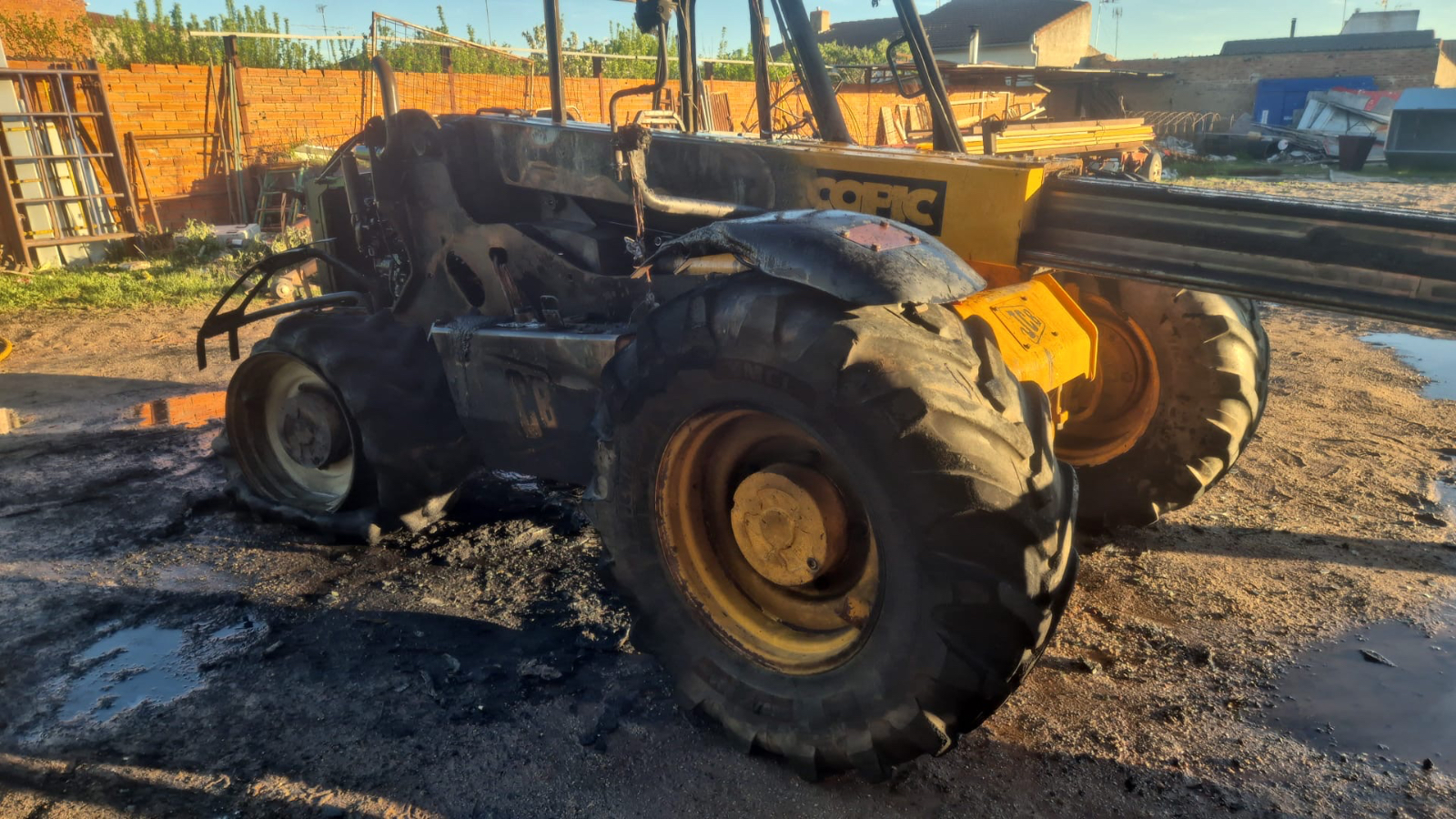 Bomberos de Peñaranda sofocan un alarmante incendio en una maquina pesada en Macotera