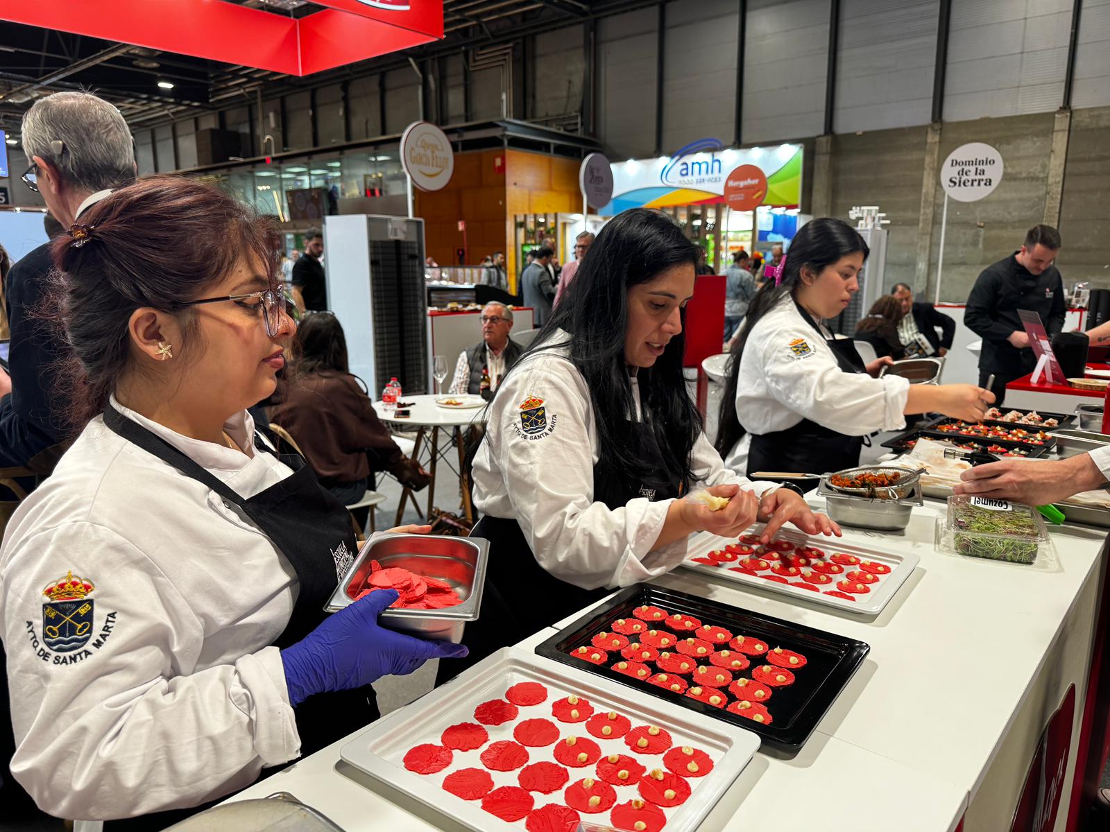 La Escuela Municipal de Hostelería de Santa Marta está presente en el Salón Gourmets de Madrid, donde ha dado a conocer sus creaciones culinarias ante los asistentes de esta destacada feria gastronómica.